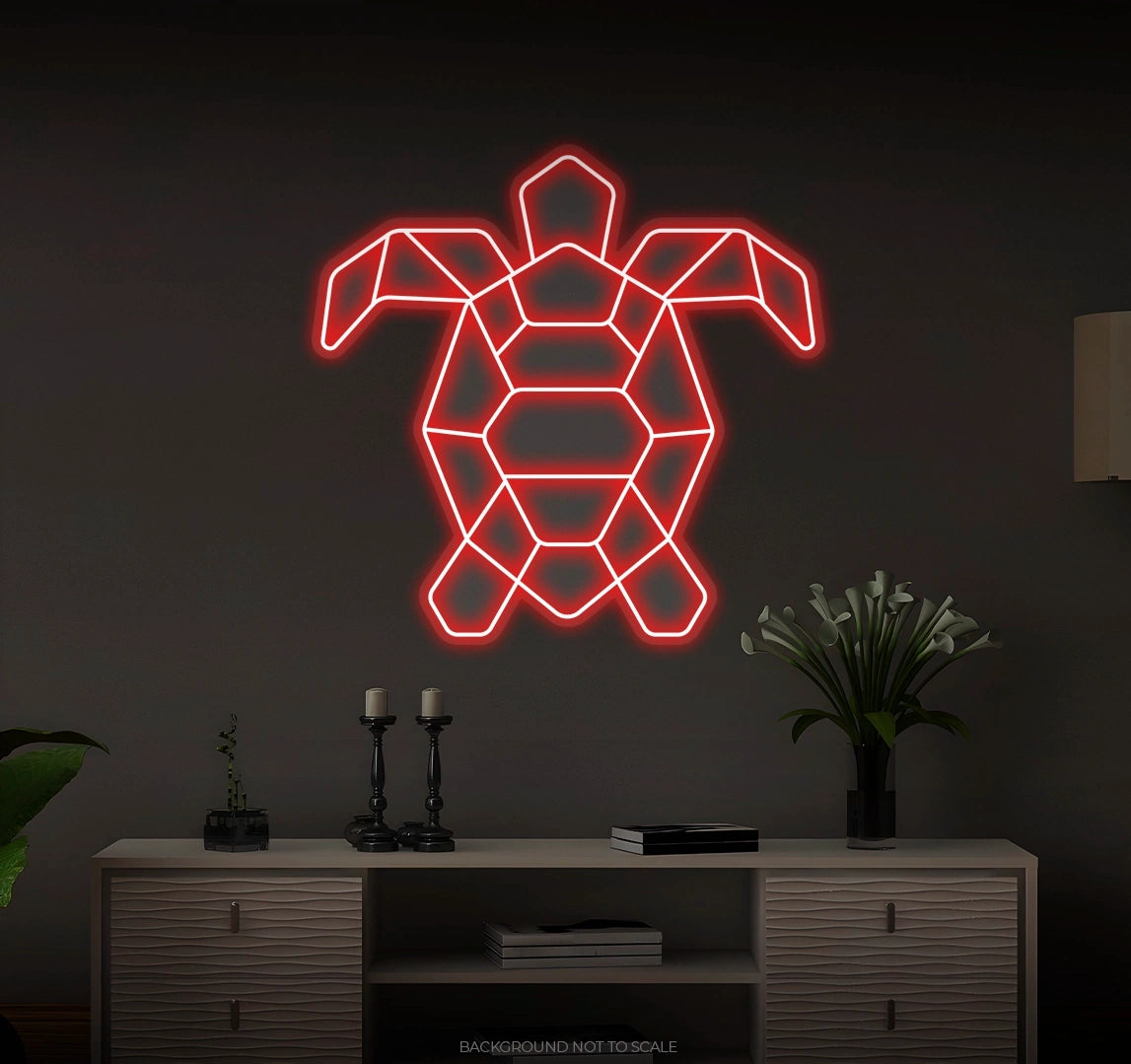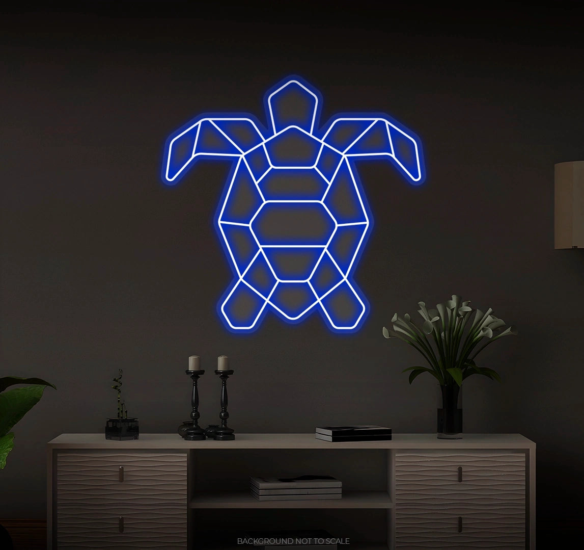 Polygonal sea turtle LED neon