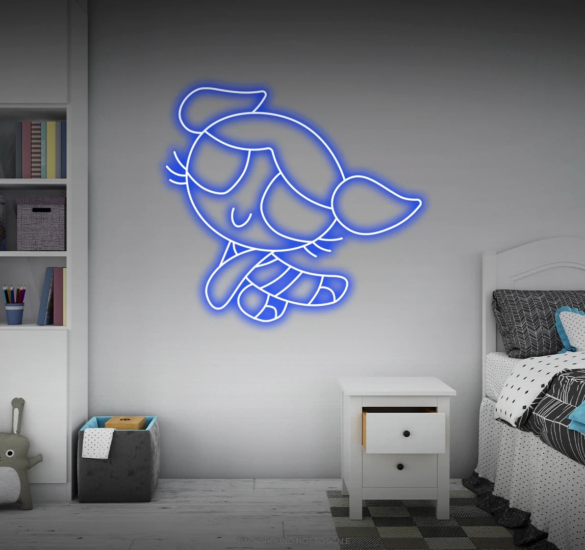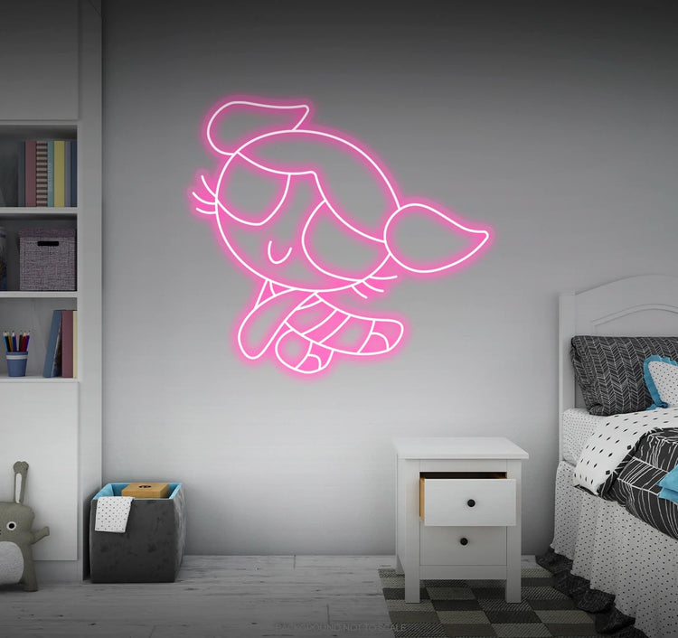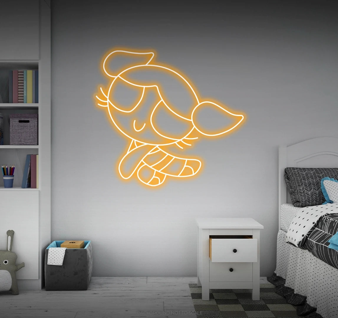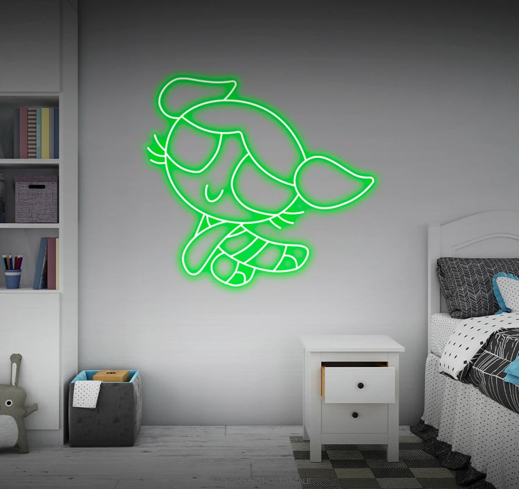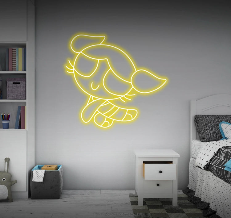 Playful Glow: Immerse your space in a playful and vibrant glow as our LED neon sign creatively depicts the endearing character Bubbles from the Powerpuff Girls. This high-energy expression transforms your surroundings into a haven of fun and nostalgia, creating an atmosphere that resonates with the joyous spirit of Bubbles.