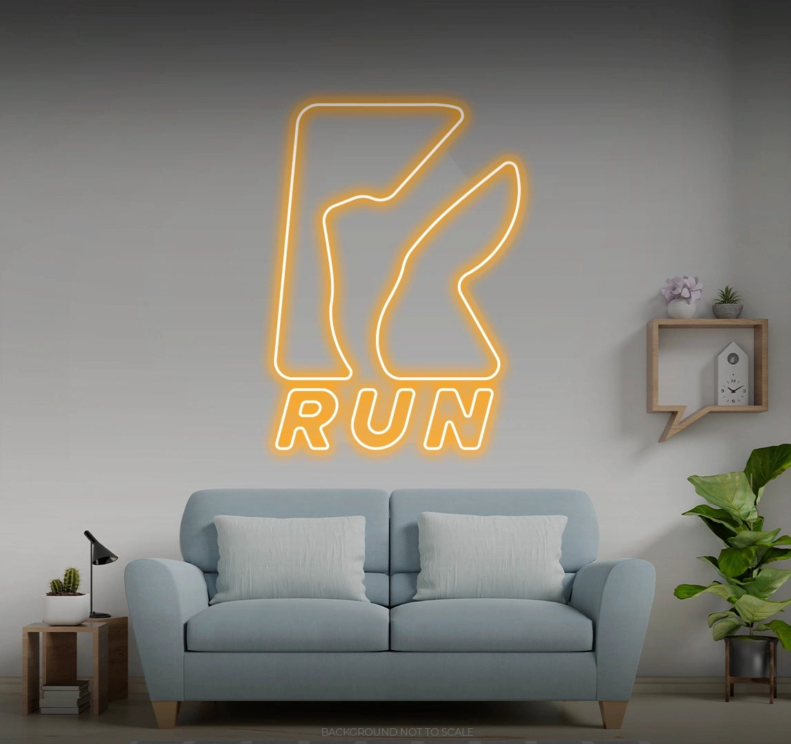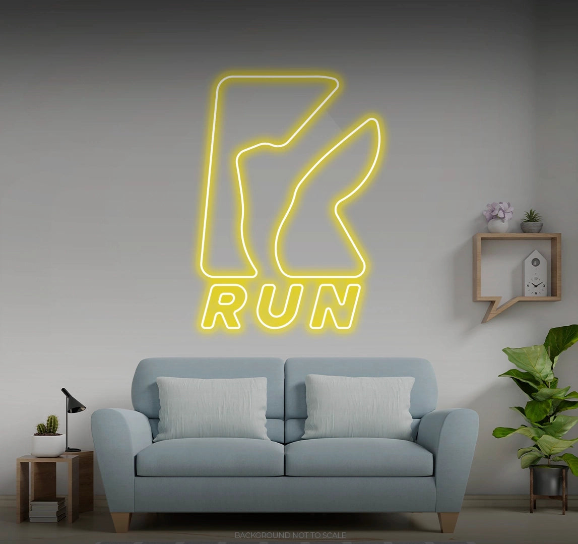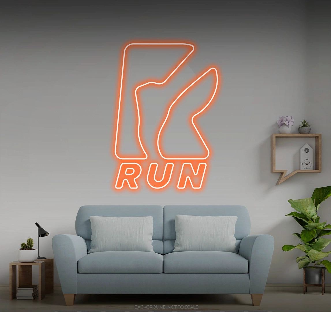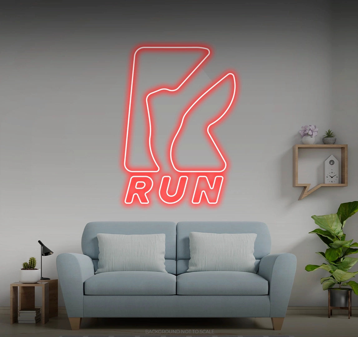 Elevate Your Space with Determined Vibes: Embrace the dynamic and motivational ambiance with our LED neon sign, casting a radiant glow that symbolizes the spirit of running within the phrase "Run Foot Silhouette."