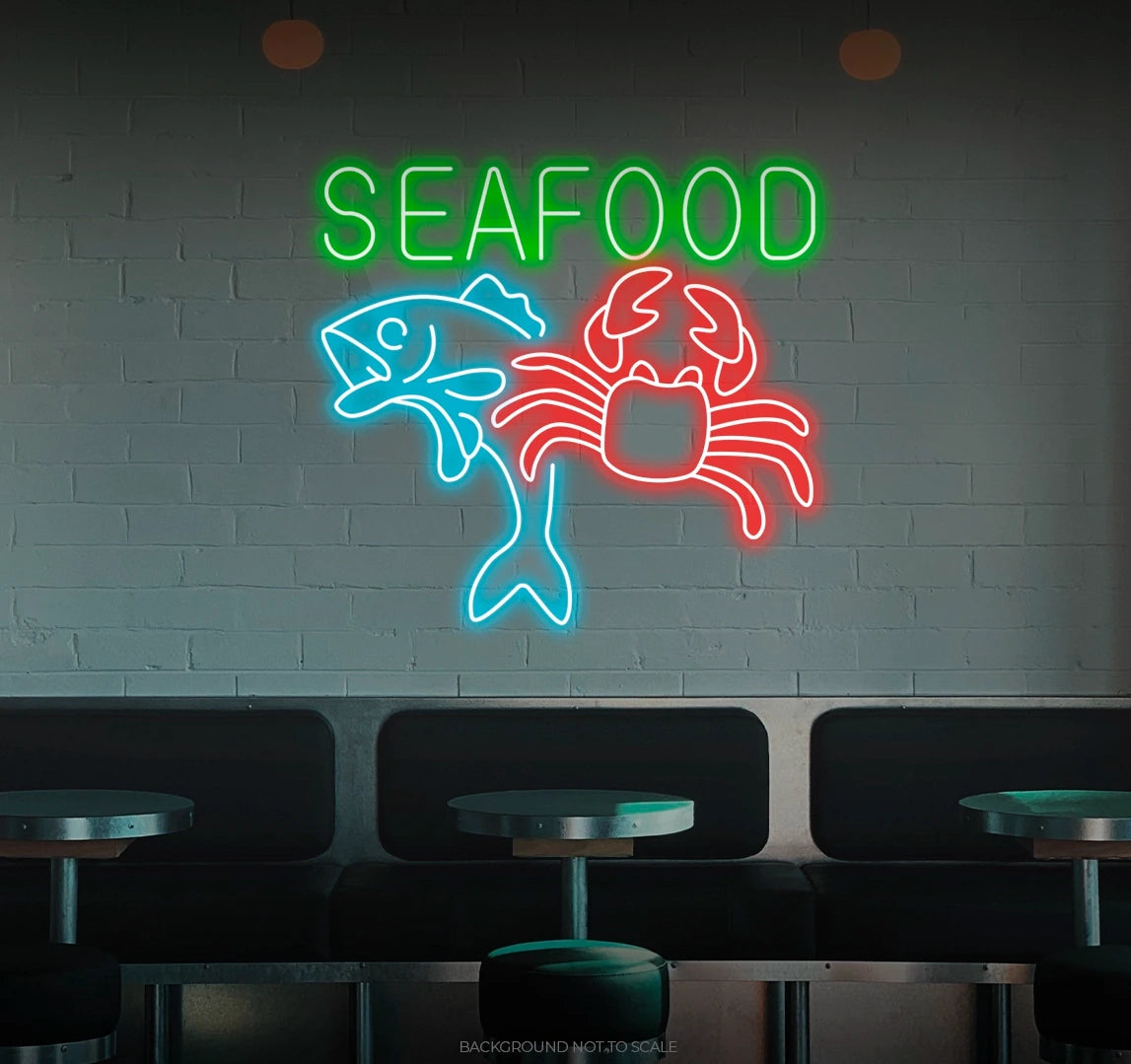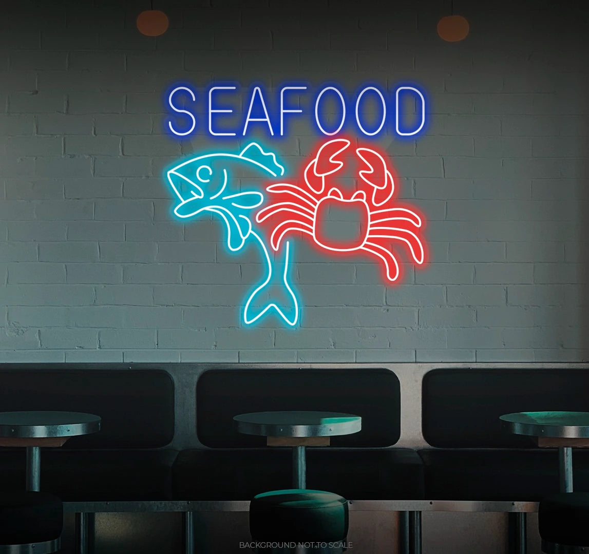 Order Your "Seafood" LED Neon Today! Don't miss this opportunity to bring a touch of the ocean's freshness into your culinary space. Order your "Seafood" LED Neon today and let the inviting charm of this declaration guide you through a world of delicious moments! Illuminate your space with the fresh radiance of our "Seafood" LED Neon – an essential addition for seafood enthusiasts and those who appreciate the delectable allure of maritime expressions. Dive in!