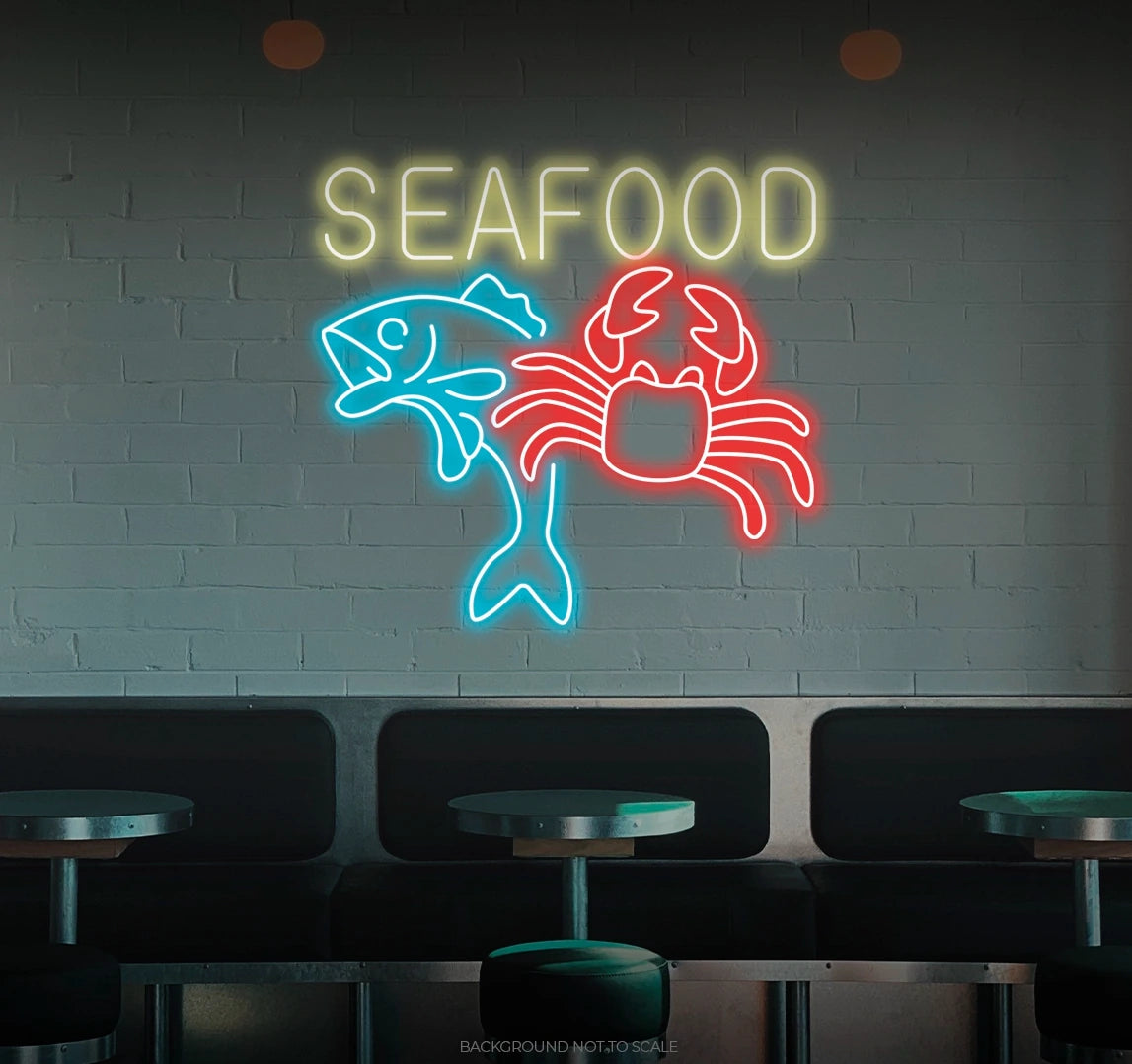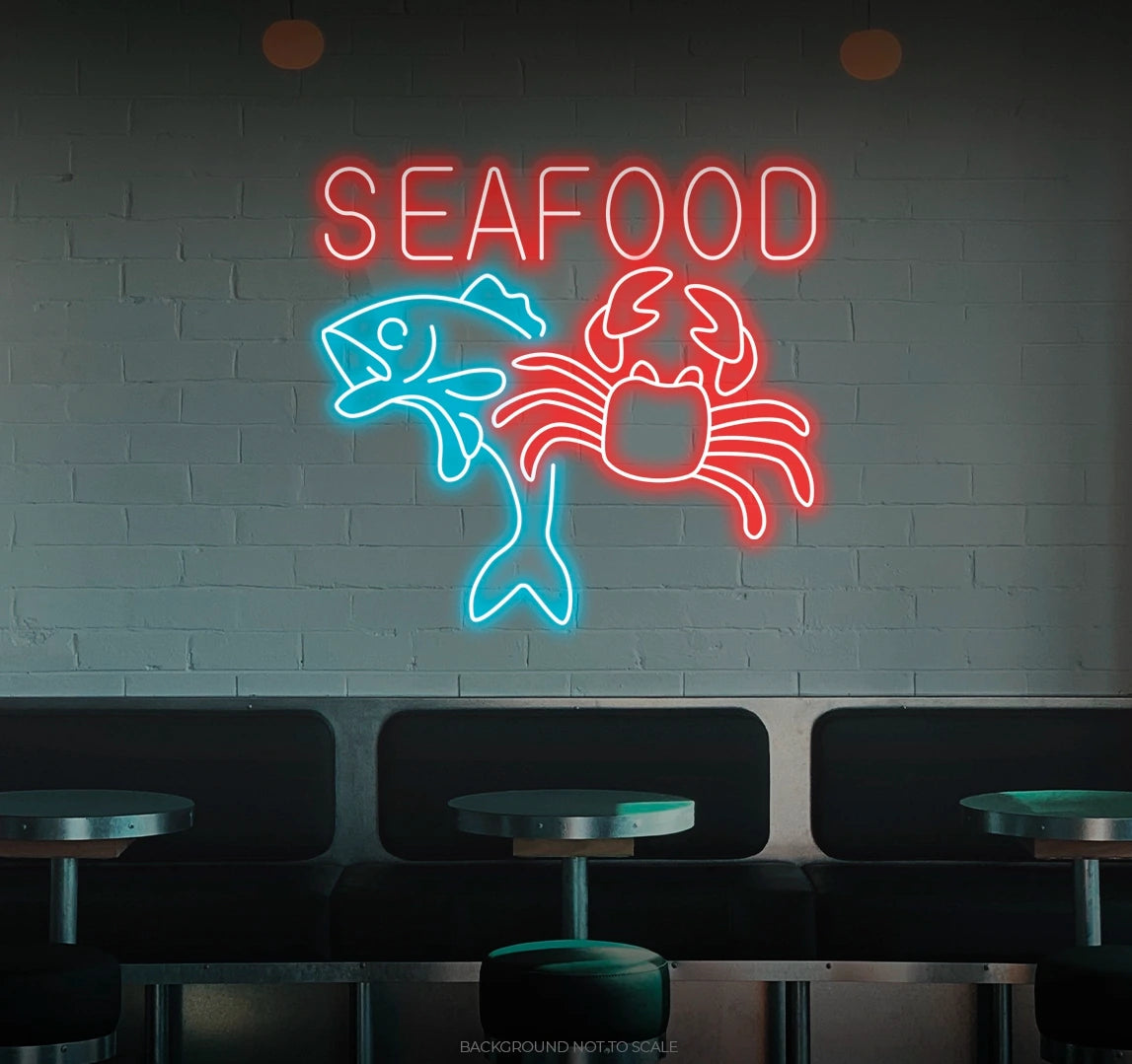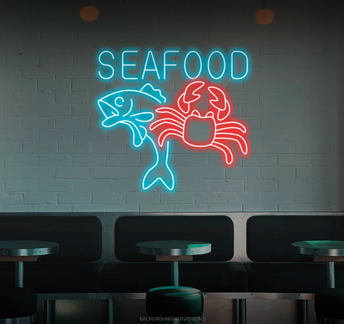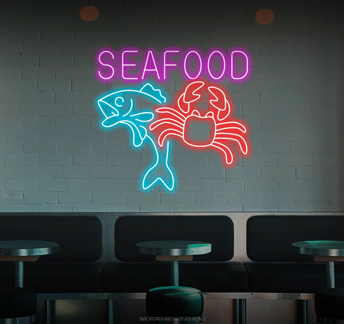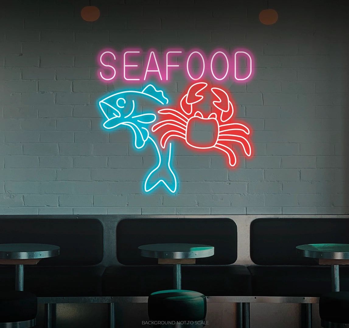 Elevate Your Culinary Space with Oceanic Vibes: Embrace the delightful and inviting ambiance with our LED neon sign, casting a radiant glow that symbolizes the passion for seafood with the phrase "Seafood."