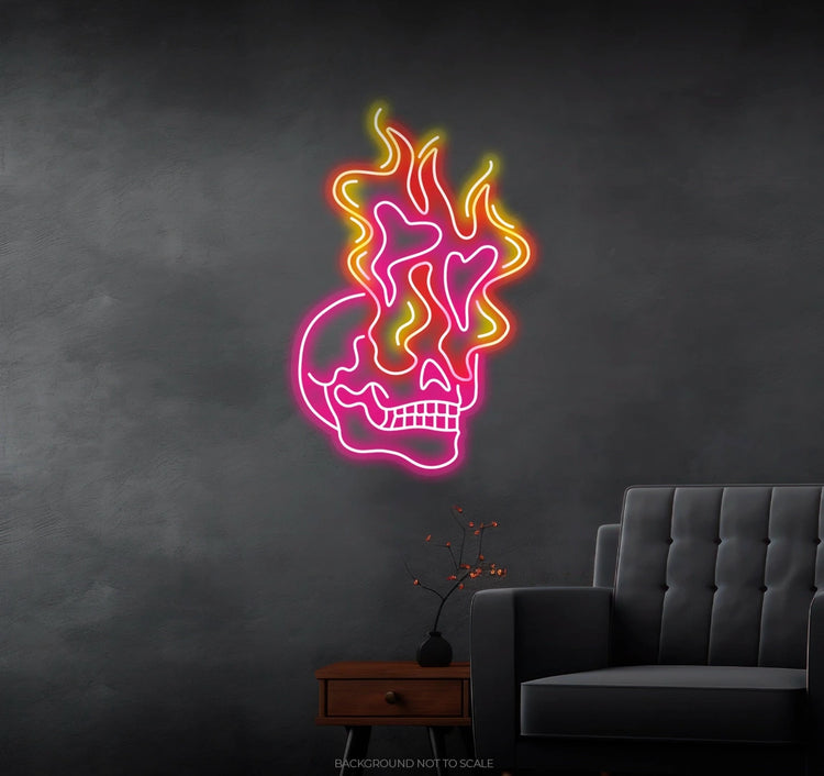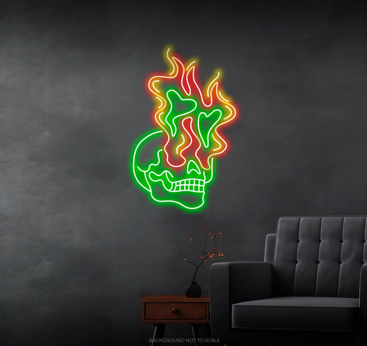 Are you a fan of the macabre and mysterious, looking to add a touch of bone-chilling allure to your living space, party corner, or any area where the spirit of the supernatural roams free? Look no further than our hauntingly captivating Skeleton Fire LED Neon Sign! This mesmerizing neon sign is meticulously designed to invoke the chilling essence of the otherworldly, making it the perfect addition to any space that embraces the eerie side of life.