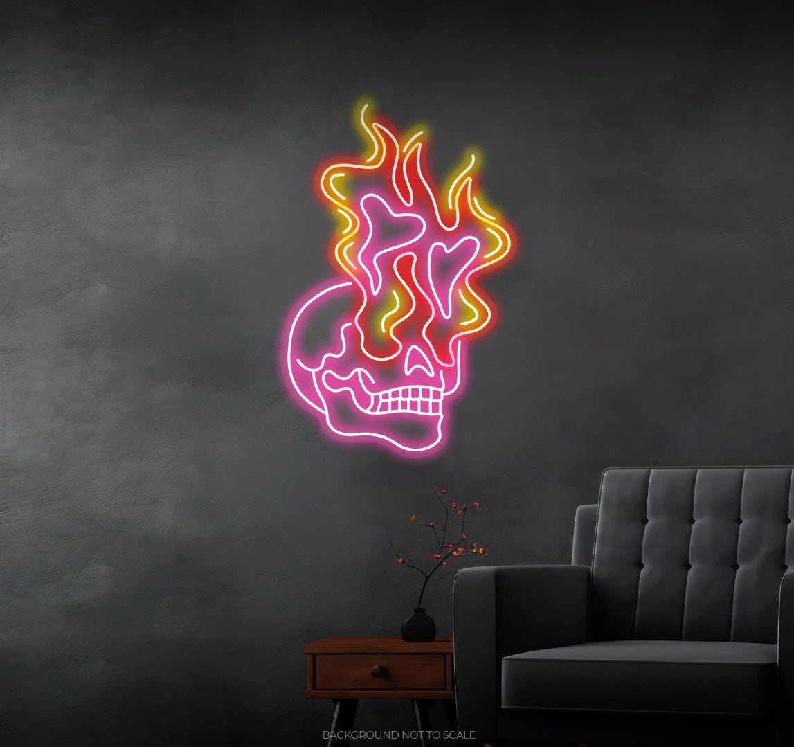 Exceptional Statement Piece for Horror Enthusiasts: Elevate your space with a unique and chilling statement piece. Whether it's a haunted house, a horror-themed room, or any area where the eerie reigns supreme, our Skeleton Fire LED Neon Sign is sure to add a touch of chilling allure.