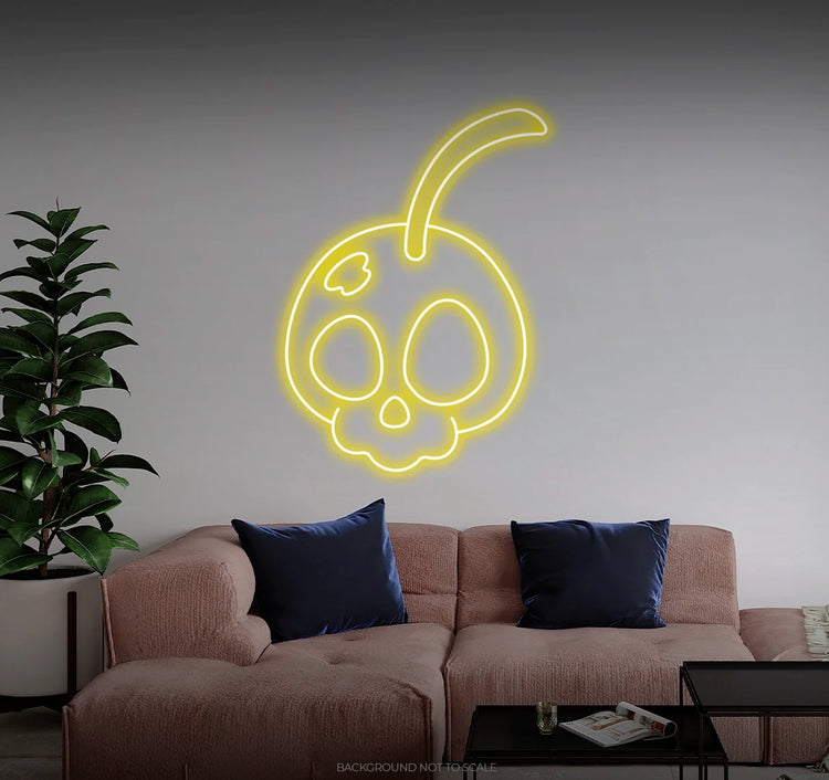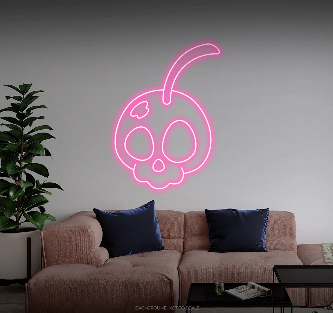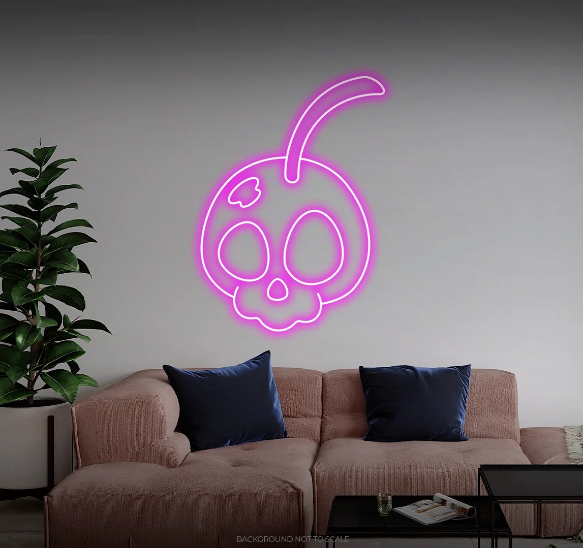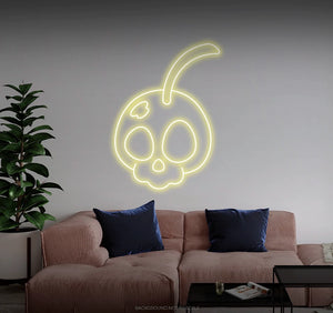 Elevate Your Space with Playful Vibes: Embrace the fruity and bold ambiance with our LED neon sign, casting a radiant glow that symbolizes the playful spirit of a skull adorned with cherries.