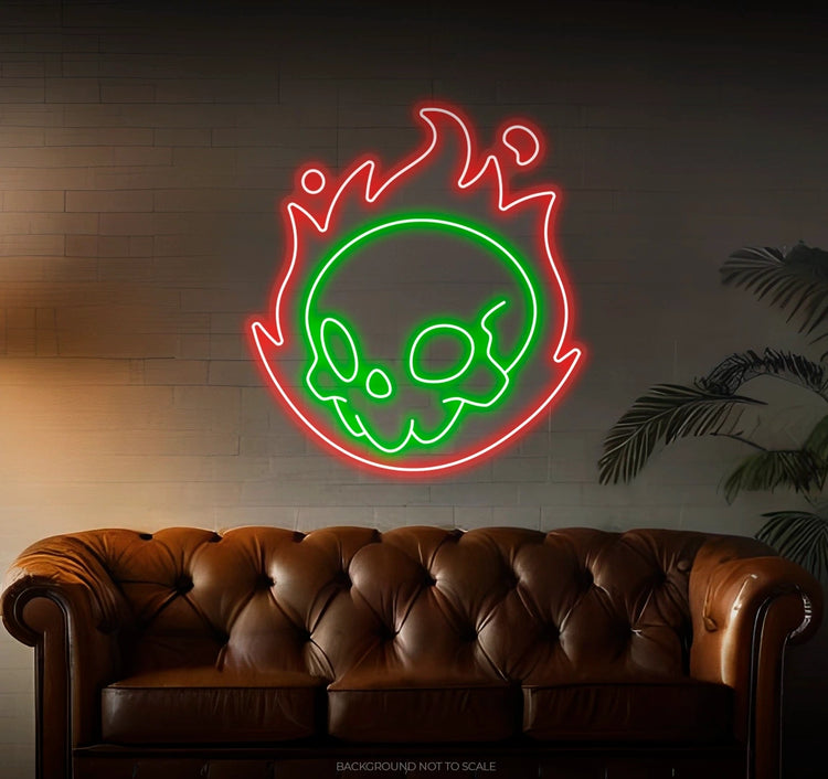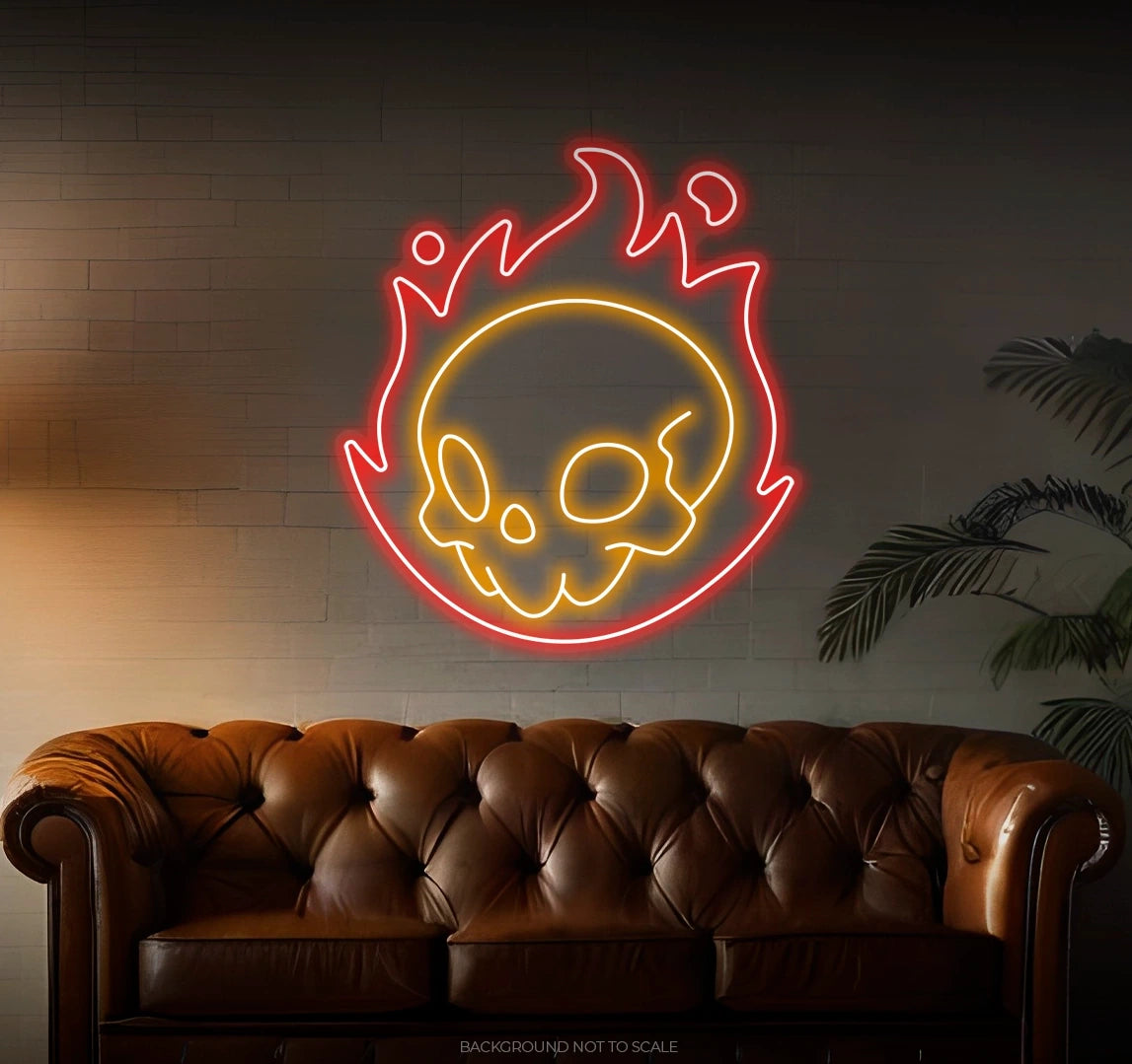 Vivid Neon Glow: The neon lights bring the skull and flames to life with bold, vibrant illumination. Choose fiery oranges and reds for a realistic blaze or cool blues for a unique twist.