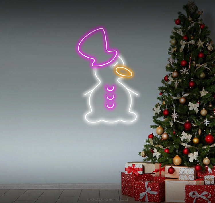 1. Festive Radiance: Illuminate your space with a heartwarming and festive glow as our "Snowman with a Hat" LED Neon captures the essence of holiday cheer. This high-energy expression transforms your surroundings into a haven of celebration and joy, perfect for spaces where the magic of the season and the whimsy of a snowman are celebrated.