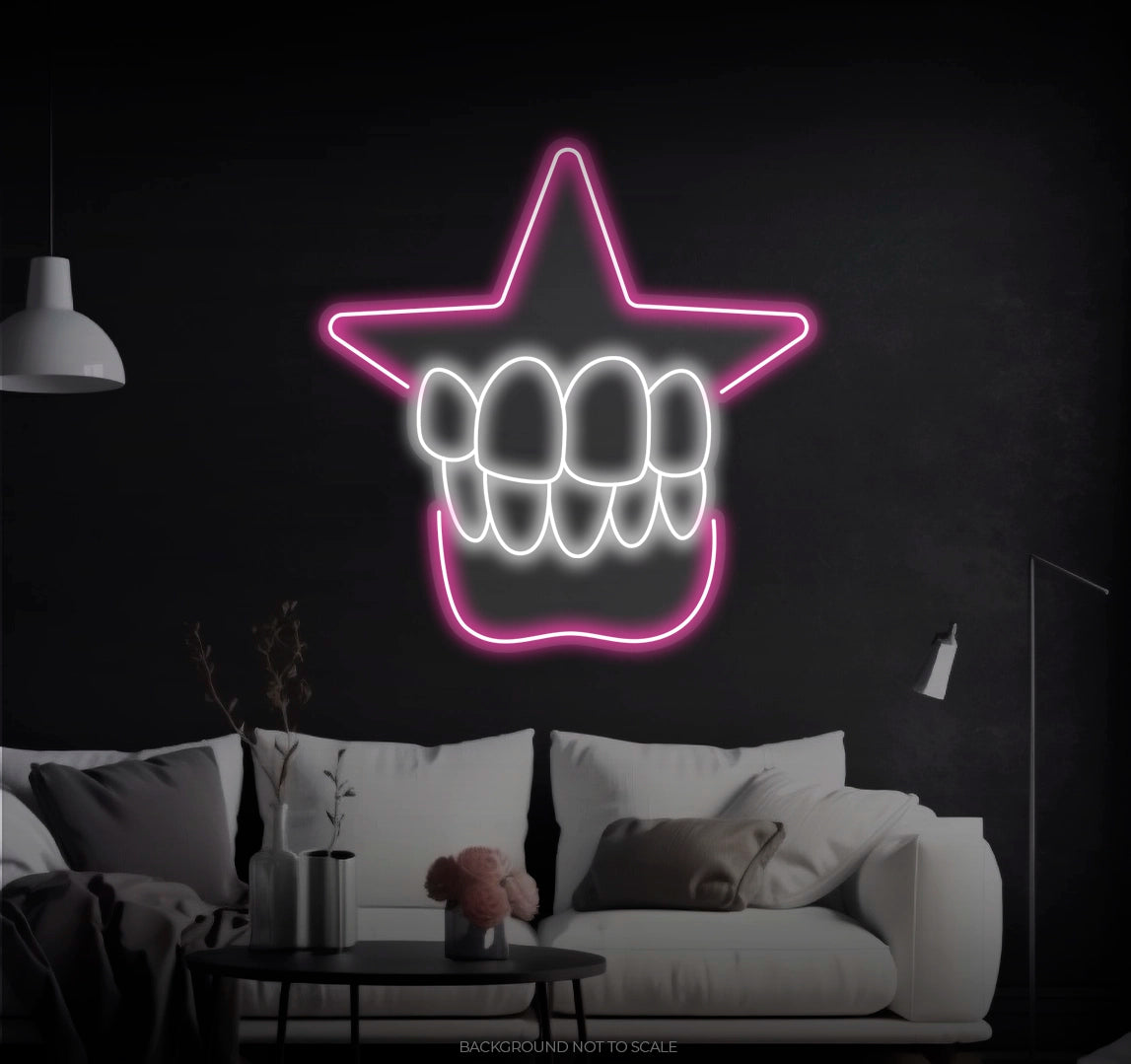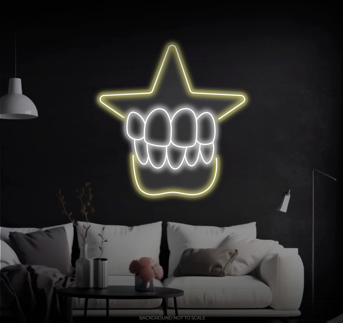 Let your personality sparkle with the "Star with Teeth" LED Neon. Order today and bring a dazzling grin to your décor! 🌟😁✨