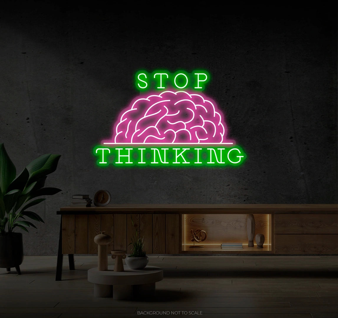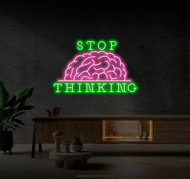 Order Your "Stop Thinkin' Brain" LED Neon Today! Don’t miss the chance to bring a touch of humor and motivation into your environment. Order your "Stop Thinkin' Brain" LED Neon today and let the spirit of creativity guide you through a world of joyful moments! Illuminate your space with the radiant glow of our "Stop Thinkin' Brain" LED Neon – a must-have for those who appreciate playful and inspiring decor. 💡🧠✨