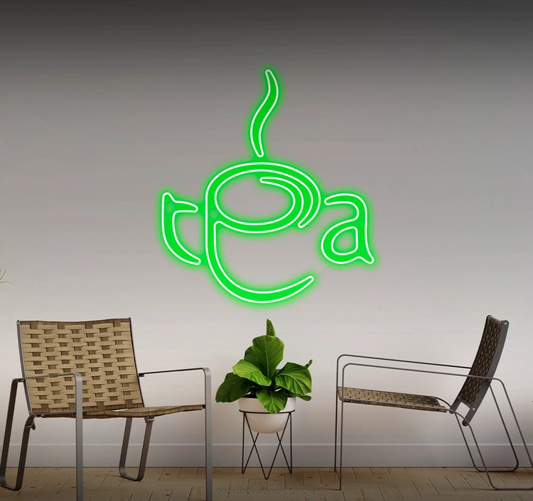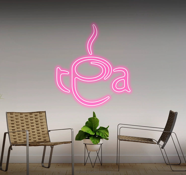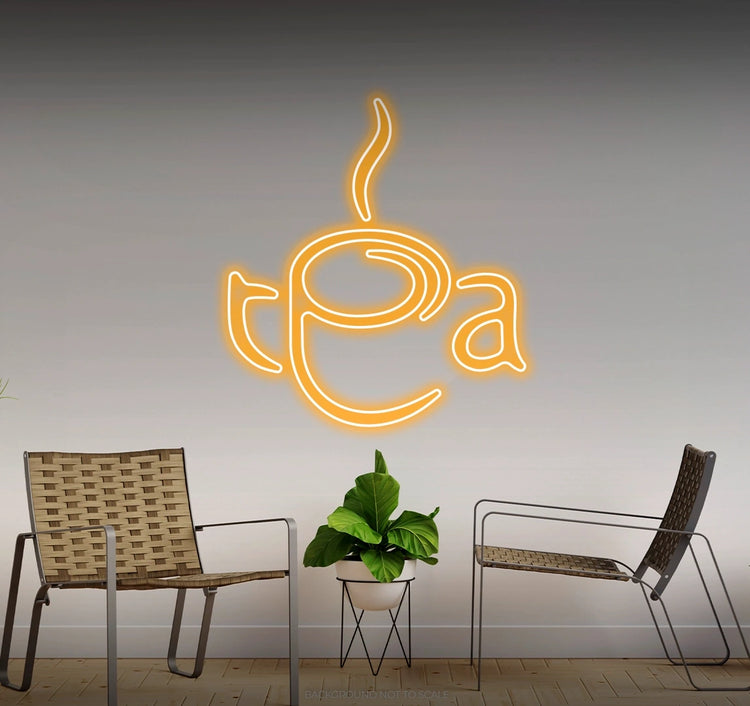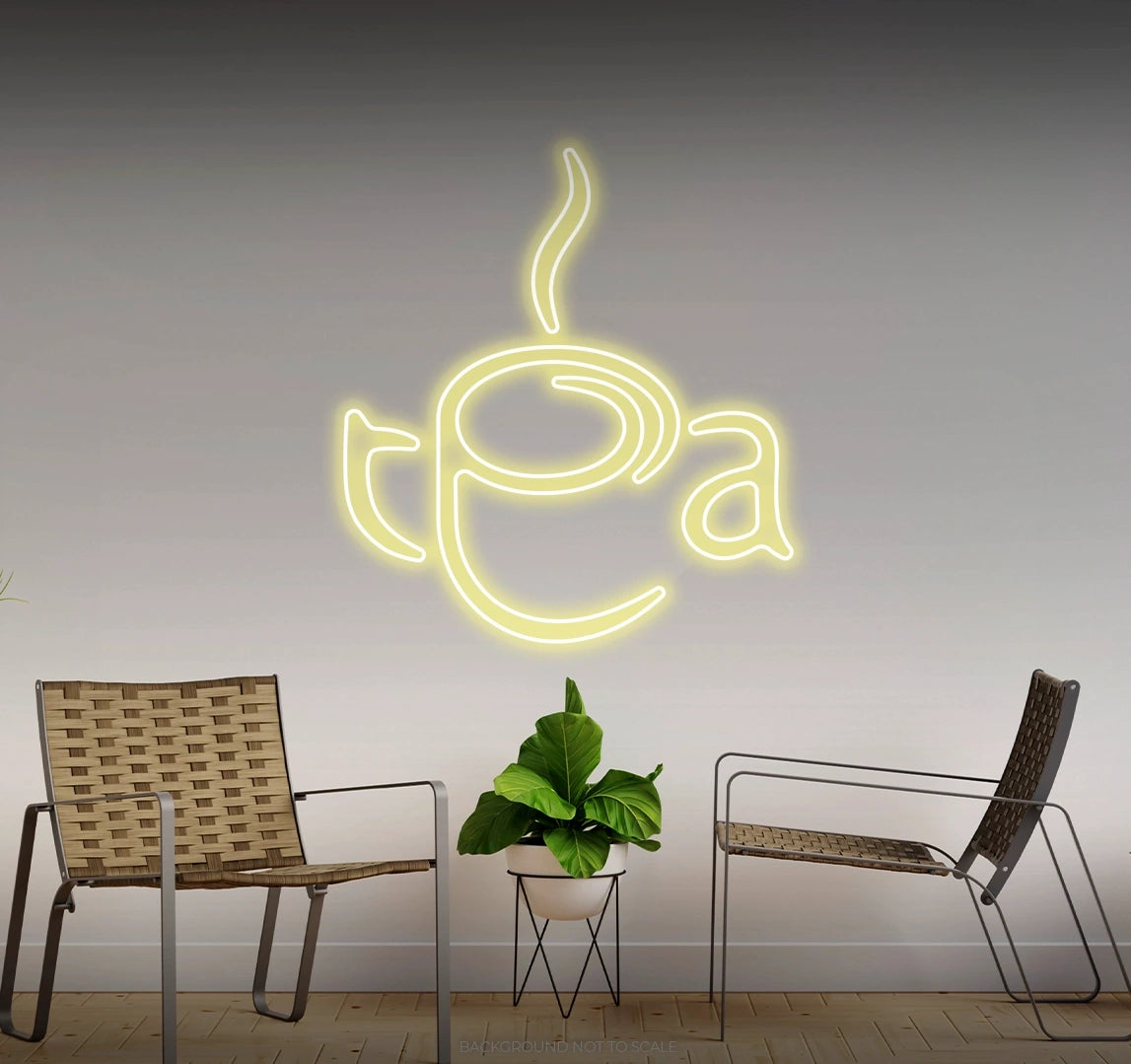 Radiant Neon Glow: Available in calming colors like warm white, pastel yellow, or soft green to reflect the essence of a comforting tea experience.
