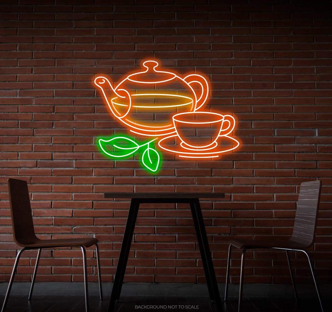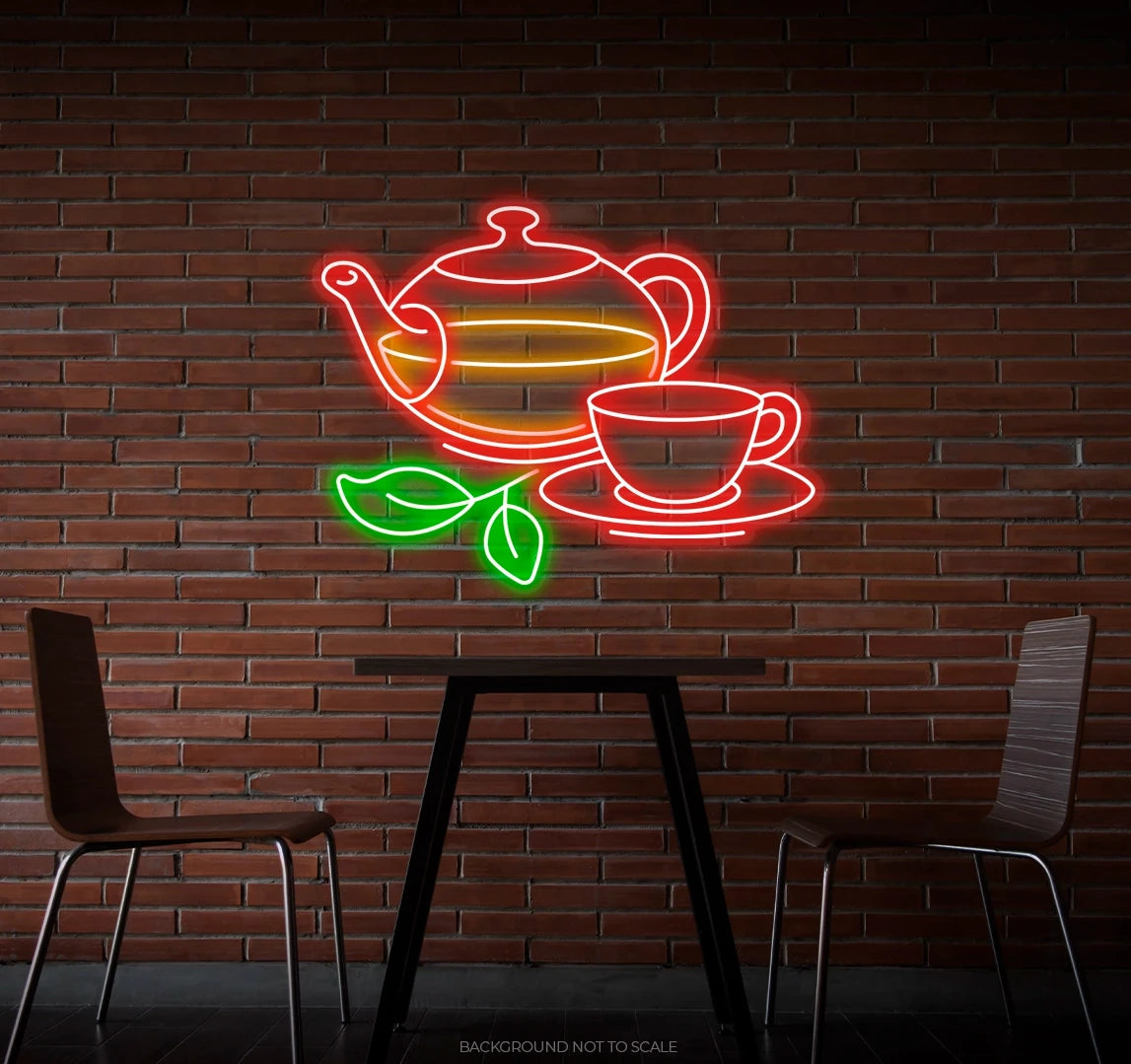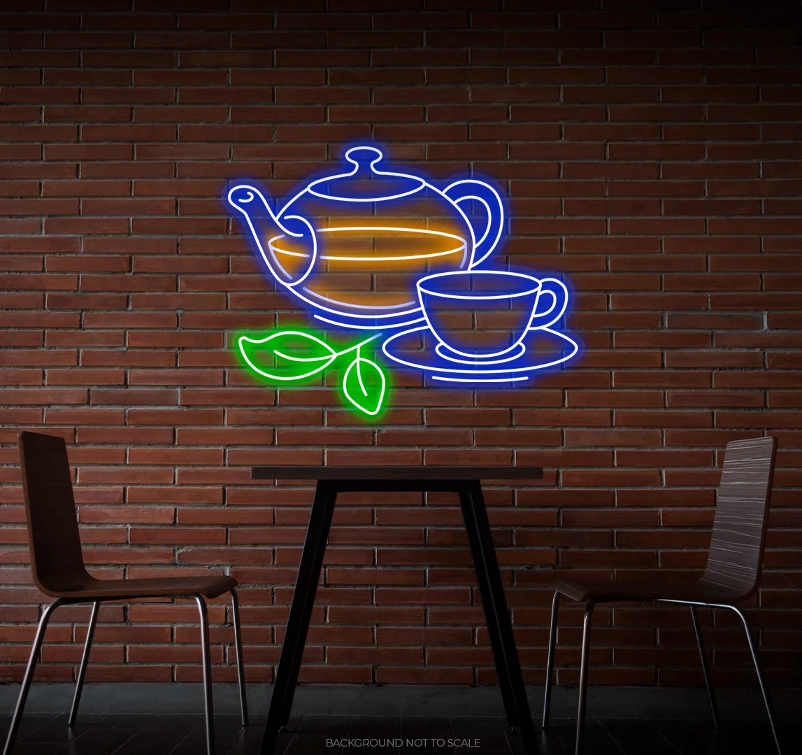 5. Customizable Tea Haven: Personalize your neon sign by choosing from a variety of colors and sizes. Tailor it to match your space's aesthetic or create a standout centerpiece with a unique color scheme that radiates tranquility.