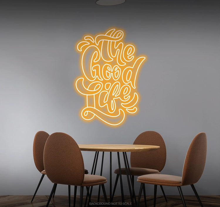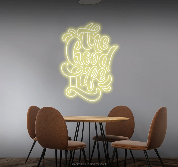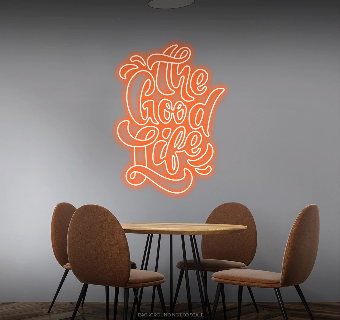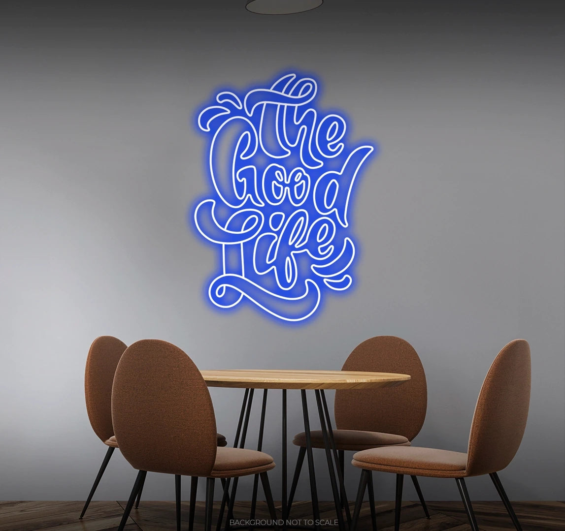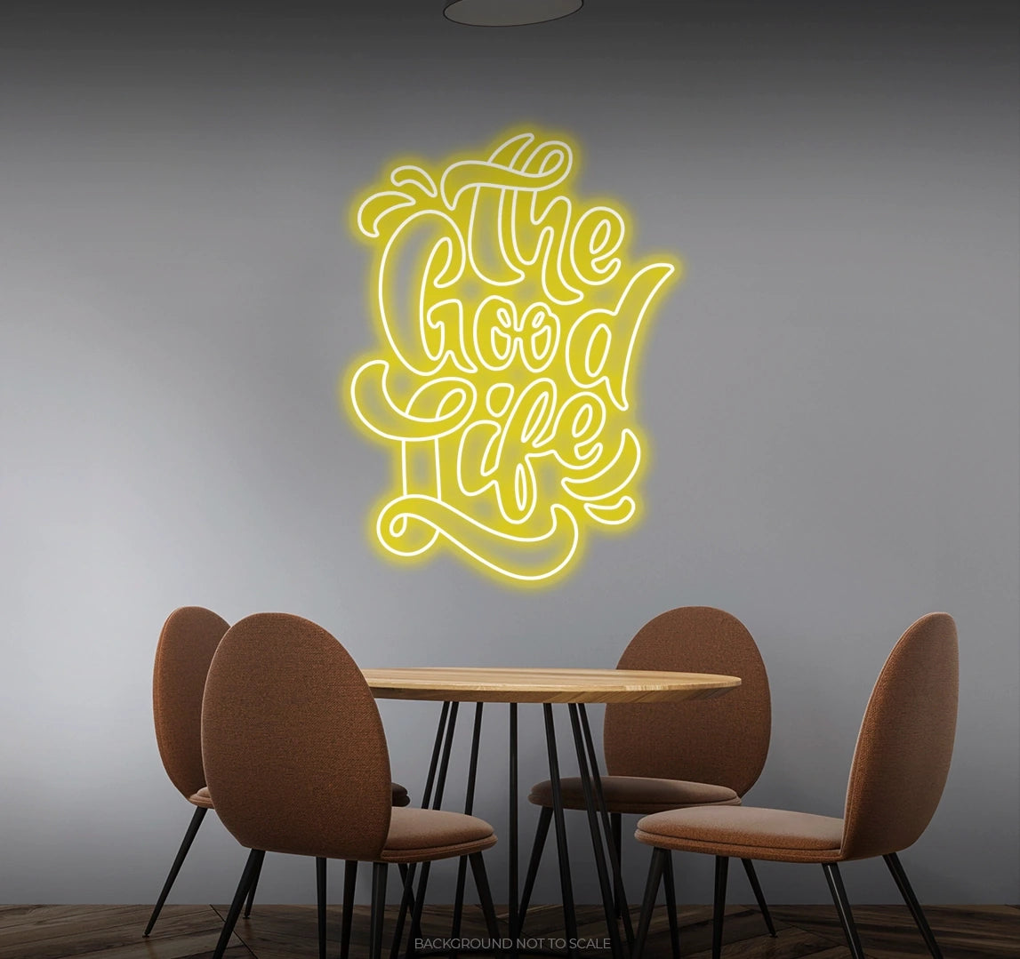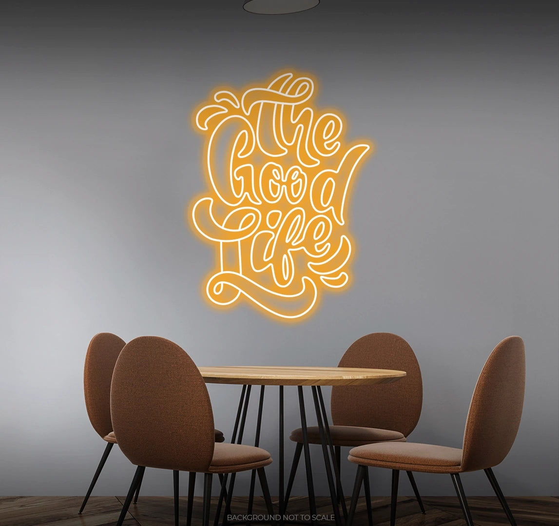Joyful Radiance: Immerse your space in the uplifting glow as our LED neon sign declares, "The Good Life." This radiant expression encapsulates the carefree and blissful vibe that comes with embracing a life filled with joy.