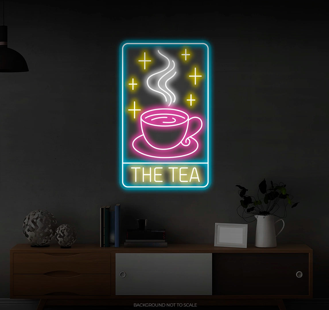 Elevate Your Space with Tea Vibes: Embrace the joy of tea culture with our LED neon sign, serving as a glowing reminder to take a moment to relax and enjoy your favorite brew. "The Tea Card" sign is perfect for anyone who loves to surround themselves with the warmth of tea.