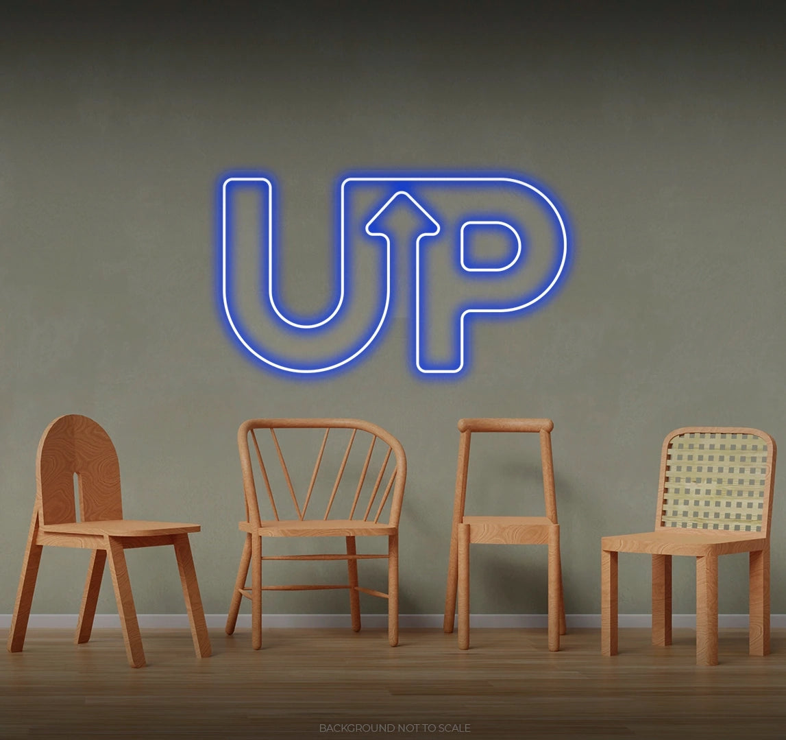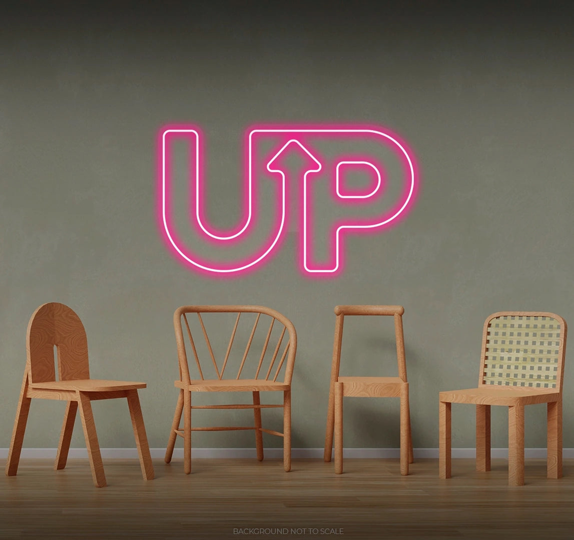 Inspiring Signage Splendor: Illuminate your space with the dynamic glow of our LED neon sign. It doesn't just light up; it radiates with the timeless charm of the "Up Arrow," capturing the essence of positivity and a forward-thinking mindset.