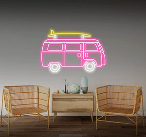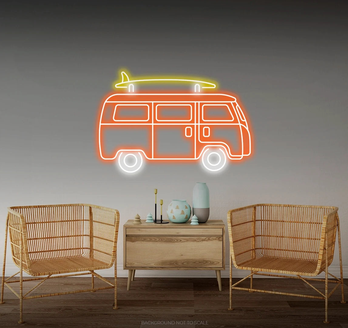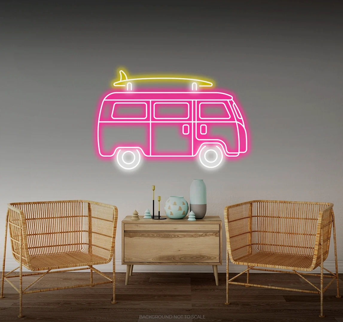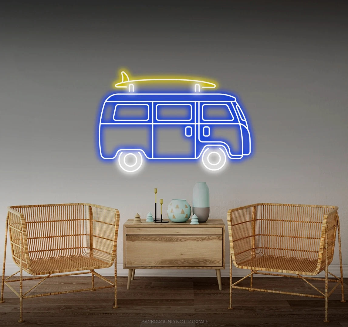 Surf's Up: "Van with Surfboard" LED Neon – Illuminate Your Space with Coastal Cool!