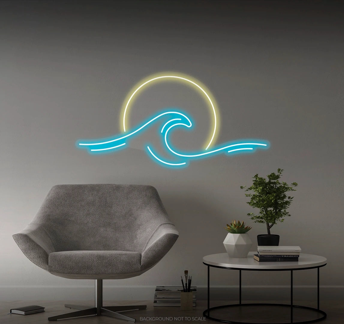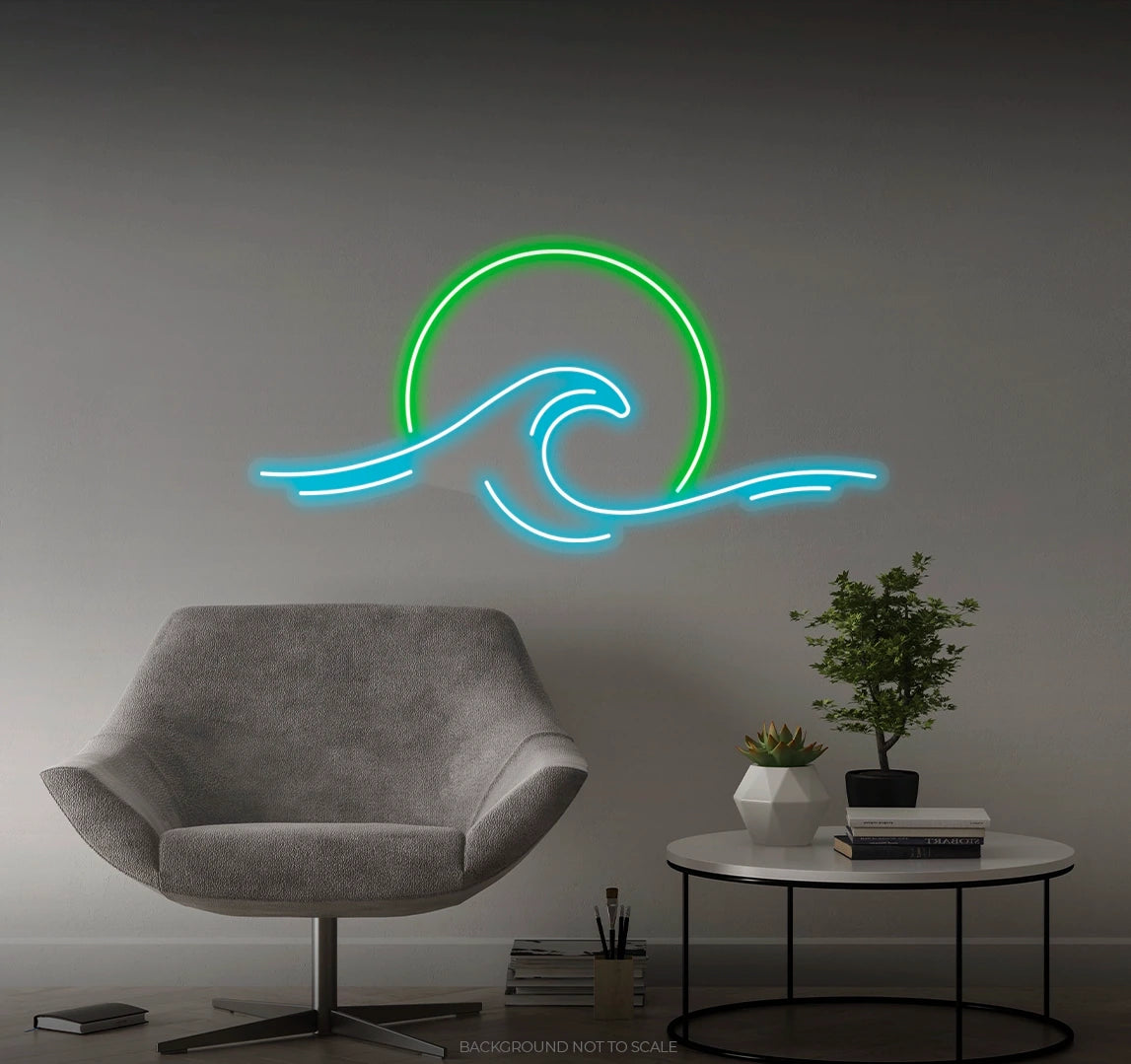 Crafted for Harmony: Meticulously designed, our "Wave with Circle" LED Neon symbolizes the perfect synergy between the gentle undulation of a wave and the symmetry of a circle. It stands as a radiant celebration of the natural harmony found in the meeting of these two elements.