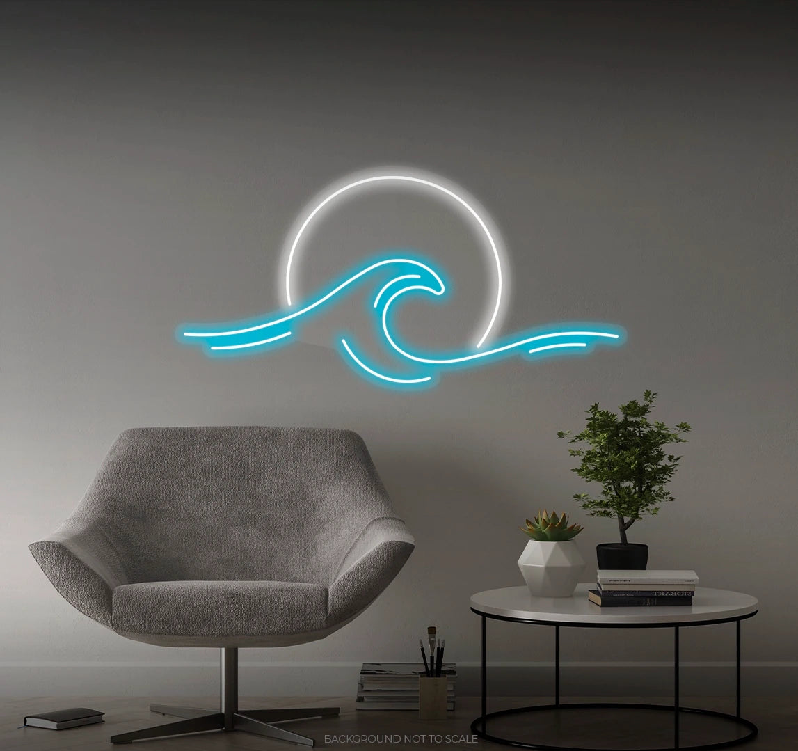 Elegant Signage Splendor: Illuminate your space with the gentle glow of our LED neon sign. It doesn't just light up; it radiates with the timeless charm of a wave embracing a circle, capturing the essence of fluid beauty and harmony.