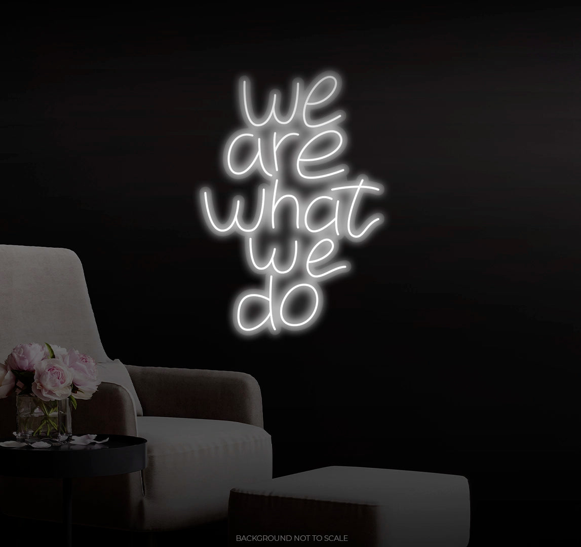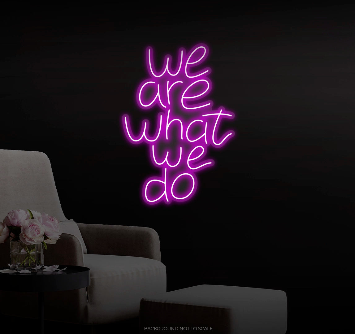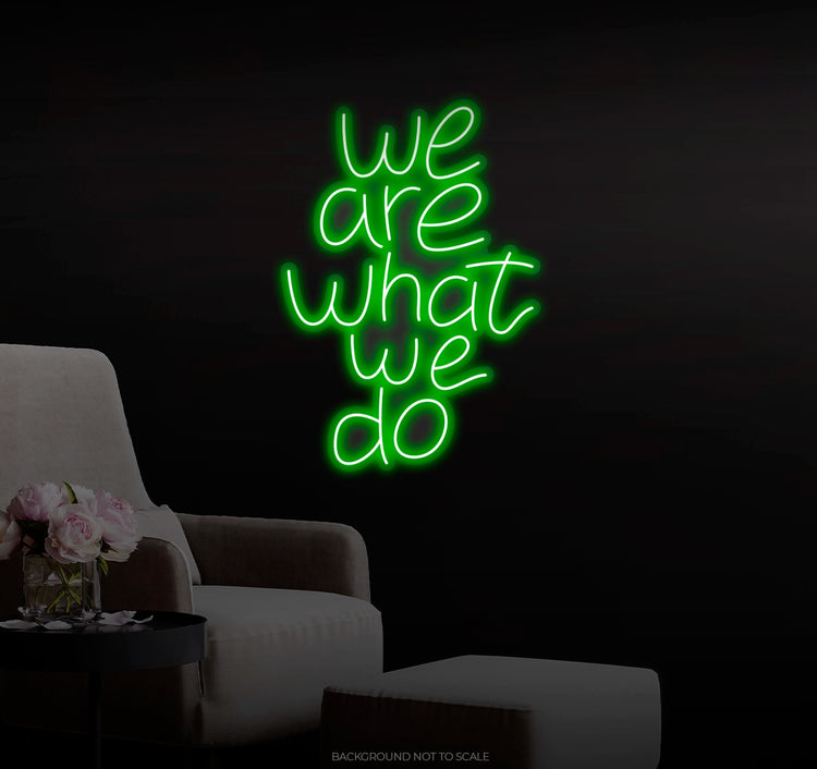 We Are What We Do Signage Elegance: Illuminate your environment with the motivating glow of our "We Are What We Do" LED Neon. It not only lights up but also radiates the spirit of action and determination, embodying the importance of living with purpose.