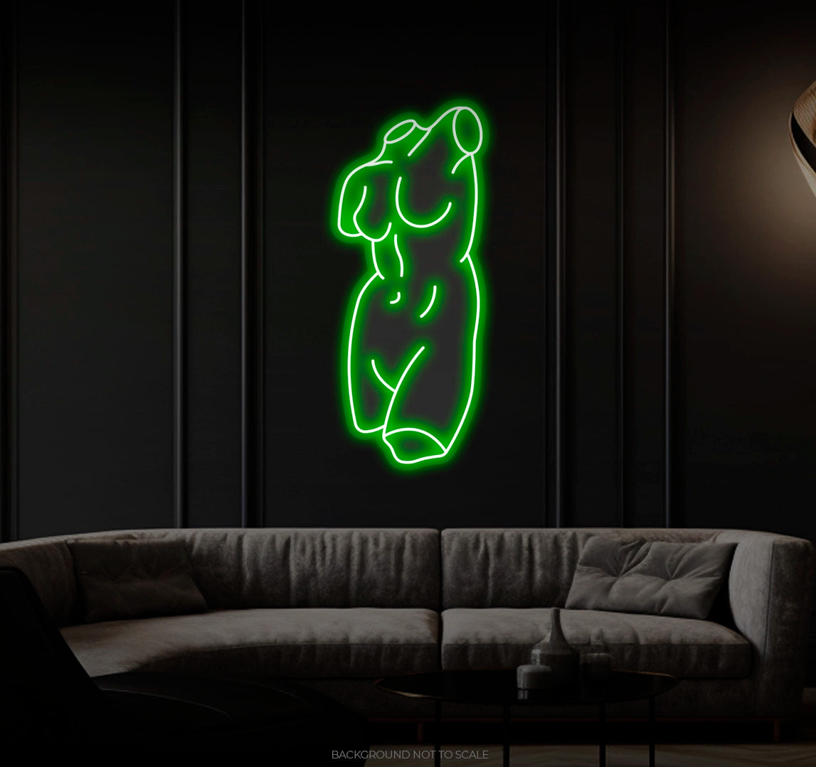 Durable and Safe: Our LED neon signs are designed to last, being both durable and safe to touch. Create a refined atmosphere worry-free, as the gentle glow of the "Woman Body Statue" sign enhances your surroundings.