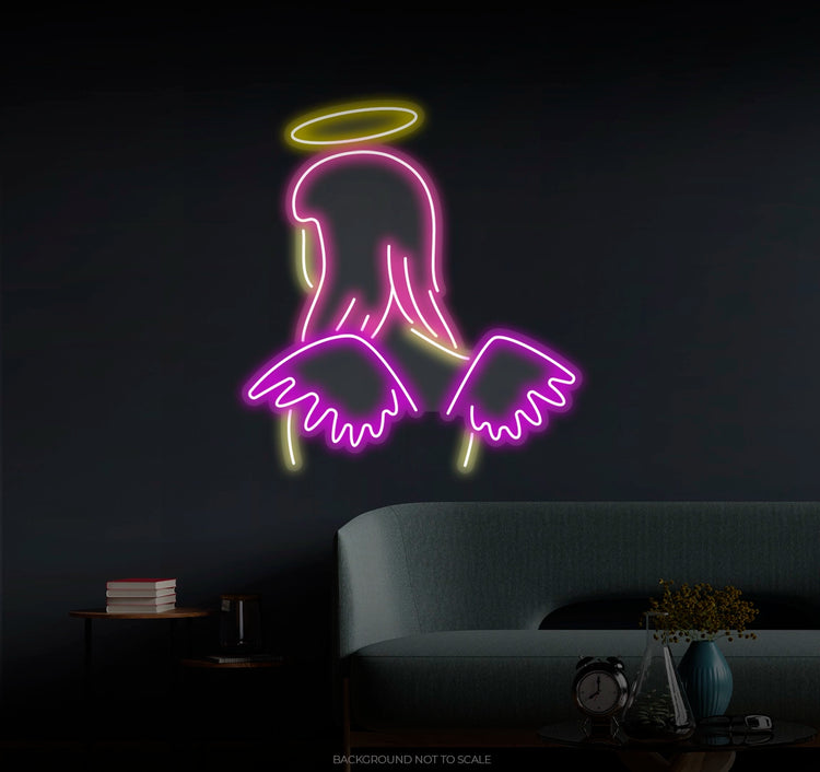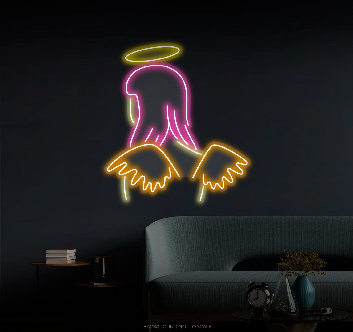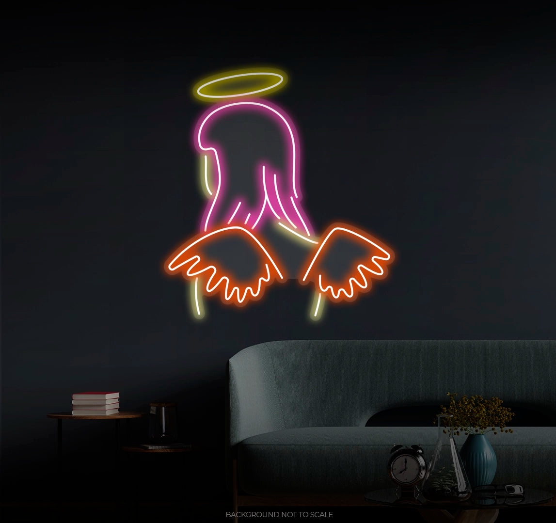 Illuminate your world with the grace and divinity of the "Woman with Wings and Halo Behind" LED Neon. Order today to bring a touch of heaven to your space!