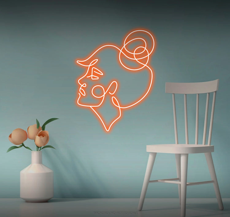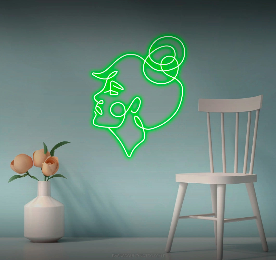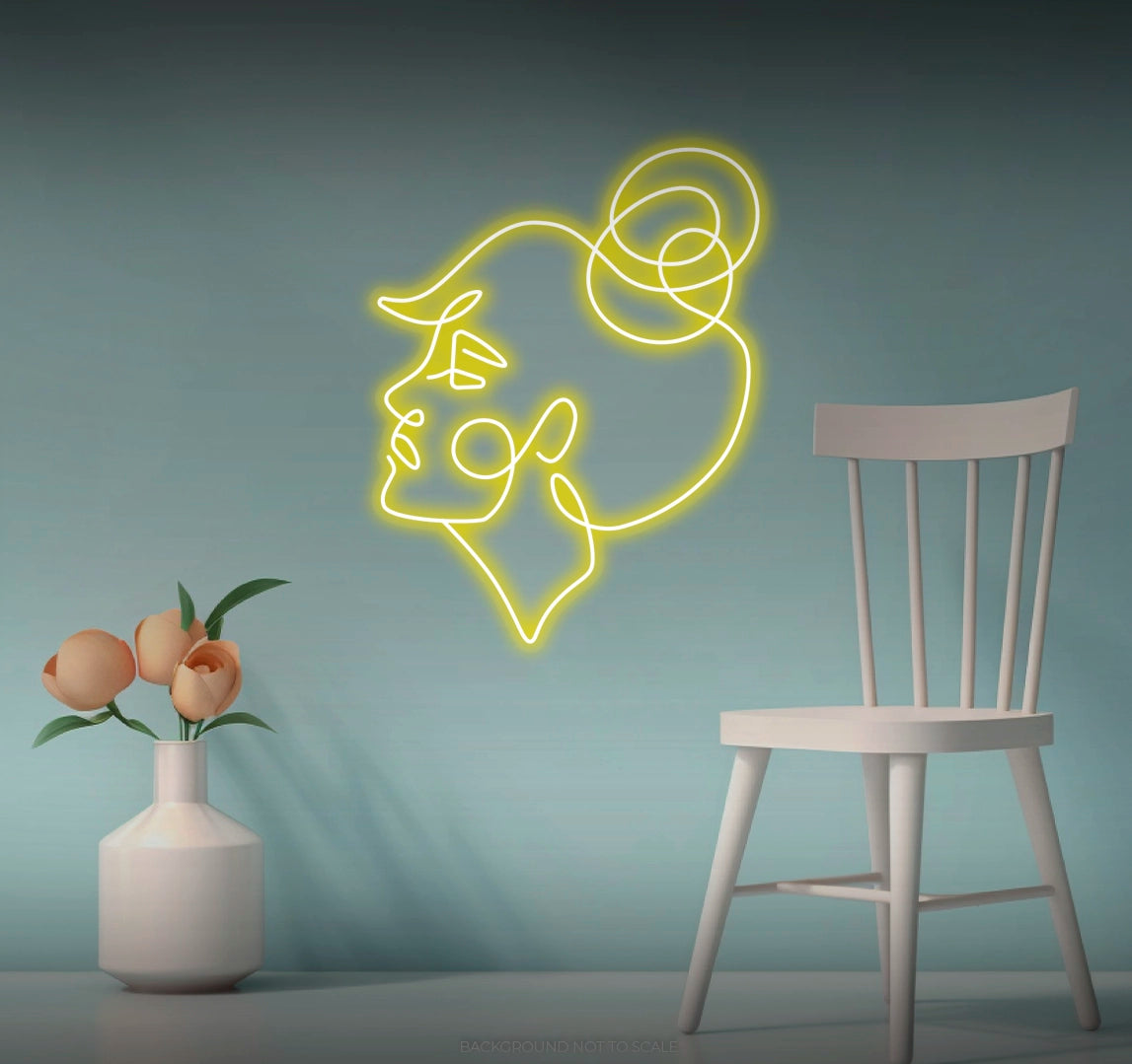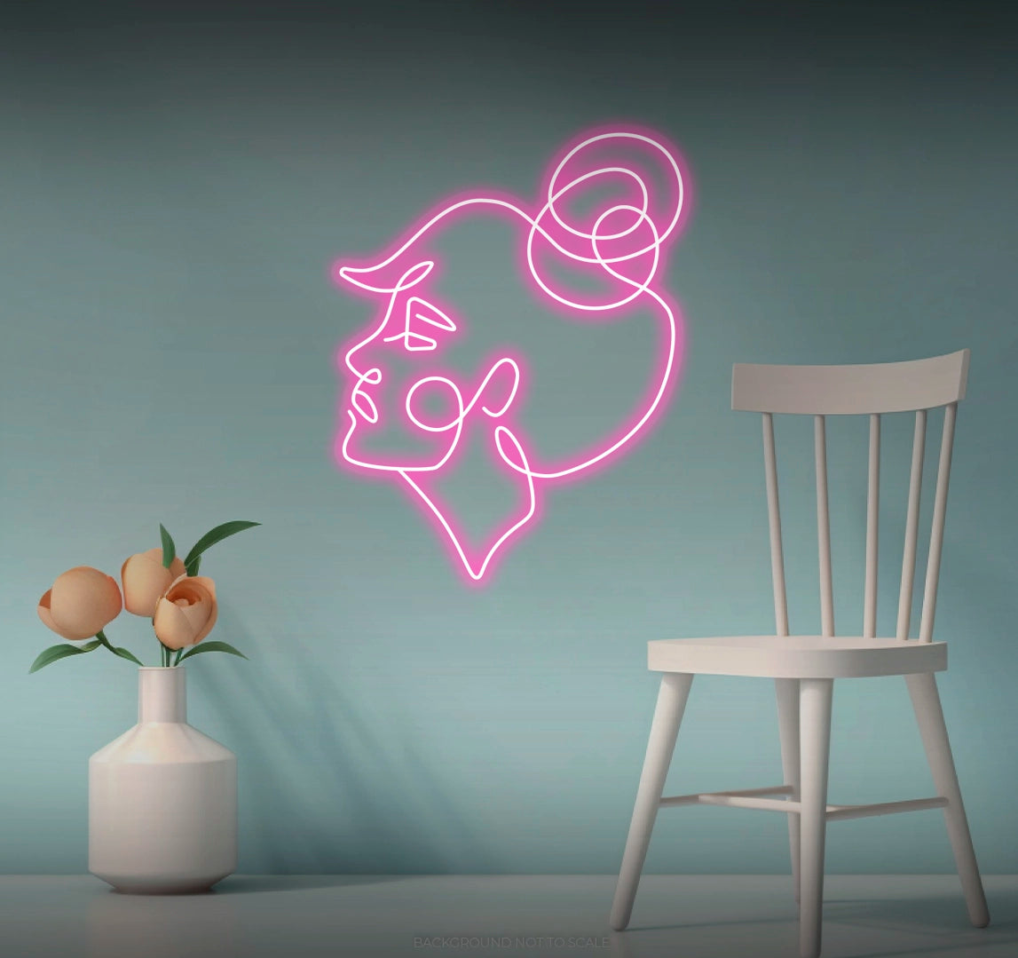 Energize Your Space with Feminine Grace: Embrace the sophisticated ambiance with our LED neon sign, casting a radiant glow that symbolizes the enduring beauty of the woman with a bun. Let this visual representation of grace fill your space with a sense of timeless allure.