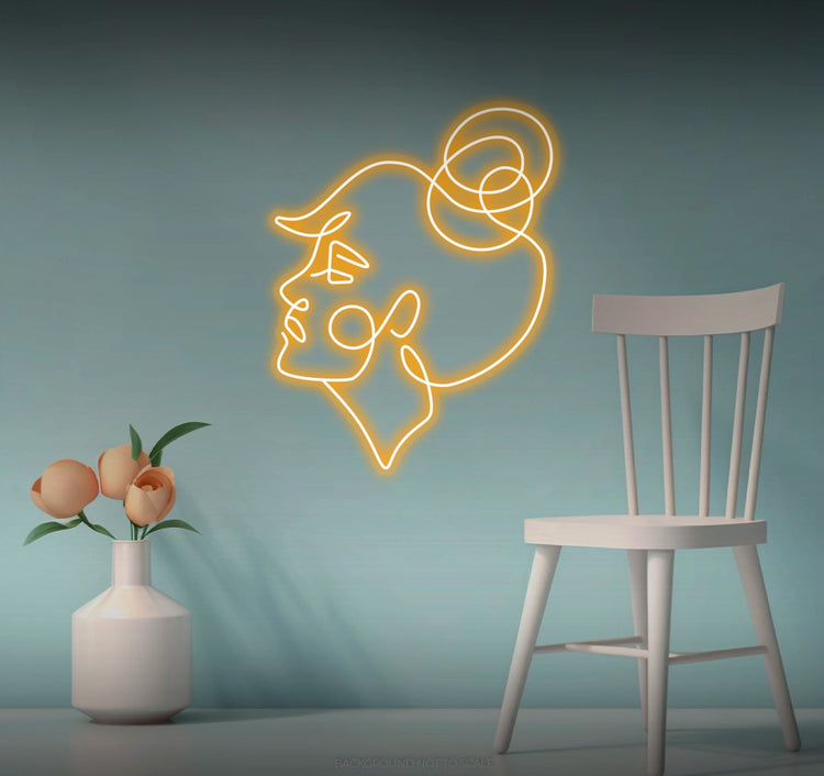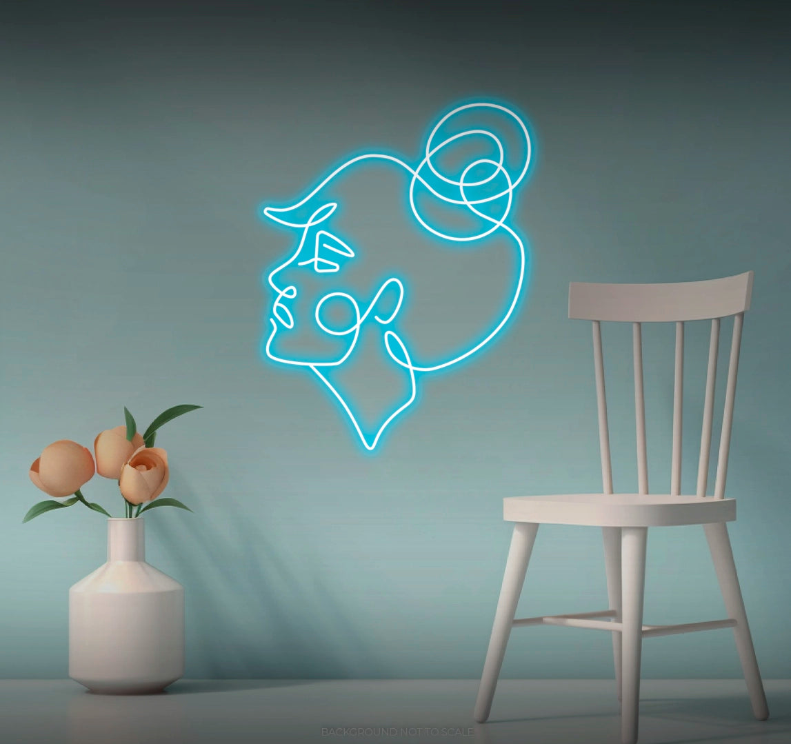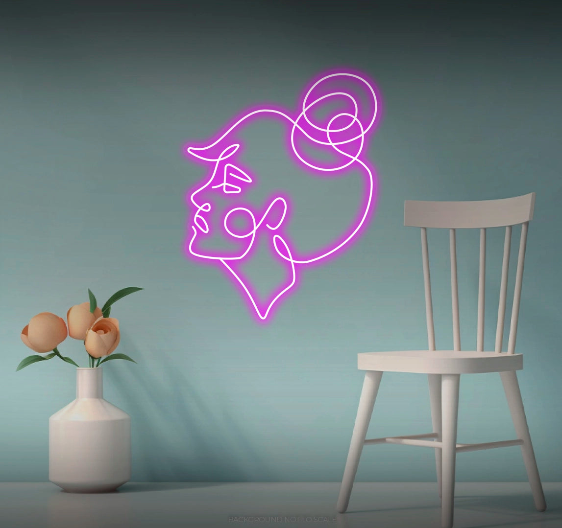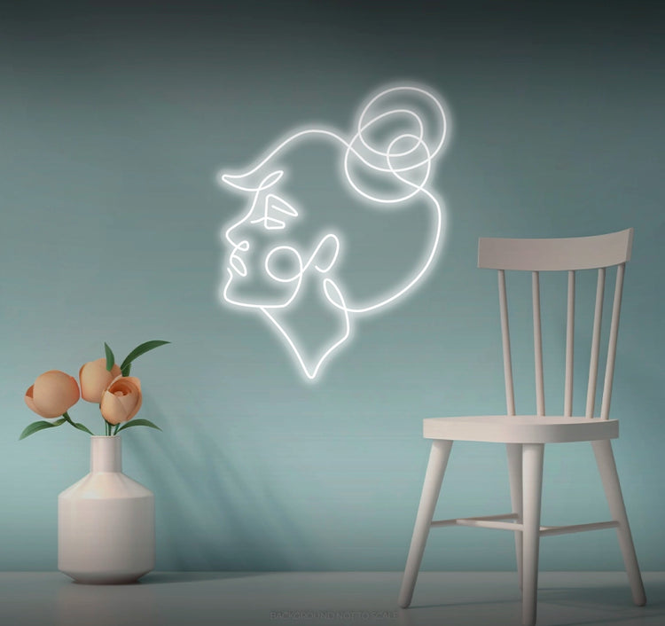 Timeless Elegance: Immerse your space in the enchanting glow as our LED neon sign beautifully captures the side view of a woman with a bun, embodying the enduring elegance of this classic and timeless image.