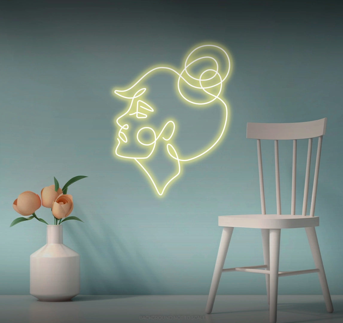 Durable and Chic-Safe: LED neon signs stand the test of time, durable and safe to touch. Create an elegant atmosphere worry-free, as the gentle glow of timeless beauty emanates from our "Woman with Bun Side View" LED Neon.