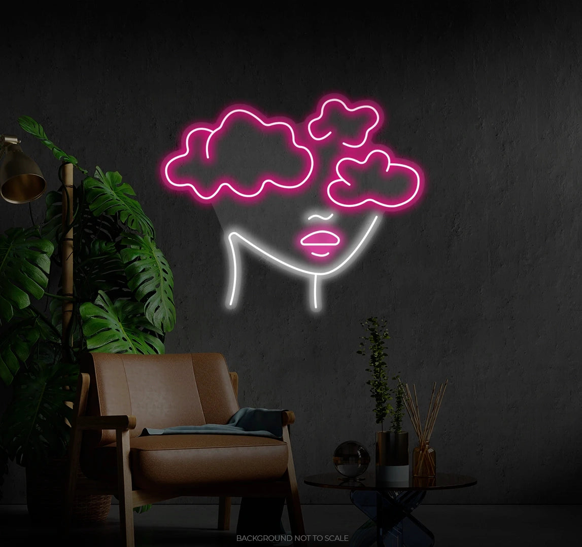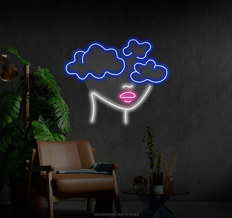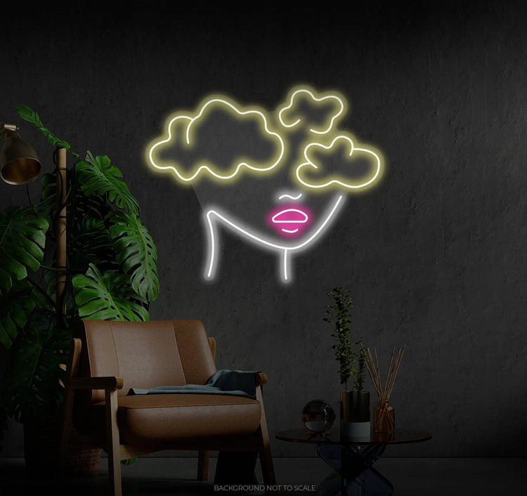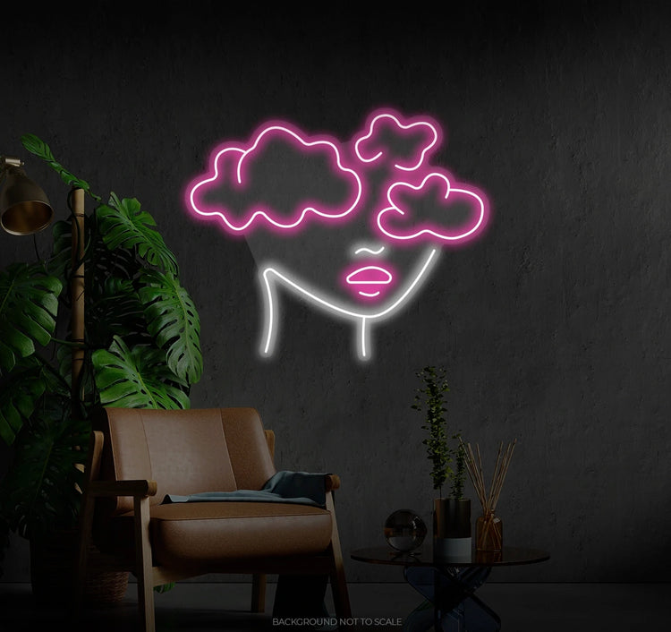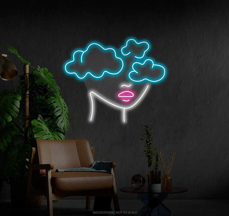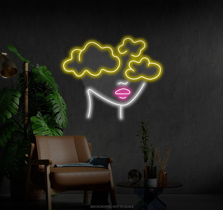 Versatile Placement: Ideal for bedrooms, creative spaces, art galleries, or any place that celebrates freedom and imagination, the Woman with Clouds Above Her Head LED Neon adds a unique and calming touch to any environment.