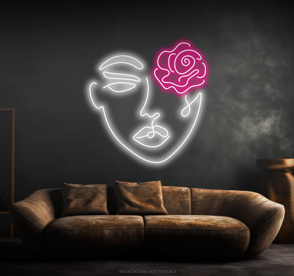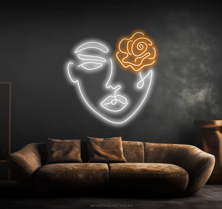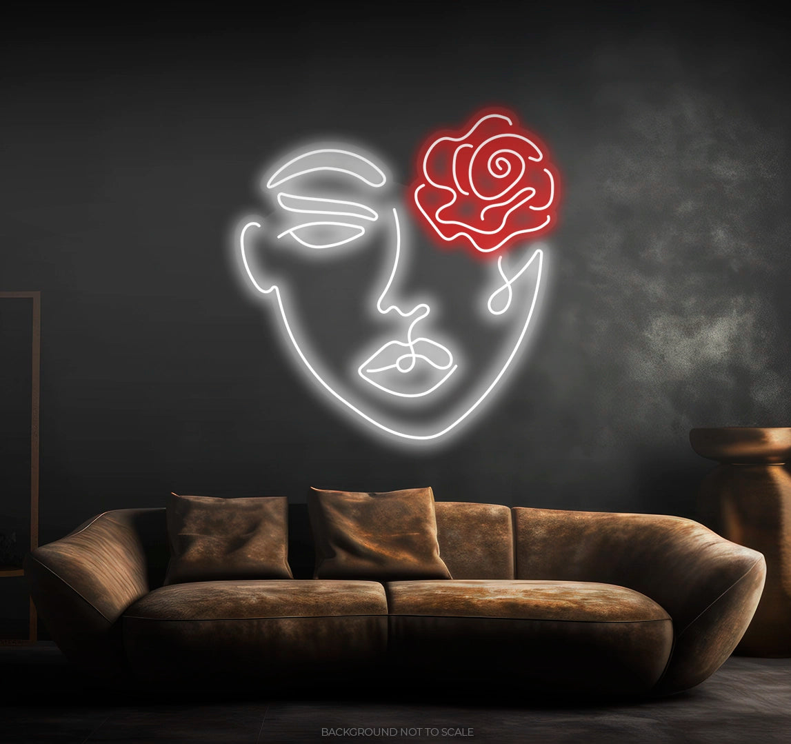 Graceful Neon Glow: Our LED neon sign beautifully captures the elegance of a woman's silhouette and the softness of a rose, while harnessing the energy-efficient and long-lasting benefits of modern LED technology. Immerse yourself in its captivating radiance that instantly transforms your space into a haven of beauty.