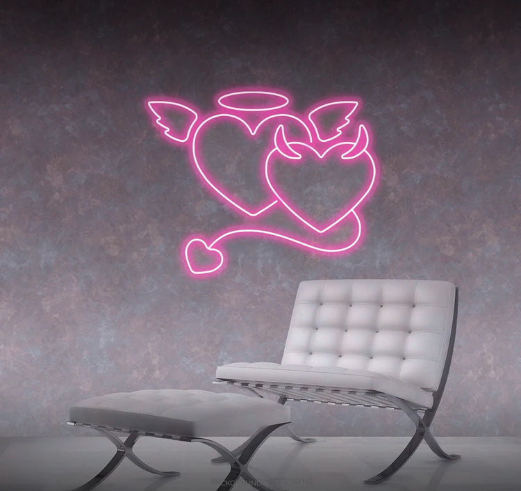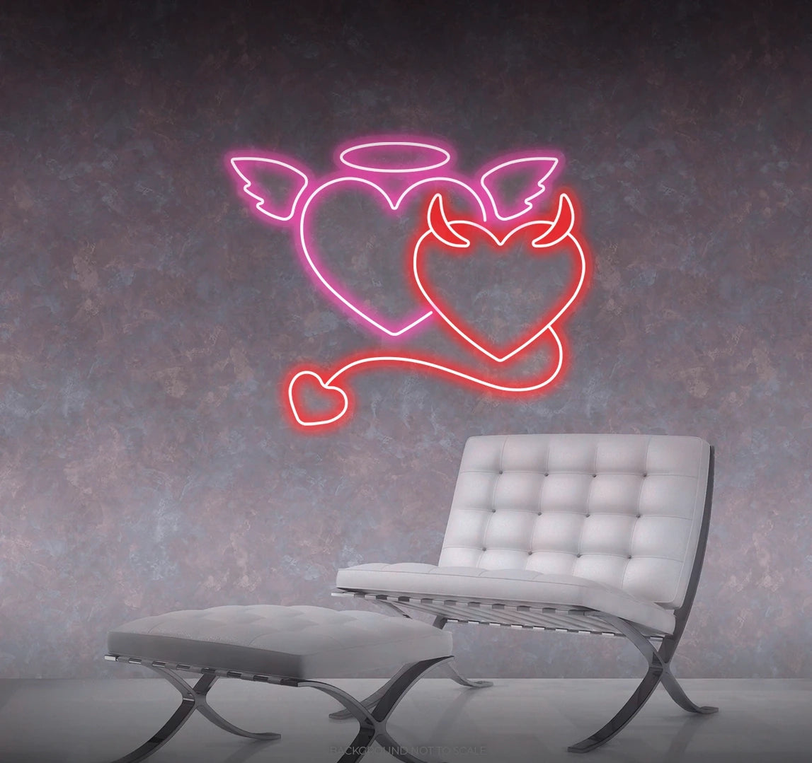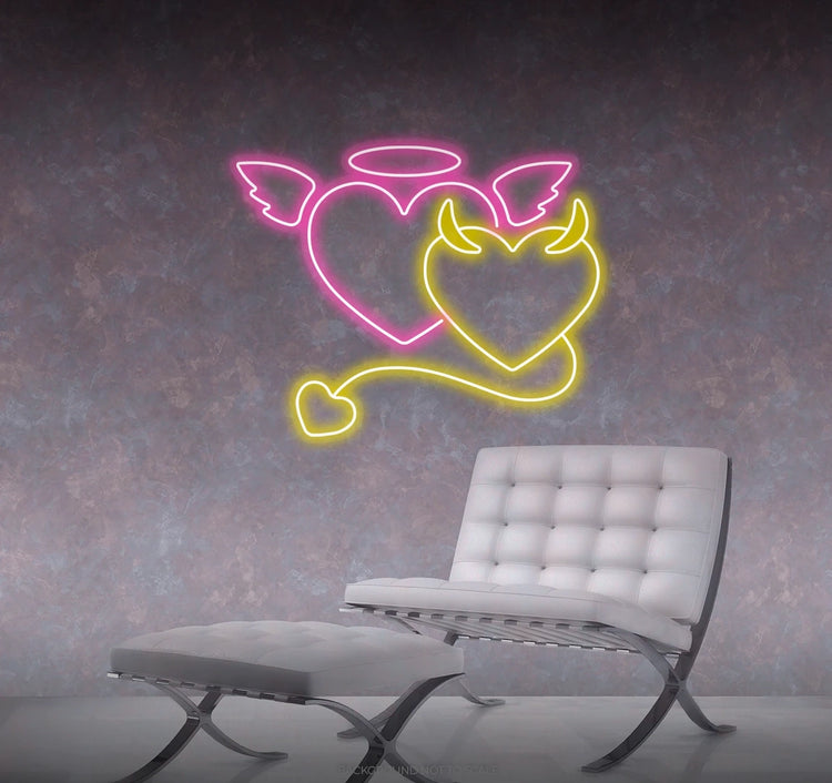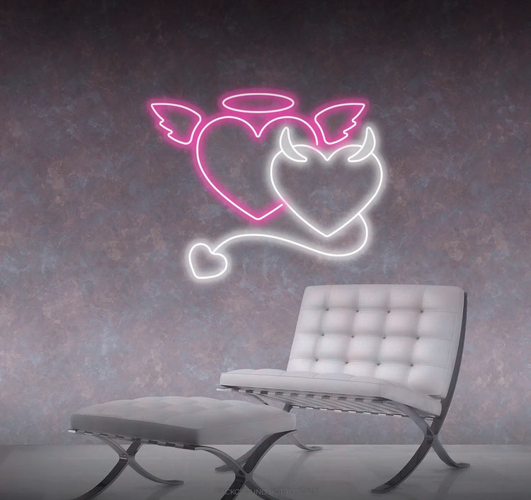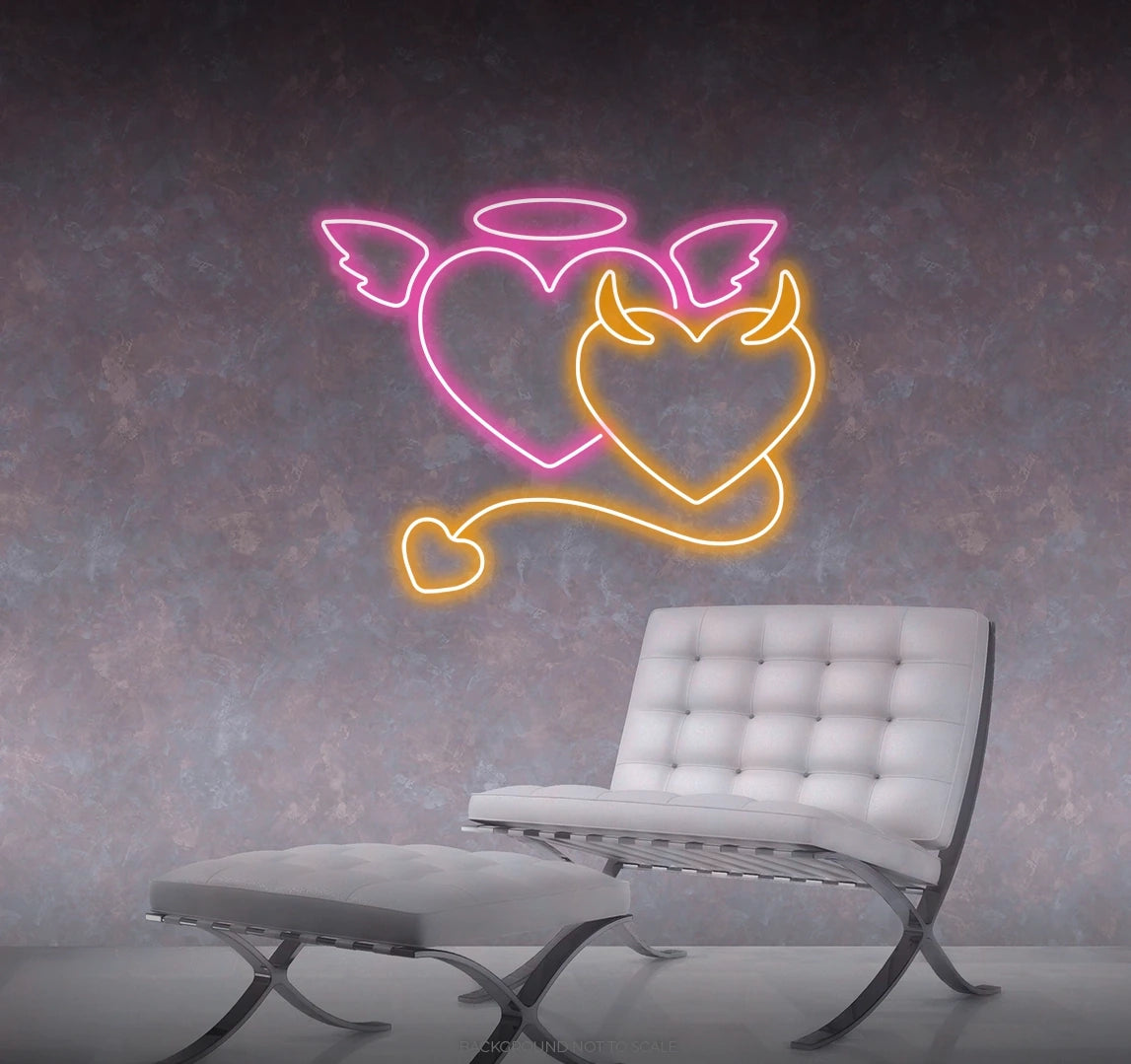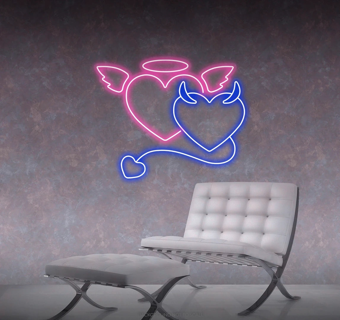 Welcome to Hello Neon, where we proudly present our "Angel and Evil Heart" LED Neon – Illuminate Your Space with the Timeless Duality of Good and Mischievous!