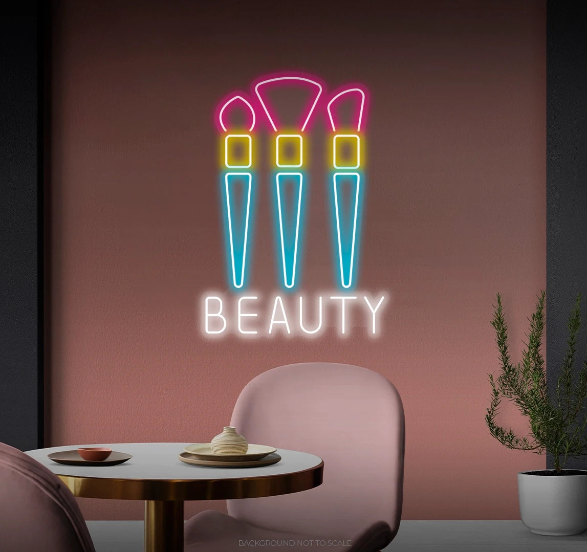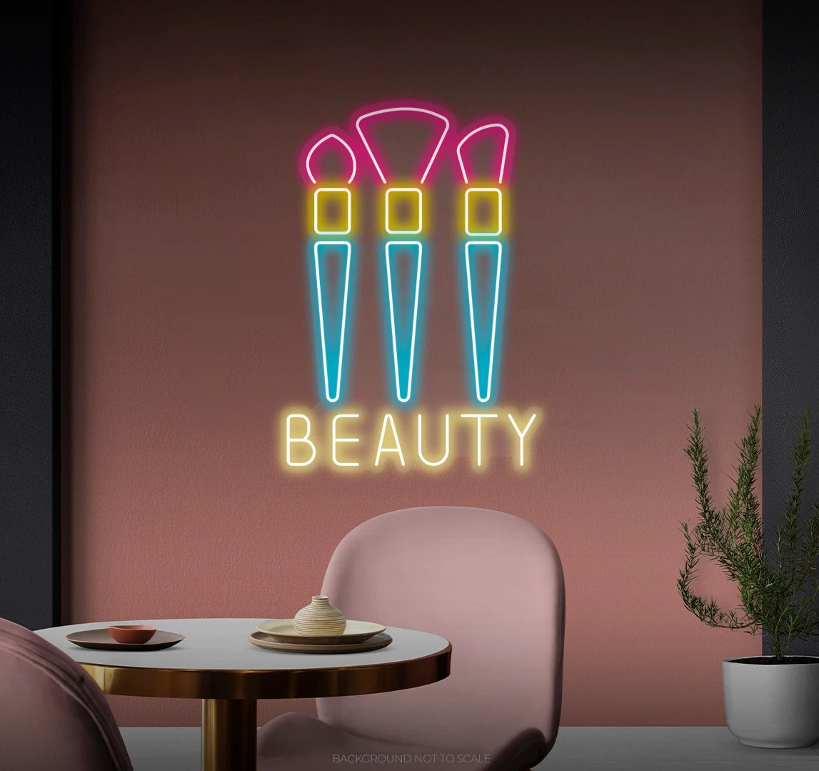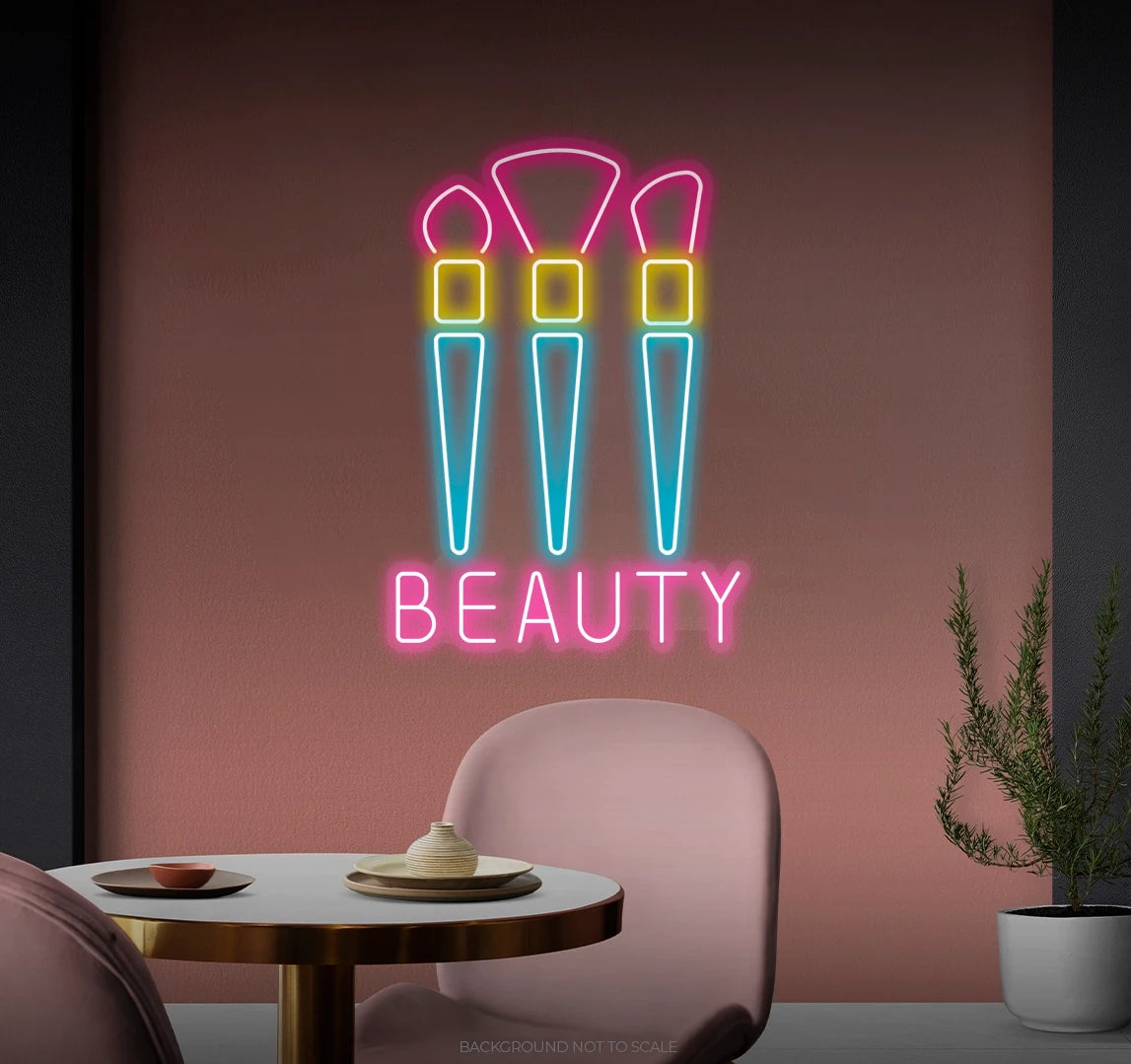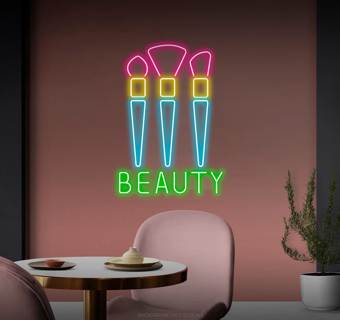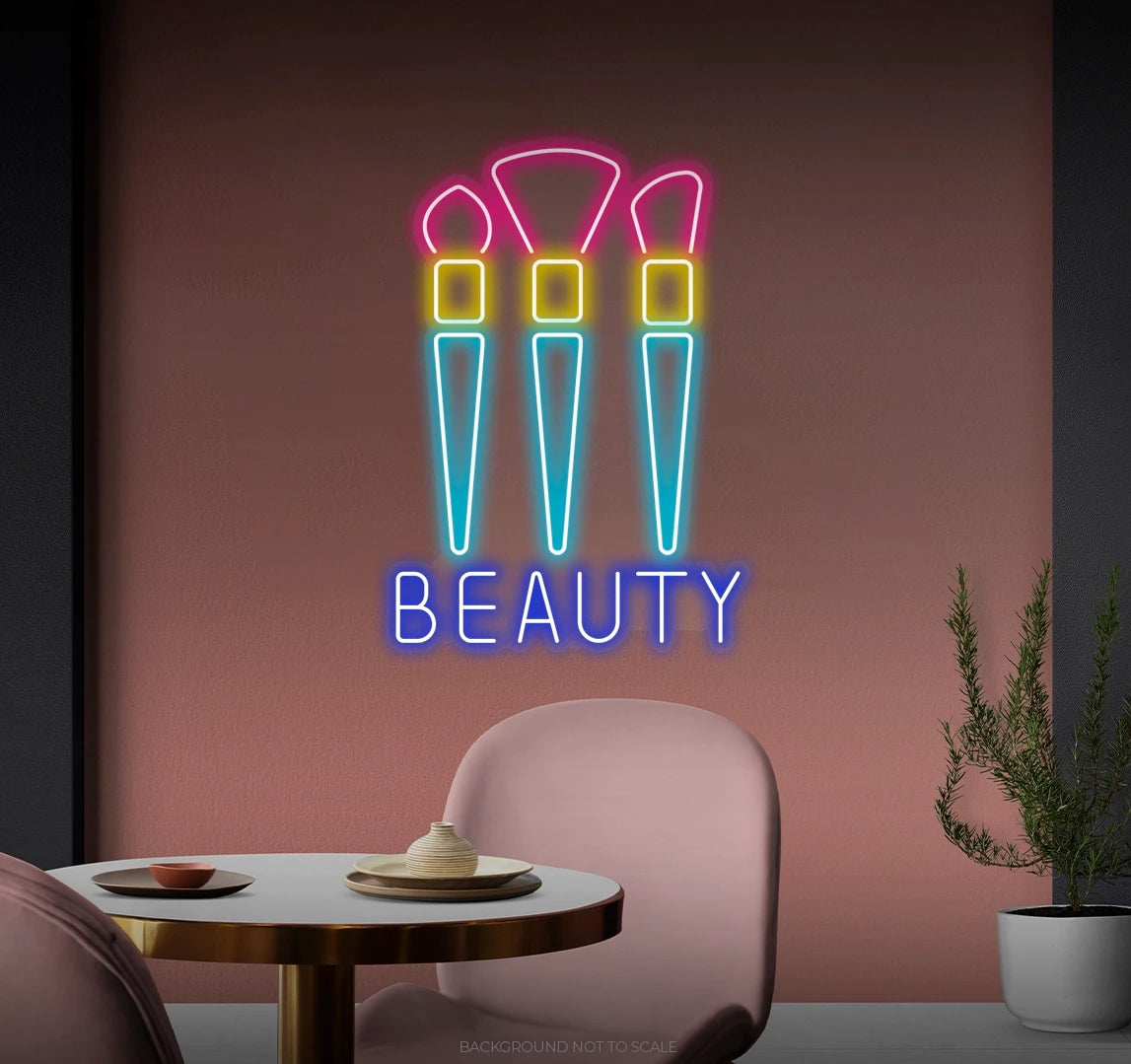 - Infuse your space with the perpetual charm of "Beauty" and makeup brushes LED Neon.