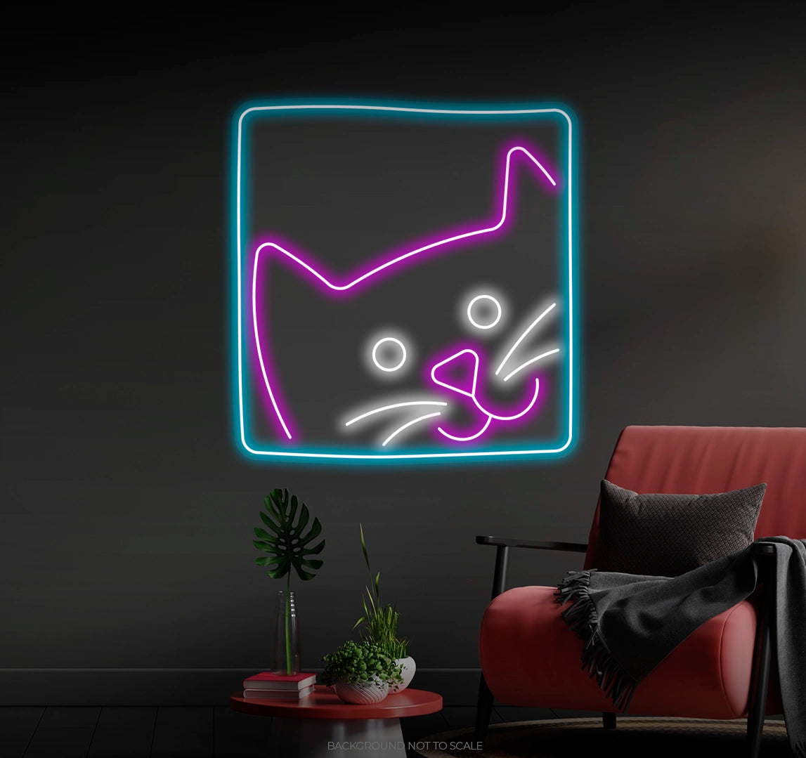 Celebrate your love for cats with the Cat Looking in the Frame LED Neon—a glowing testament to feline curiosity and elegance! 🐱✨