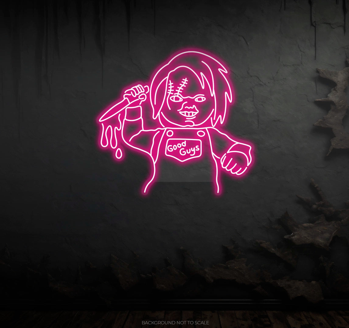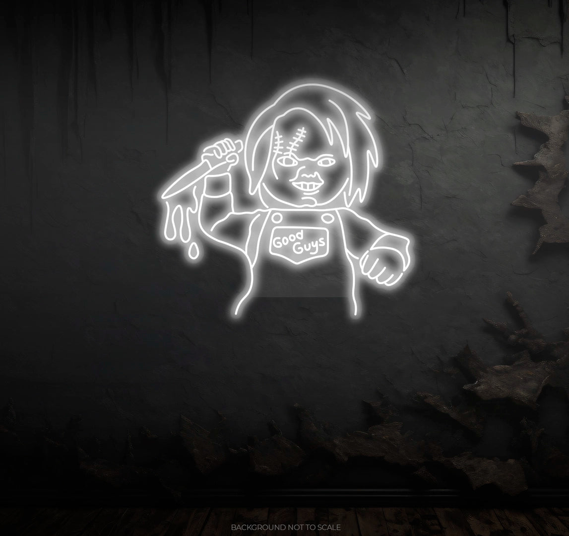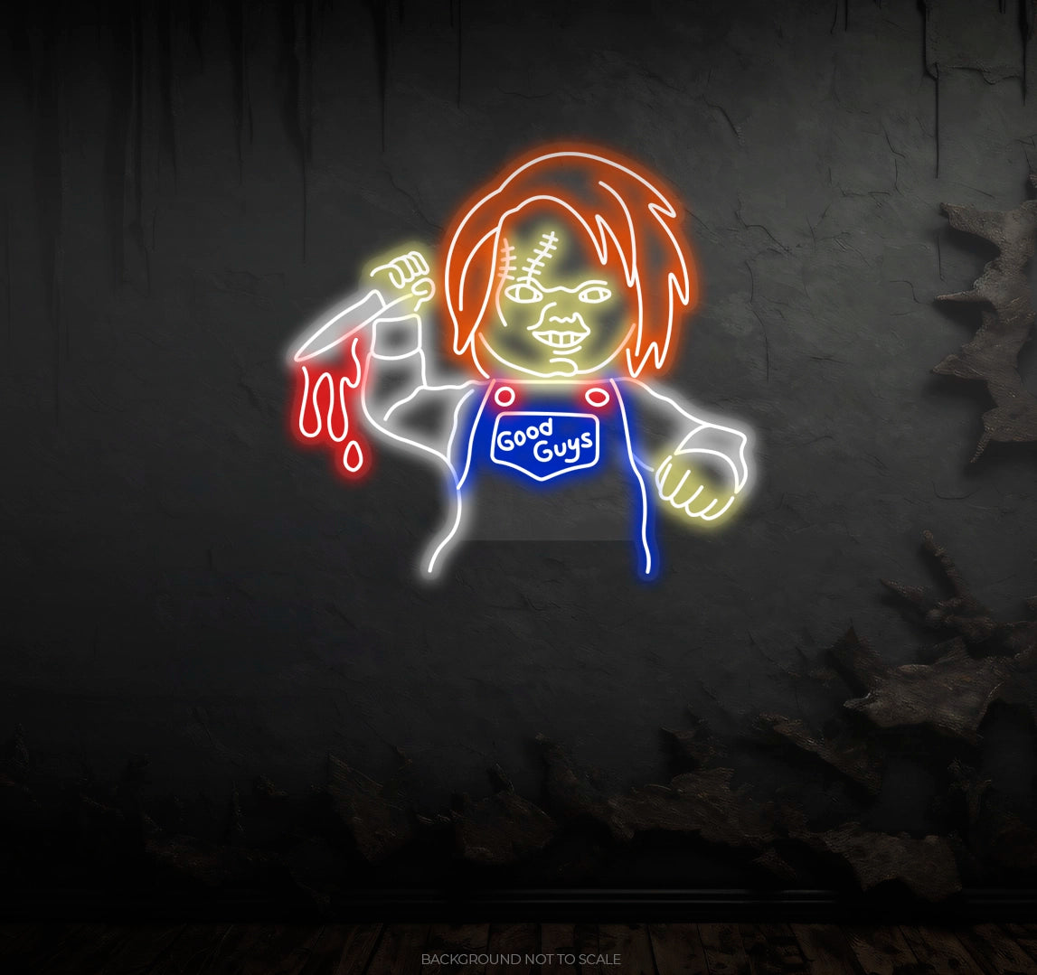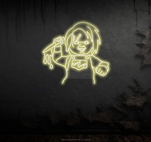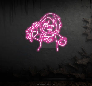 Don't miss this opportunity to add a touch of horror to your space. Order your "Chucky with Knife" LED Neon Sign today and let the sinister fun light up your world!