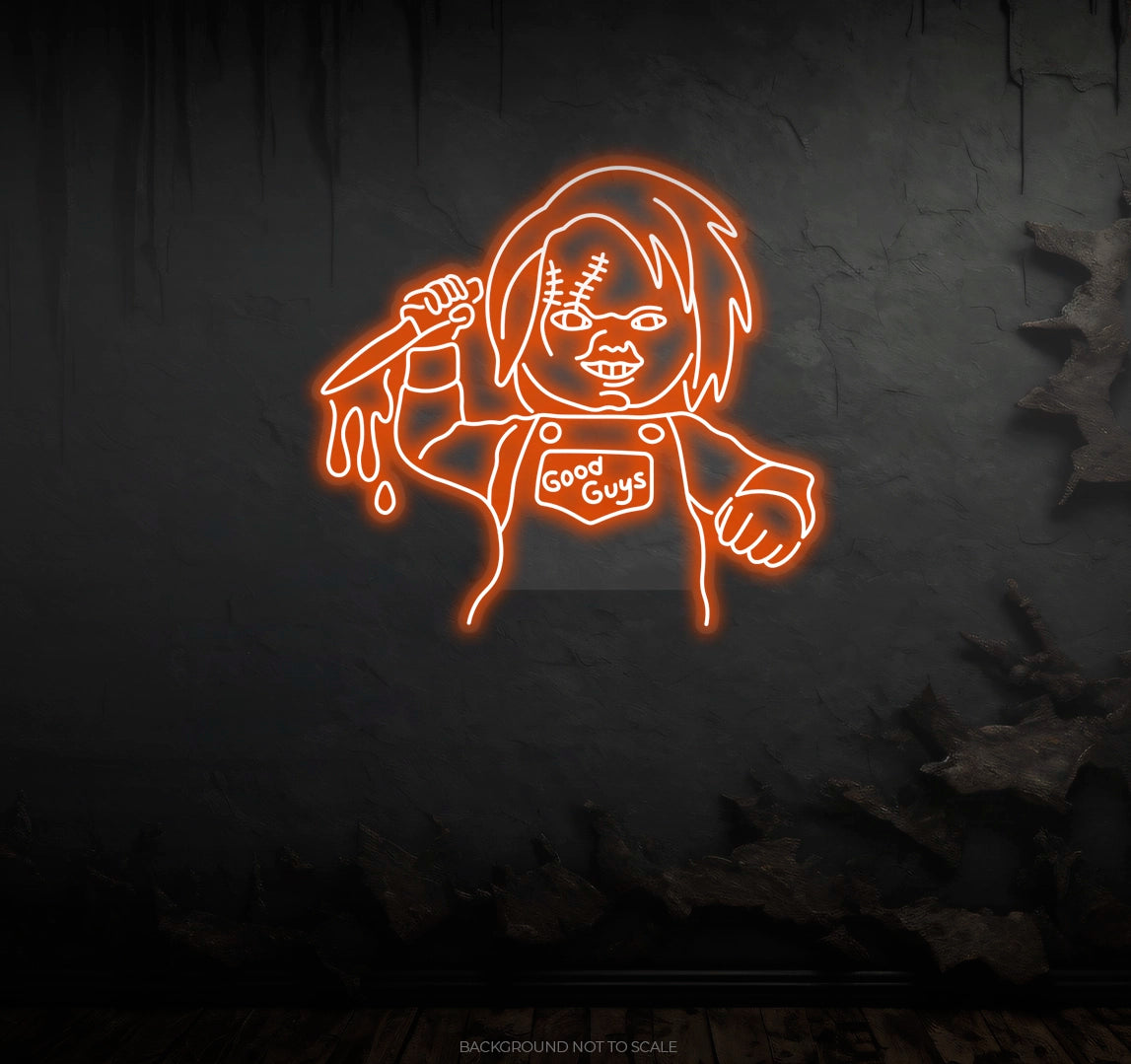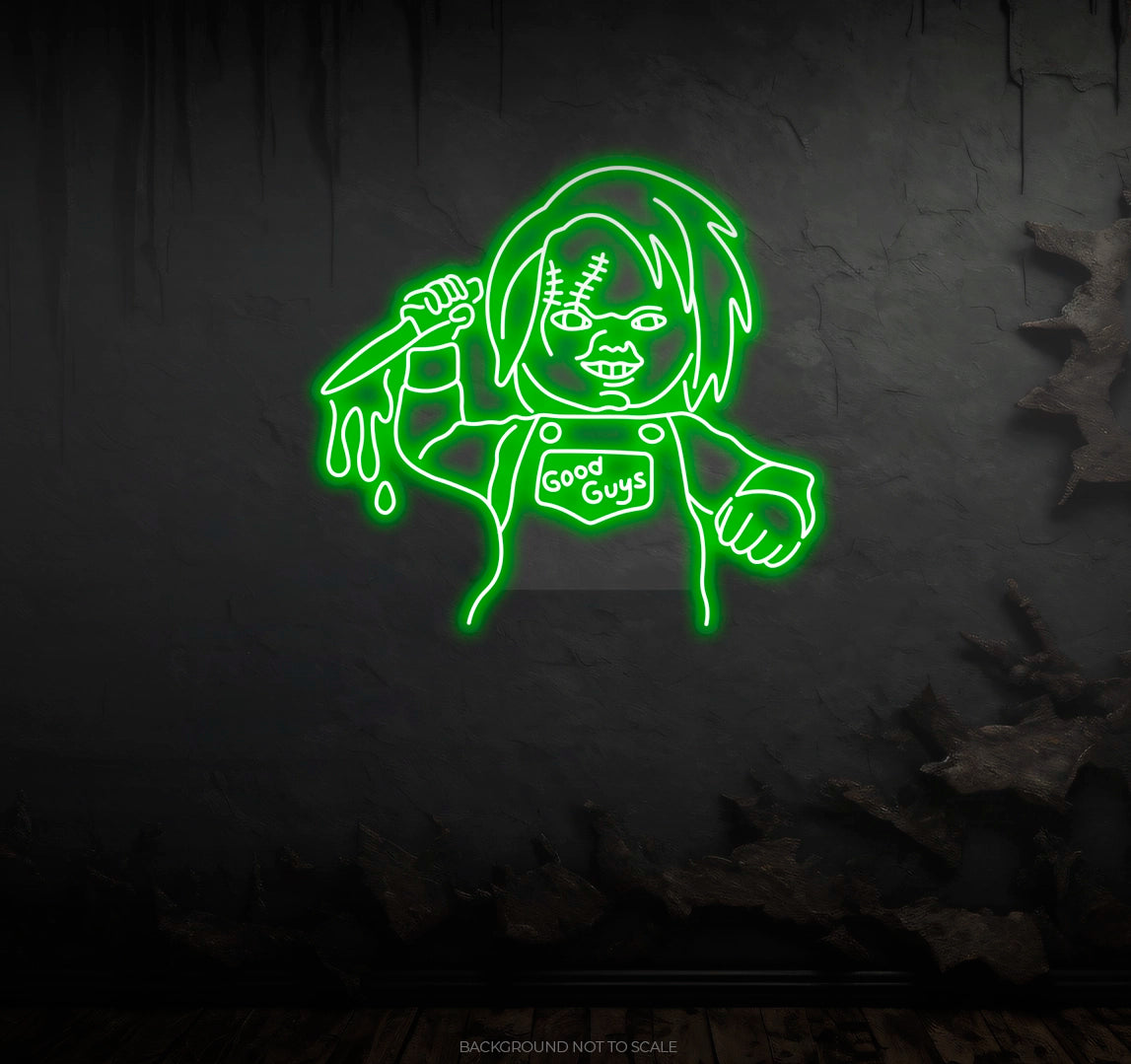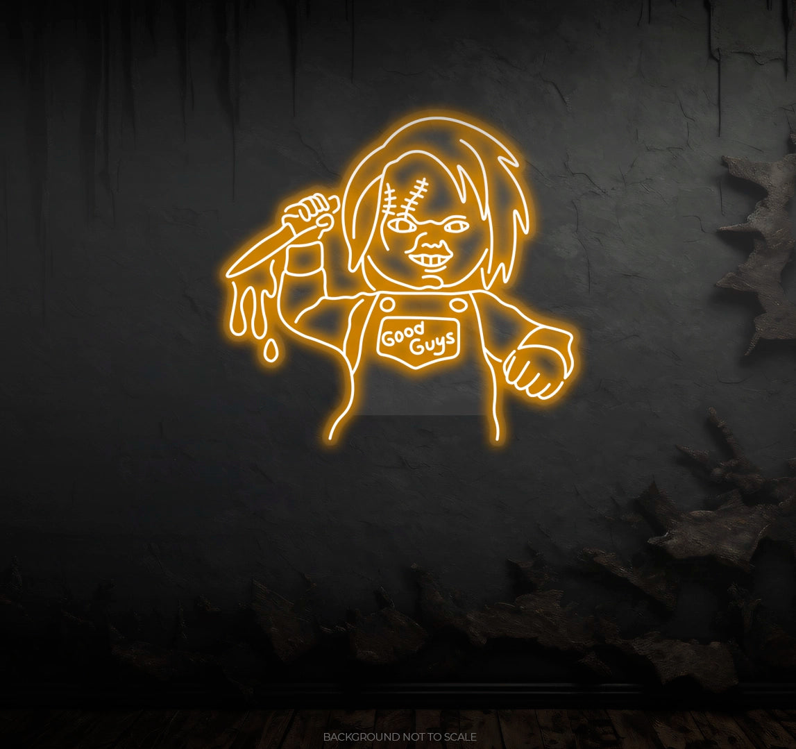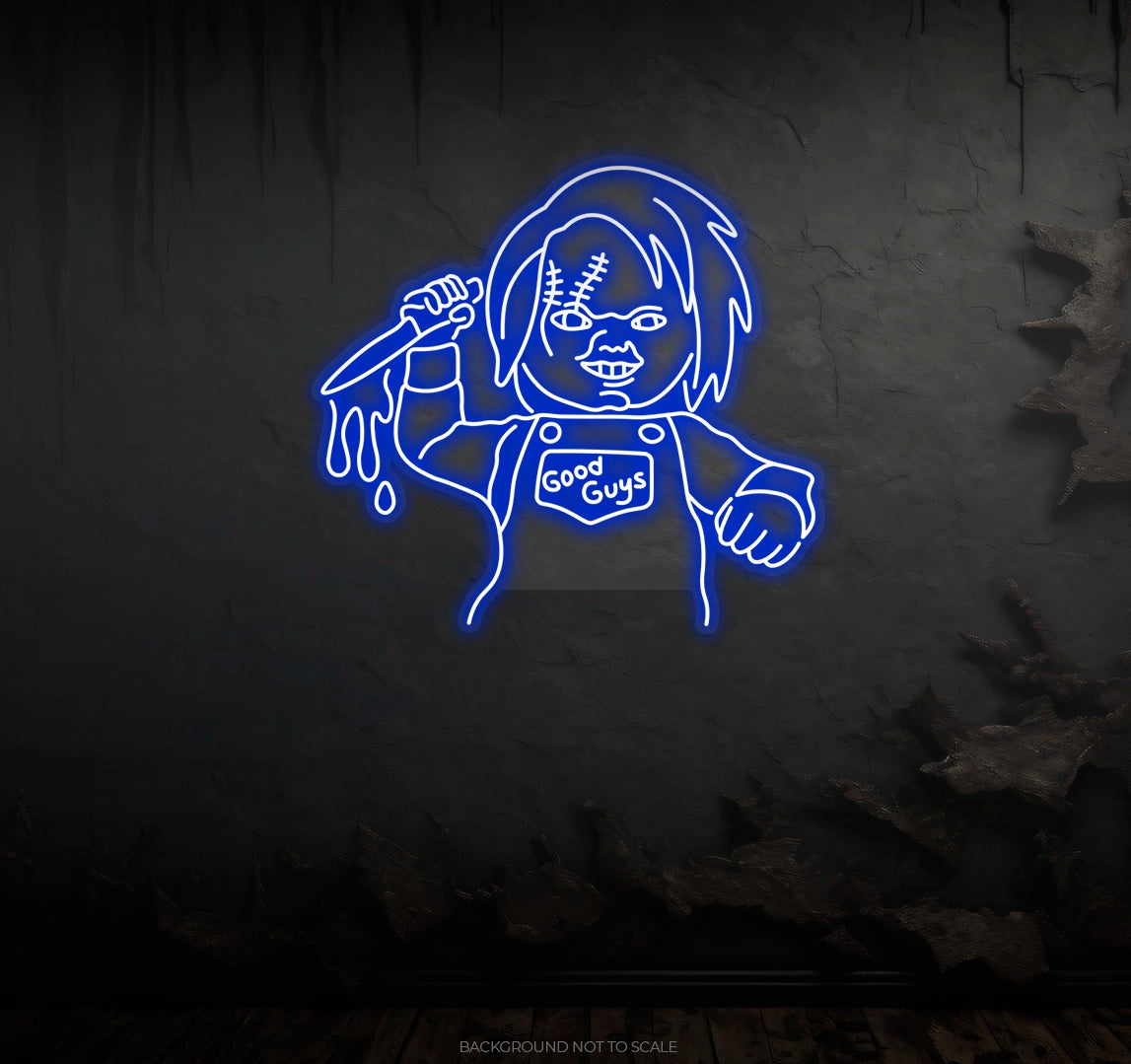 Don't miss this opportunity to add a touch of horror to your space. Order your "Chucky with Knife" LED Neon Sign today and let the sinister fun light up your world!