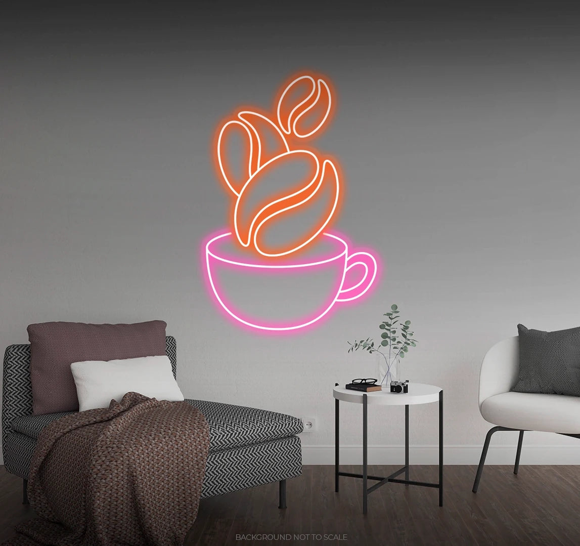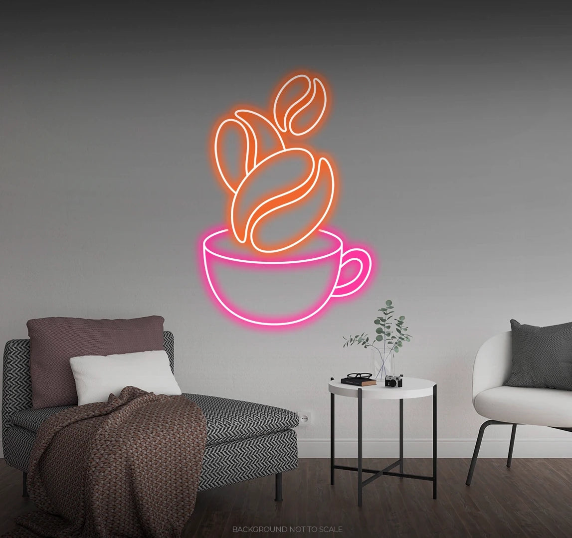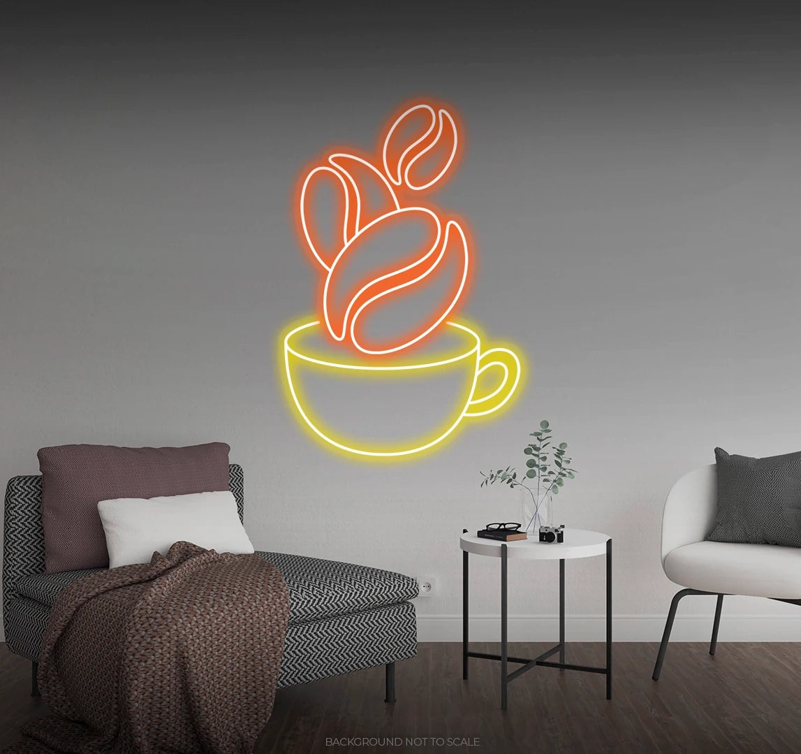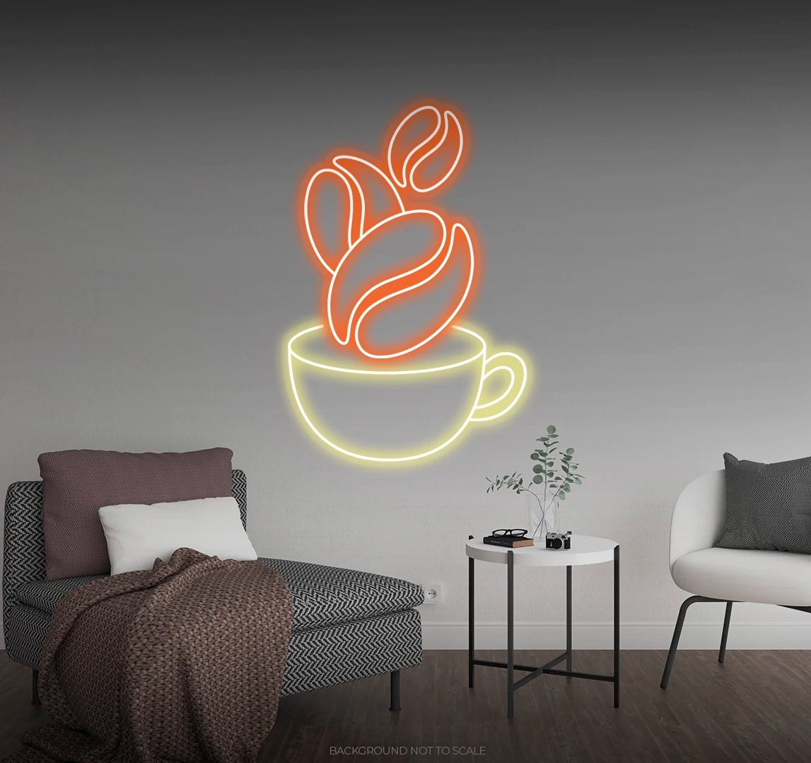 Customizable Coffee-Inspired Hues: Personalize your neon sign with an array of coffee-inspired colors and sizes. Tailor it to complement your space or create a combination that resonates with the comforting and aromatic ambiance of "Cup of Coffee Beans."