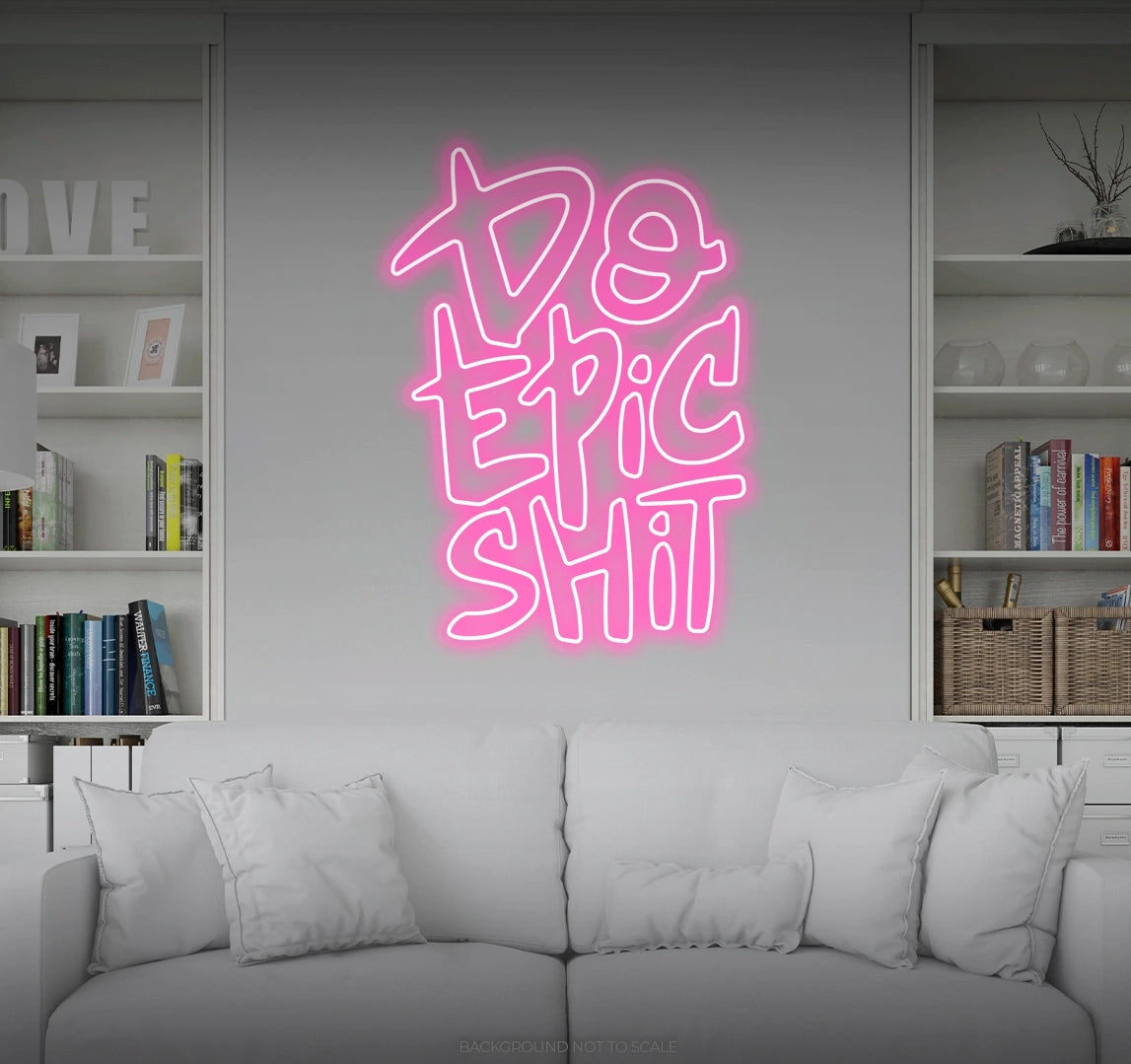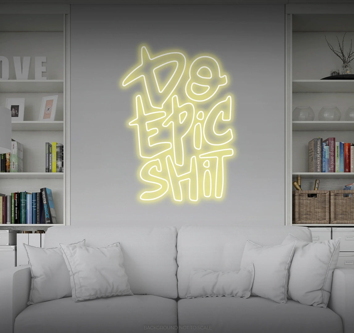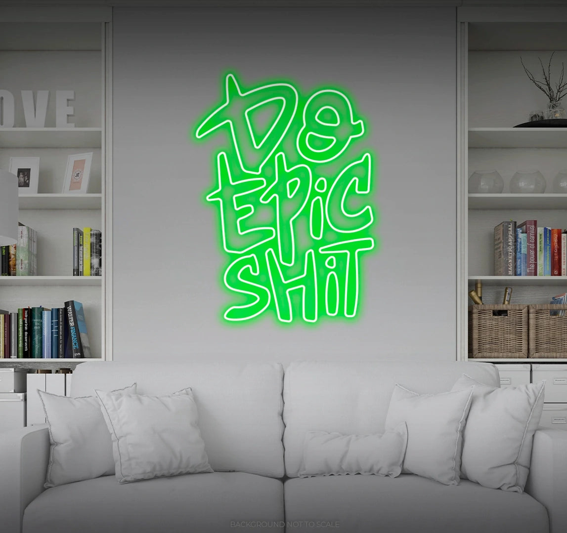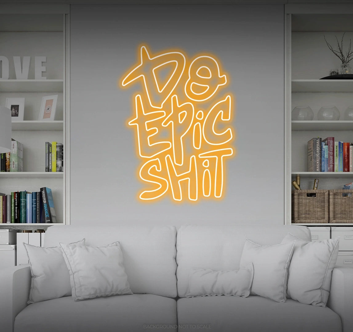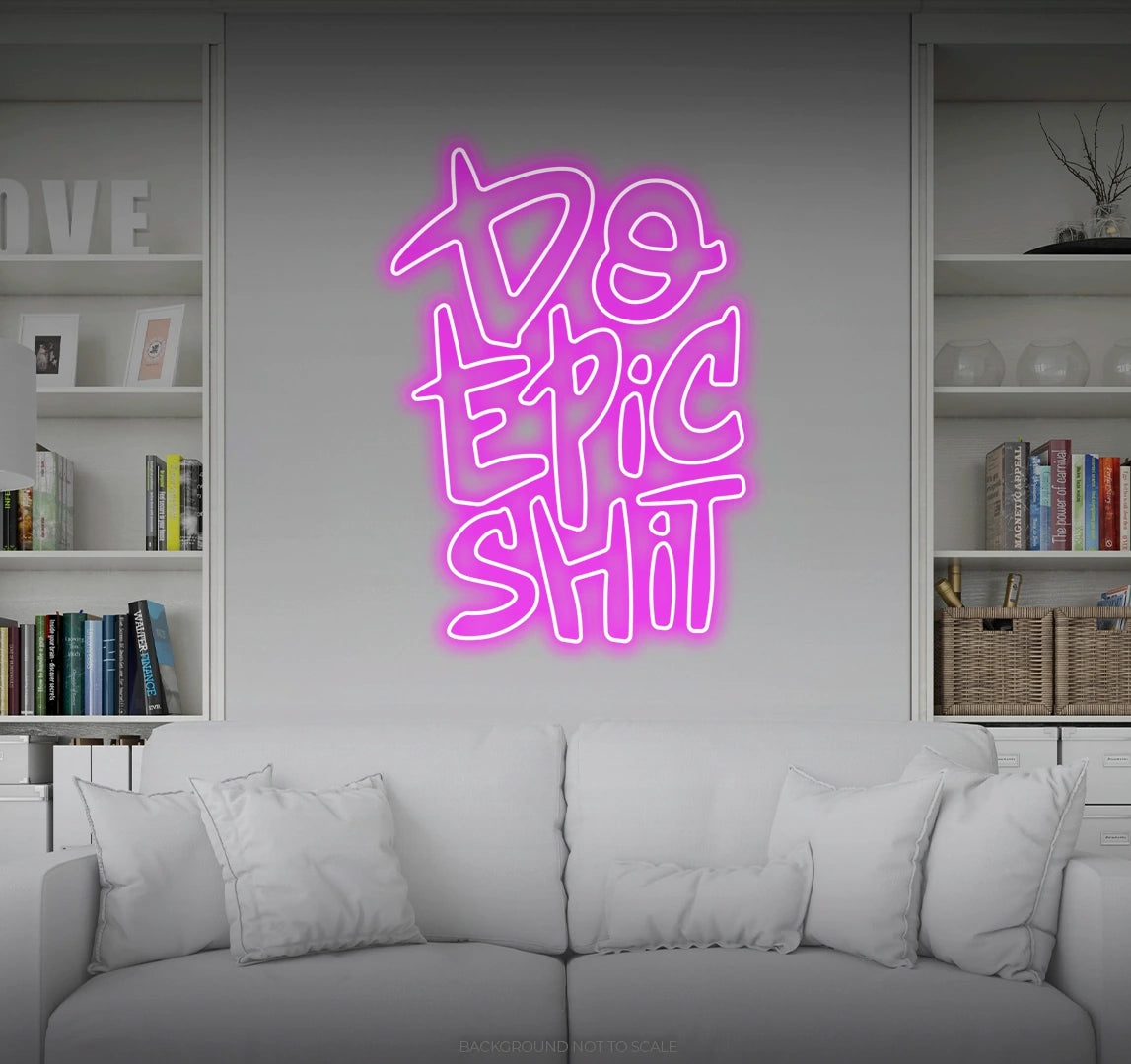 2. Crafted for Adventurers and Achievers: Meticulously designed, our "Do Epic Shit" LED Neon is a radiant statement piece that symbolizes the spirit of adventurers and achievers. It's perfect for those who seek a dynamic and motivational aesthetic, sending a message of embracing challenges and creating a legacy.