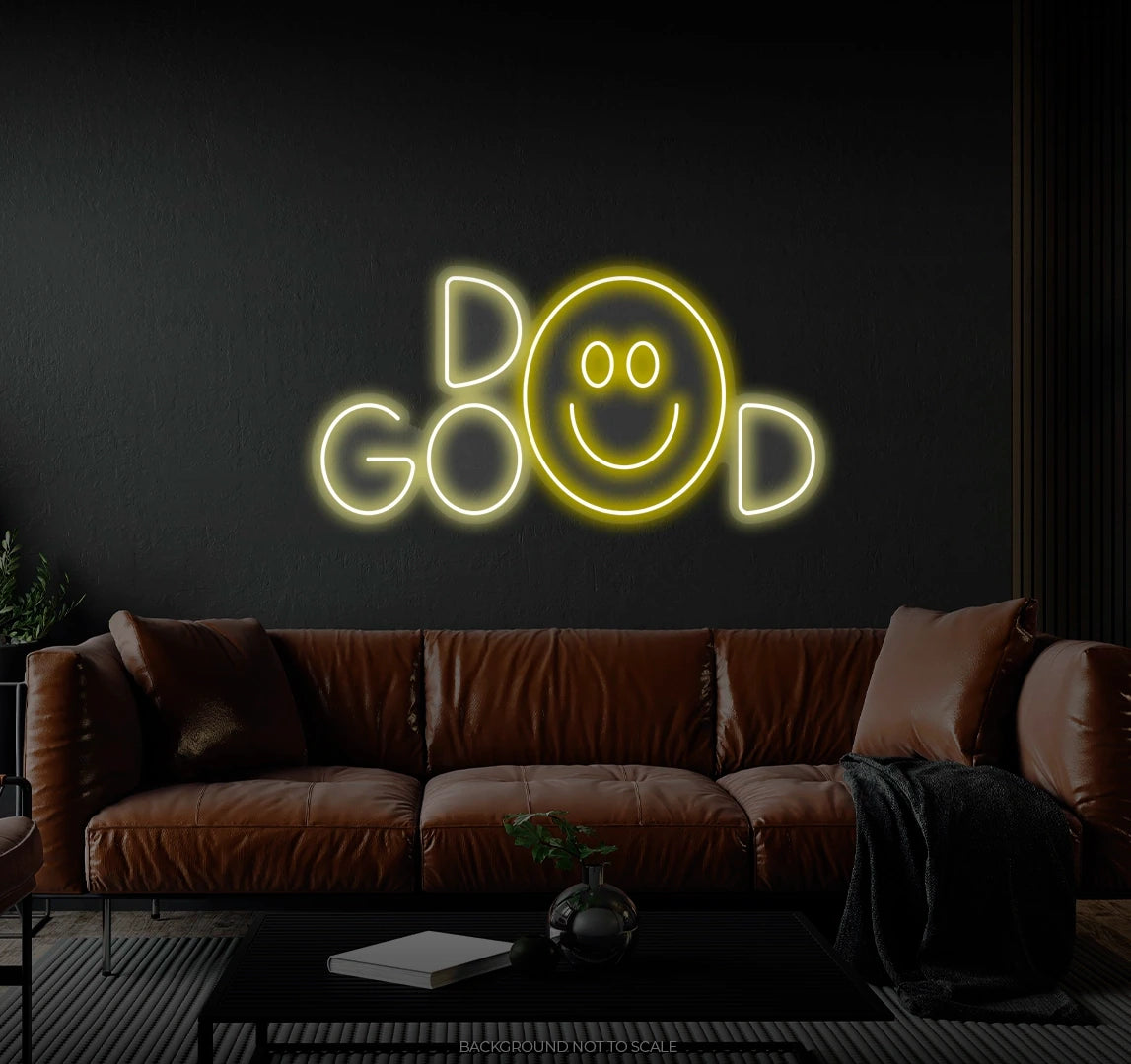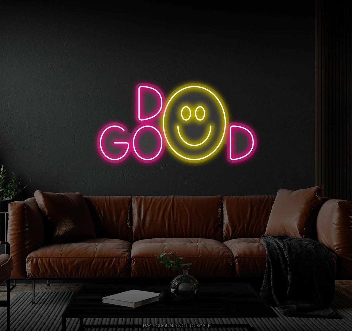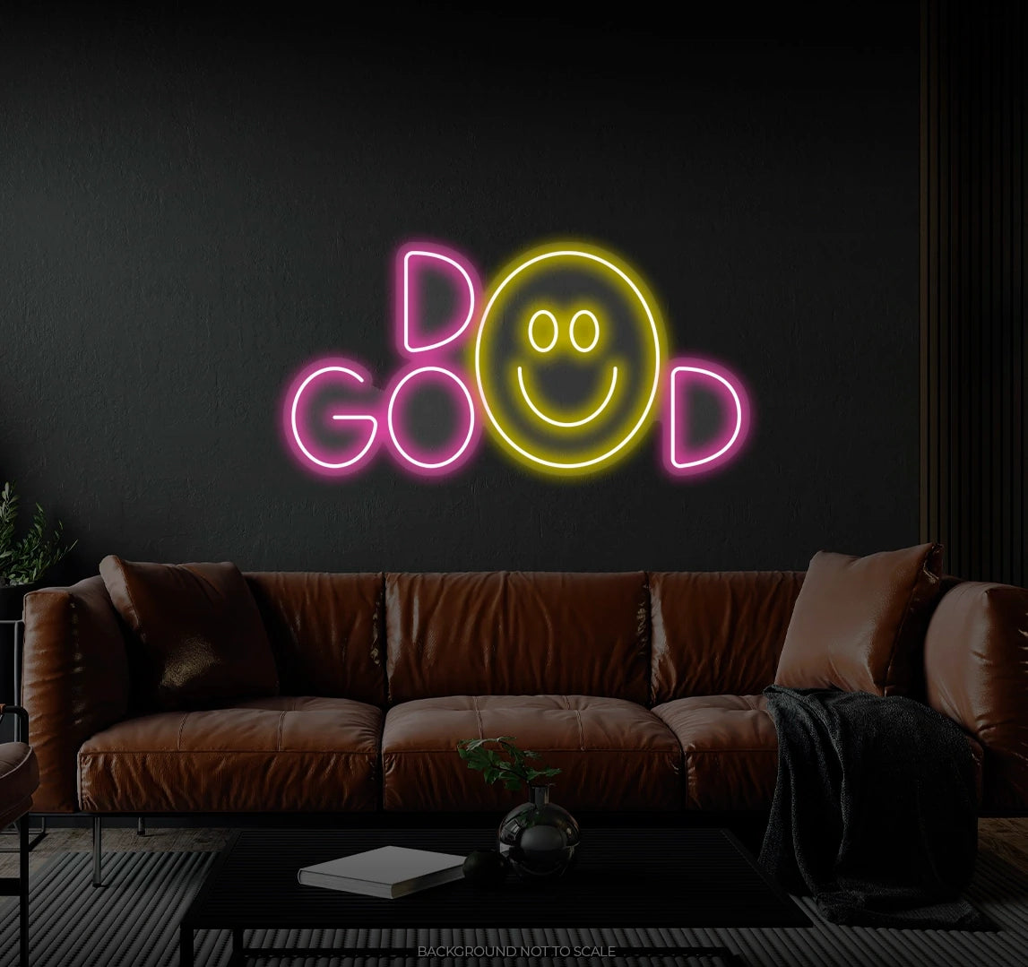 A Timeless Message: Combining the classic smiley face with the powerful message of "Do Good," this neon sign offers timeless appeal. It’s a perfect blend of playful design and motivational spirit that never goes out of style.