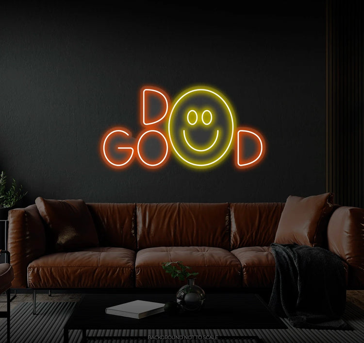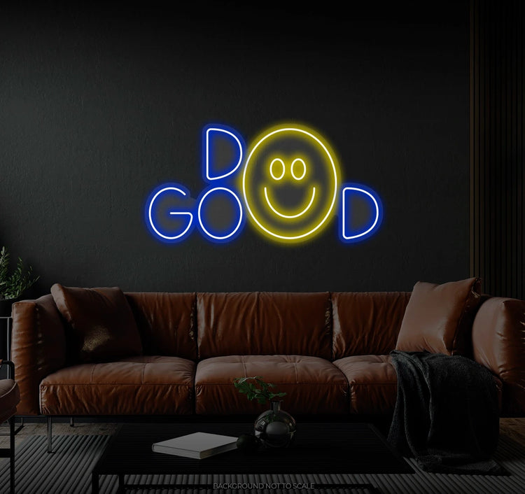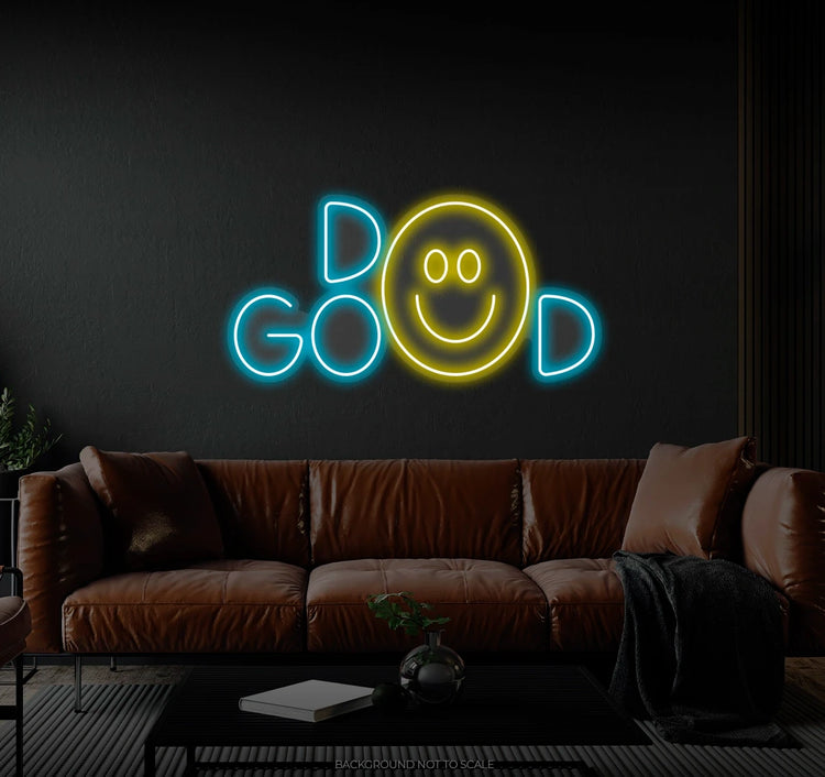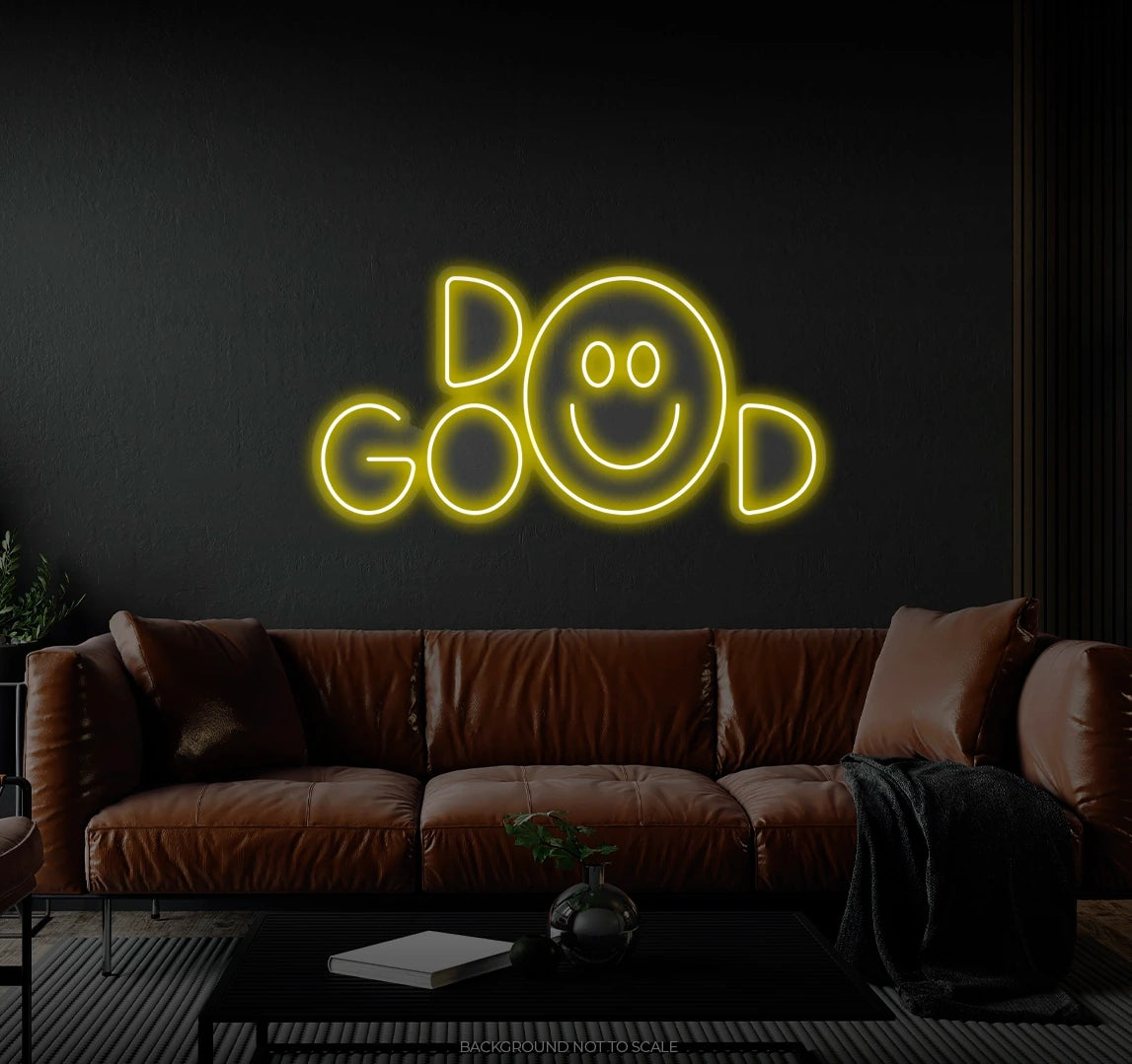 A Timeless Message: Combining the classic smiley face with the powerful message of "Do Good," this neon sign offers timeless appeal. It’s a perfect blend of playful design and motivational spirit that never goes out of style.