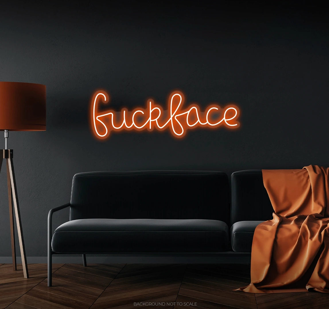 Bold Design with Attitude: The "Fuckface" neon sign isn’t just decor—it’s a declaration. The sharp lettering and vibrant glow make it a standout piece, perfect for anyone who isn’t afraid to make a statement with their style.