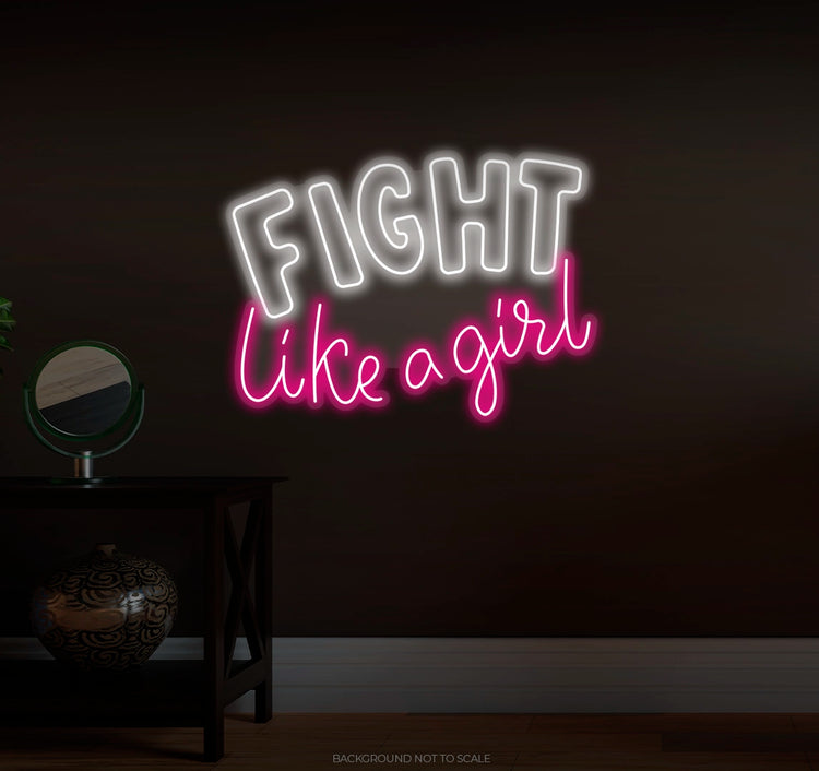 Elevate Your Space with Strength: Embrace the spirit of resilience and determination with our LED neon sign, casting a glowing reminder that fighting like a girl is a badge of honor. This sign is perfect for anyone who loves to celebrate strength, femininity, and empowerment.