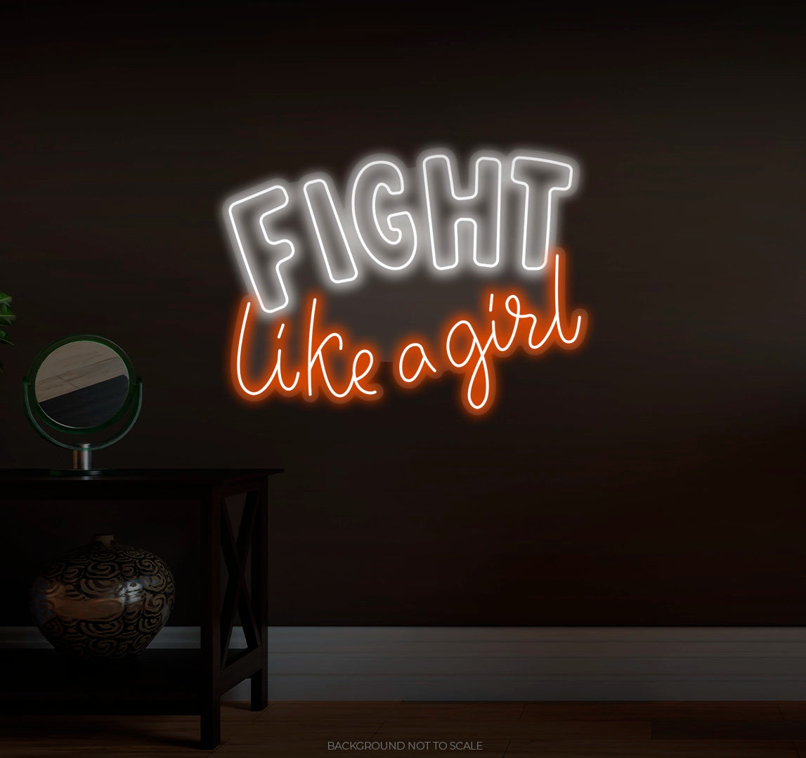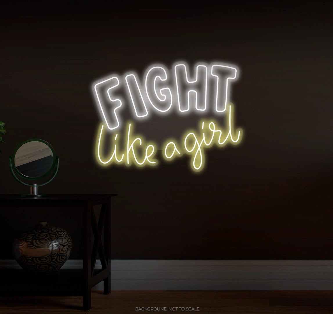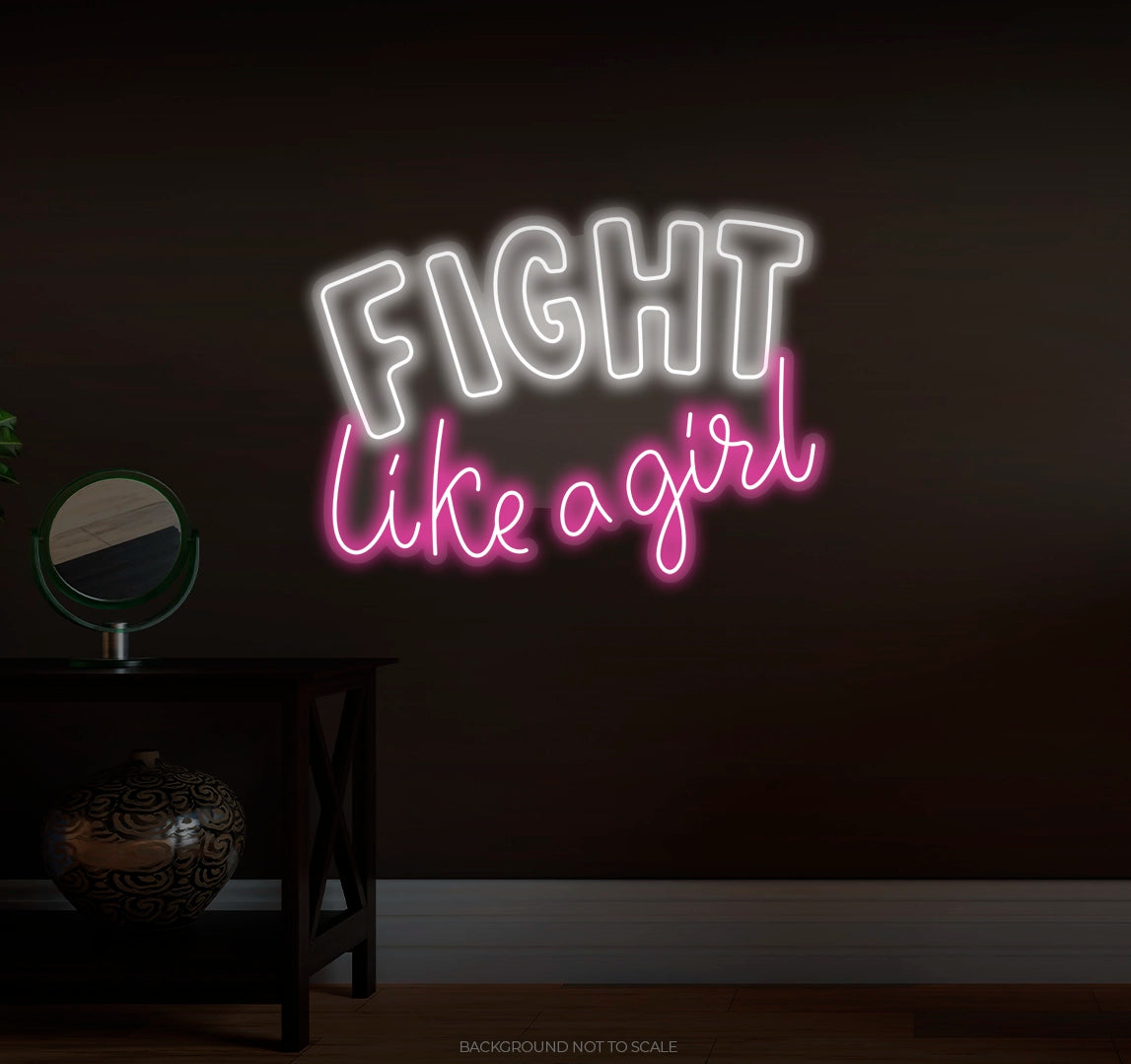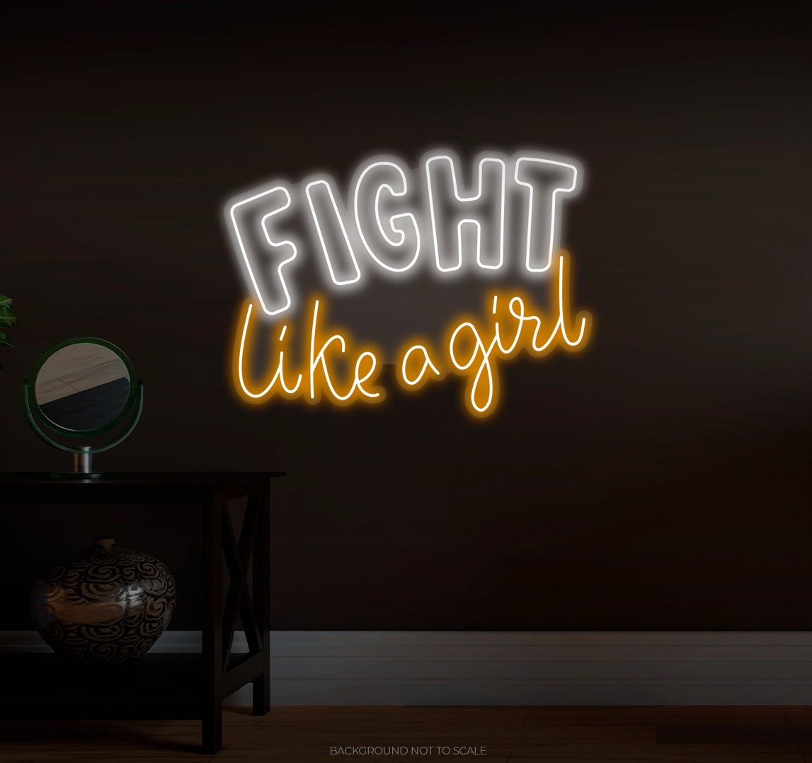 Empowering Glow: Brighten your space with the empowering message of our "Fight Like A Girl" LED Neon sign. The half handwriting design adds a unique and modern touch, blending bold lettering with a soft script to represent both strength and grace.