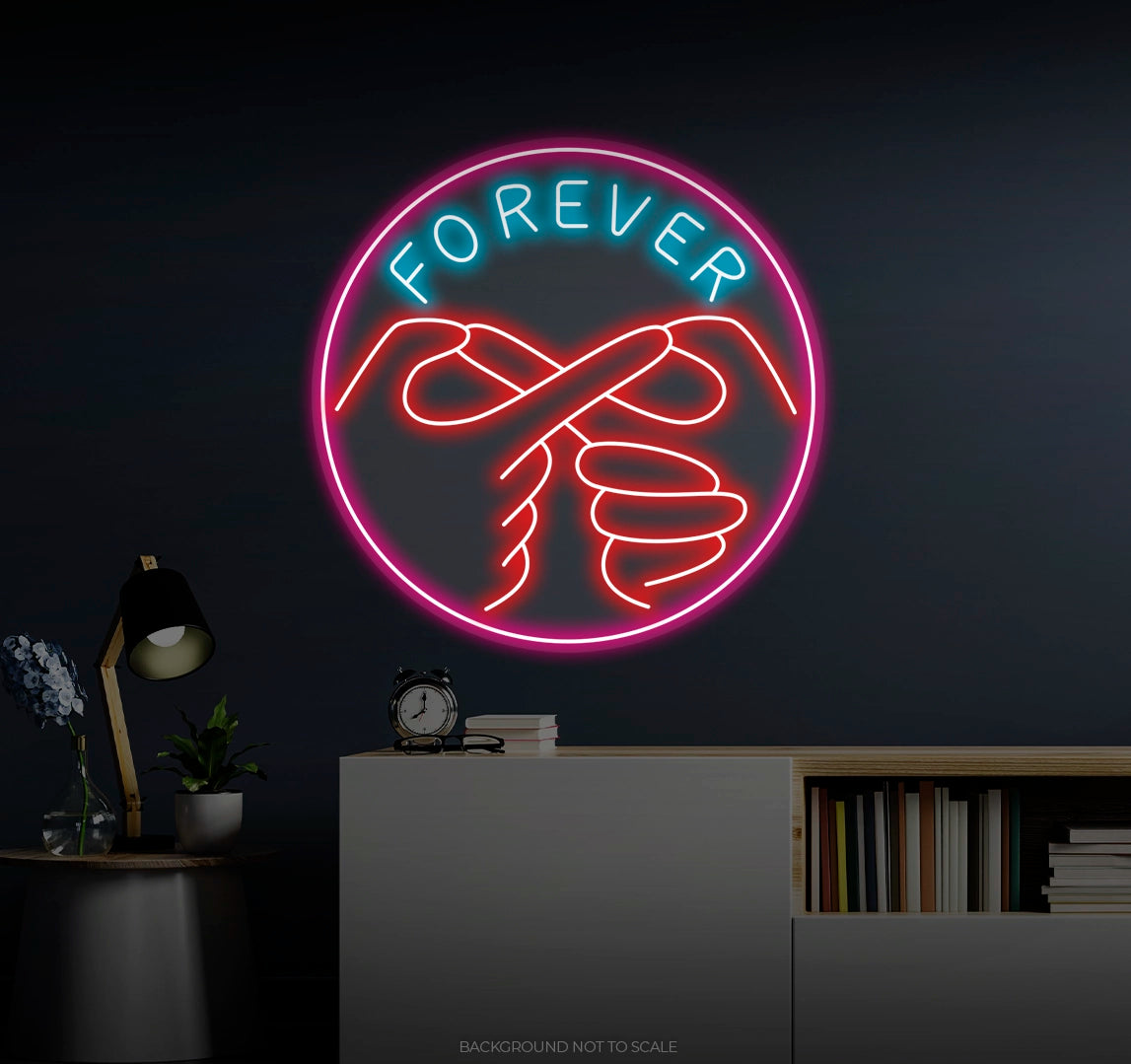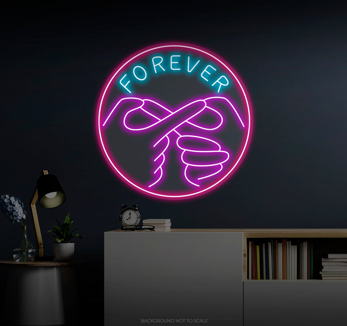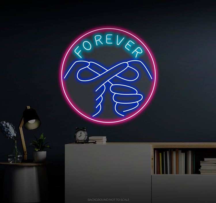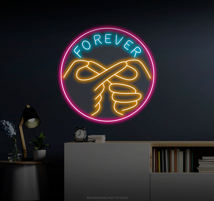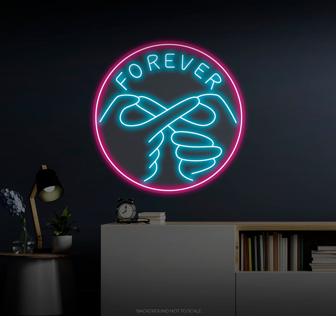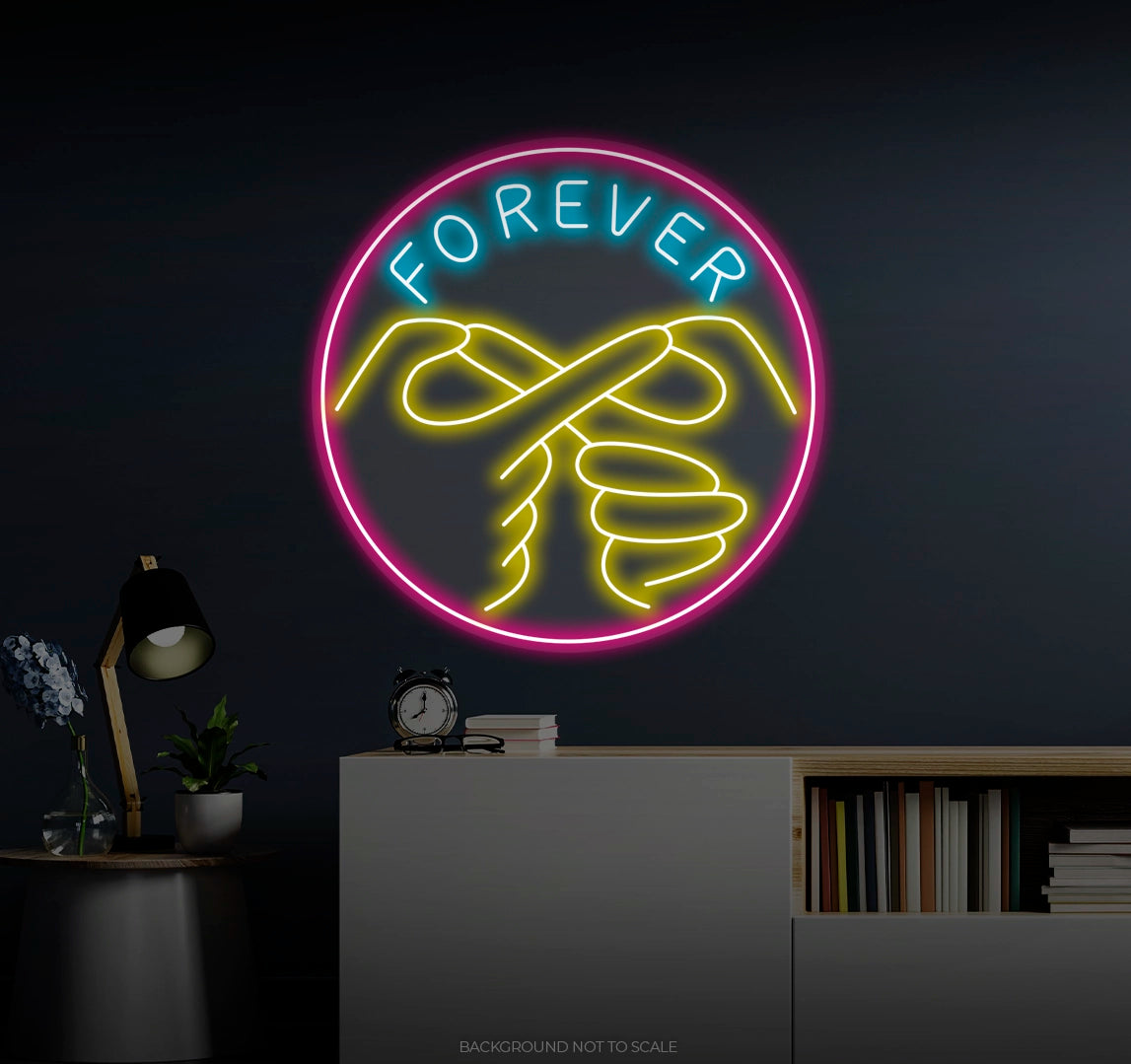 Capture the essence of eternity with the "Forever Infinity Hand Gesture" LED Neon, a modern design showcasing hands forming an infinity loop. This artistic neon sign symbolizes unity, love, and timelessness, making it a meaningful addition to any space.