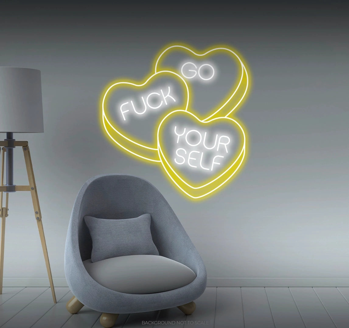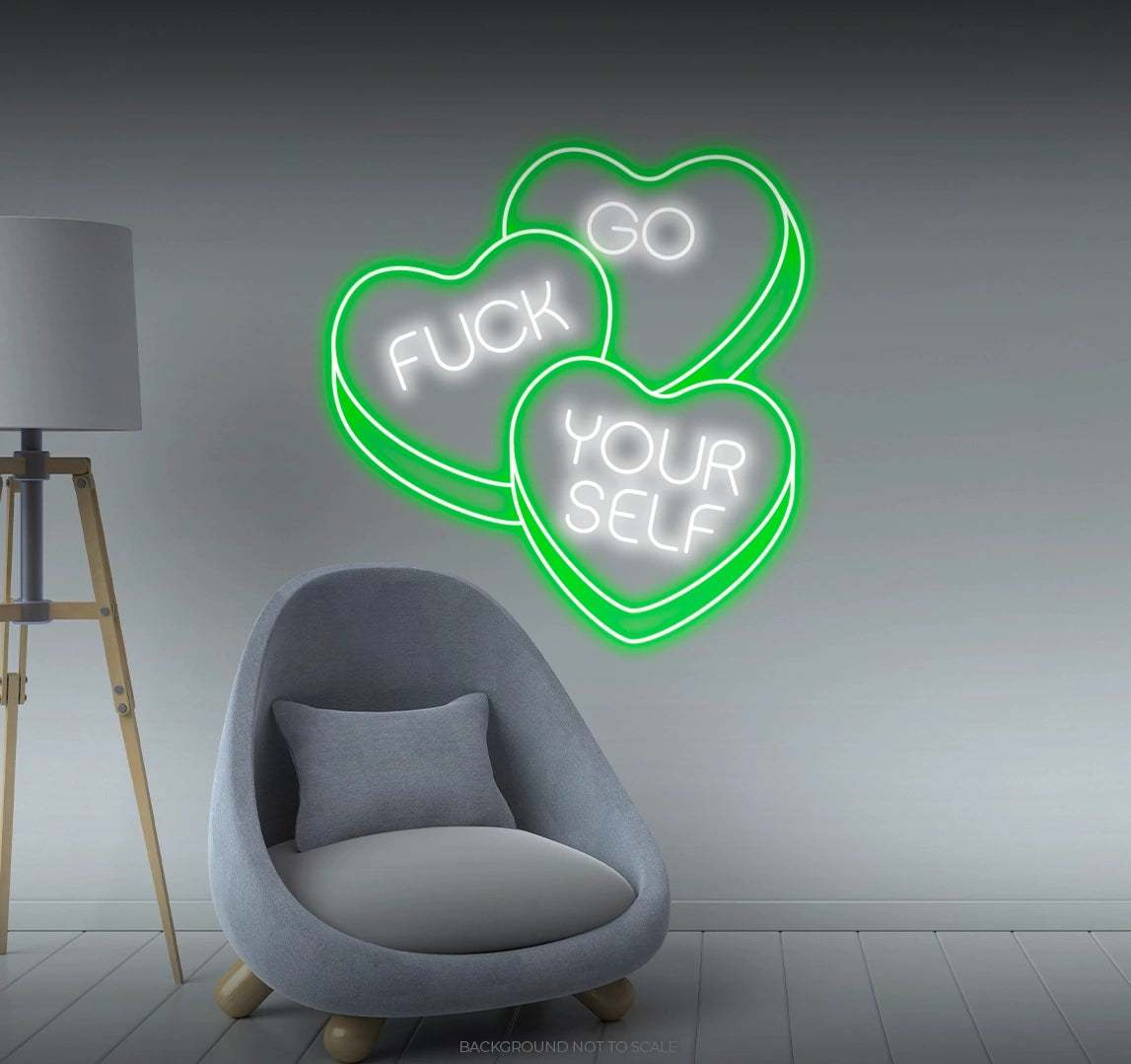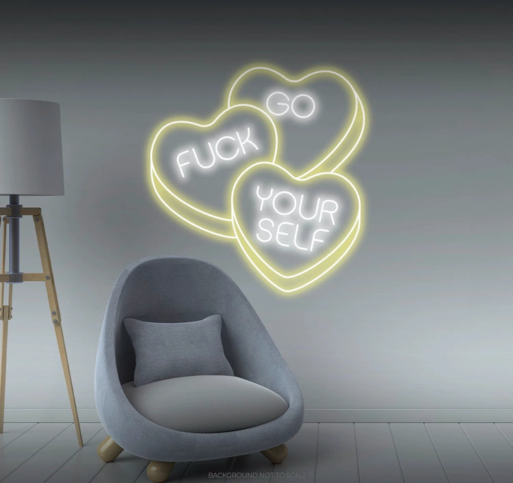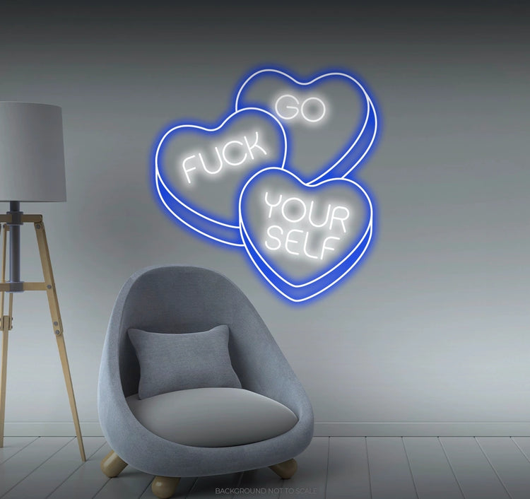 - Watch as our LED neon sign gently lights up your space with a calming and tranquil glow, featuring the phrase "Go fuck yourself heart blocks" in a soothing and unobtrusive font 🌙🤫.