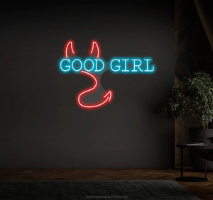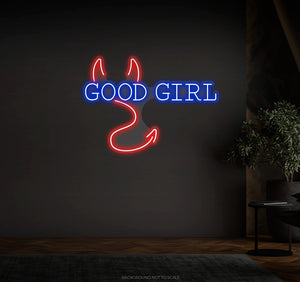 Good Girl And Devil Horns And Tail LED neon