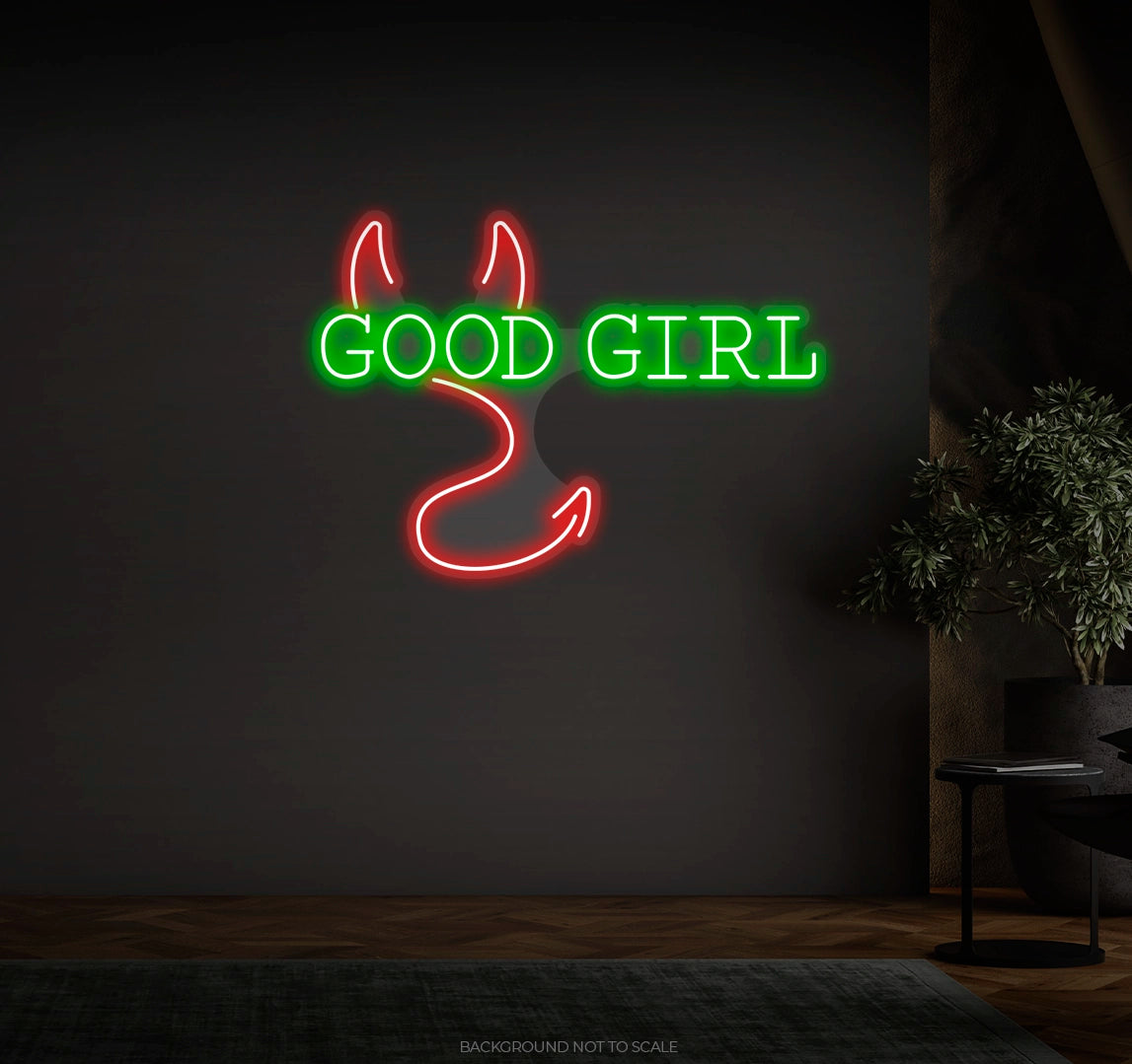 Durable and Safe: Made with energy-efficient LED technology, the "Good Girl and Devil Horns and Tail" LED Neon is safe to touch and built to last. Enjoy its lively glow worry-free, knowing it will brighten your space for years to come.