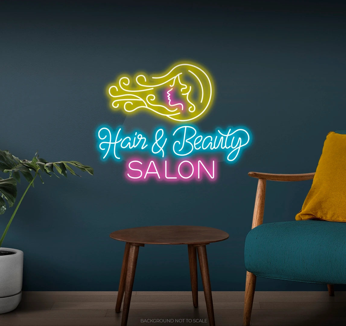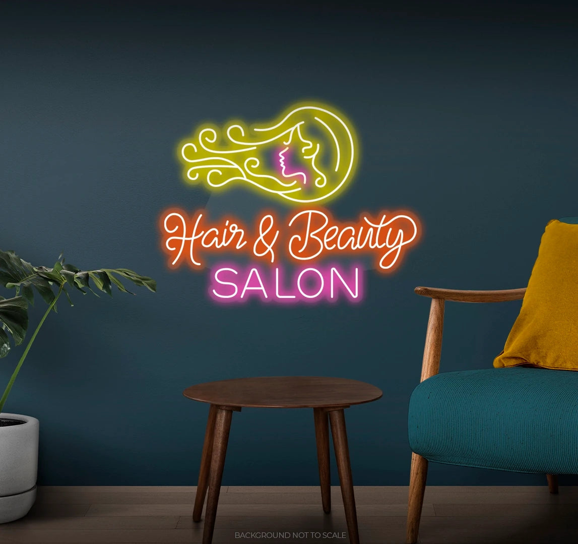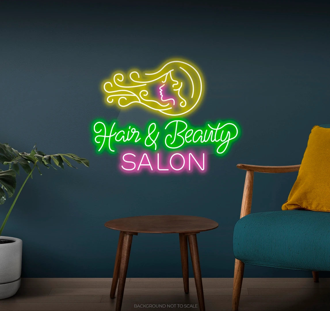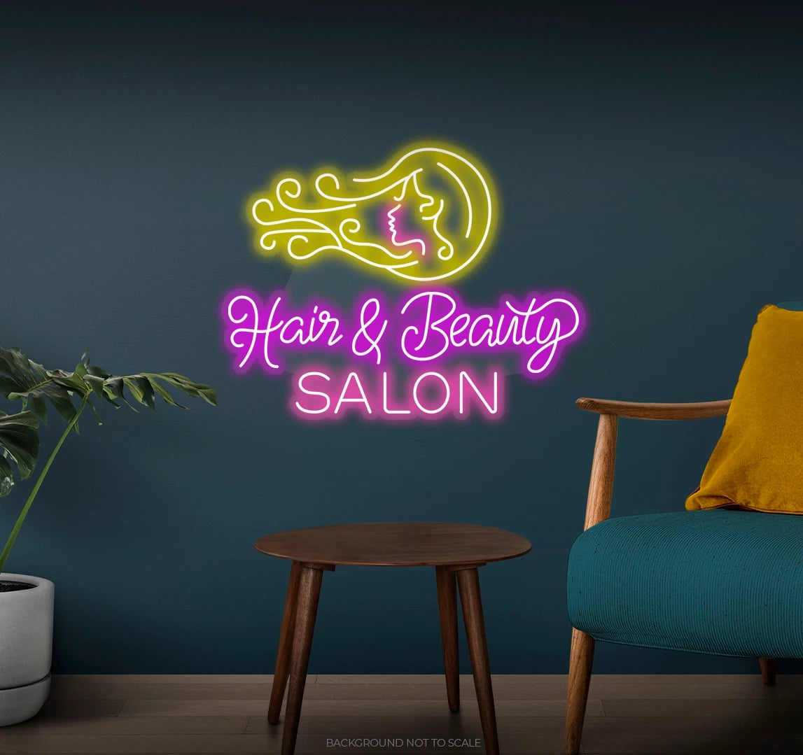 Customizable Glamorous Hues: Personalize your neon sign with an array of chic colors and sizes. Tailor it to complement your salon's aesthetic or create a combination that resonates with the stylish and glamorous ambiance of "Hair & Beauty Salon."