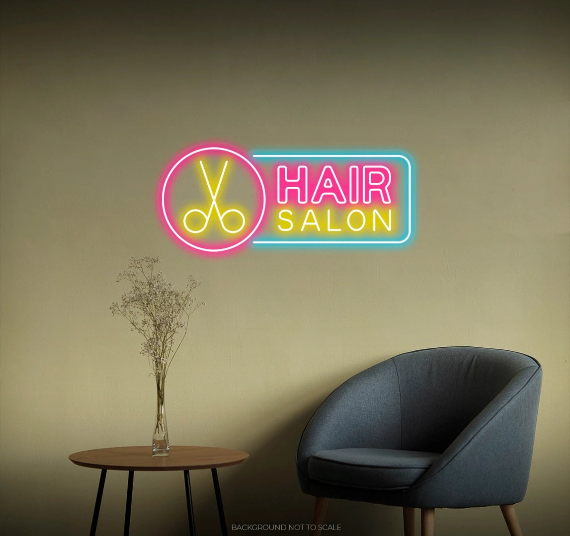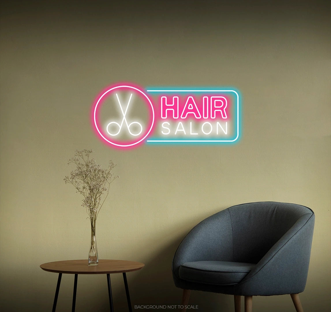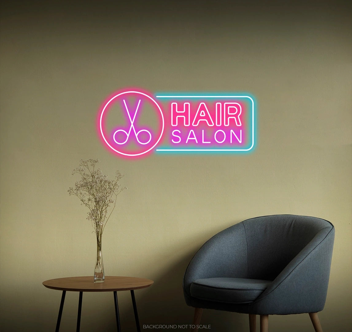 Customizable Stylish Hues: Personalize your neon sign with an array of chic colors and sizes. Tailor it to complement your salon's aesthetic or create a combination that resonates with the stylish and elegant ambiance of "Hair Salon Round Scissors."