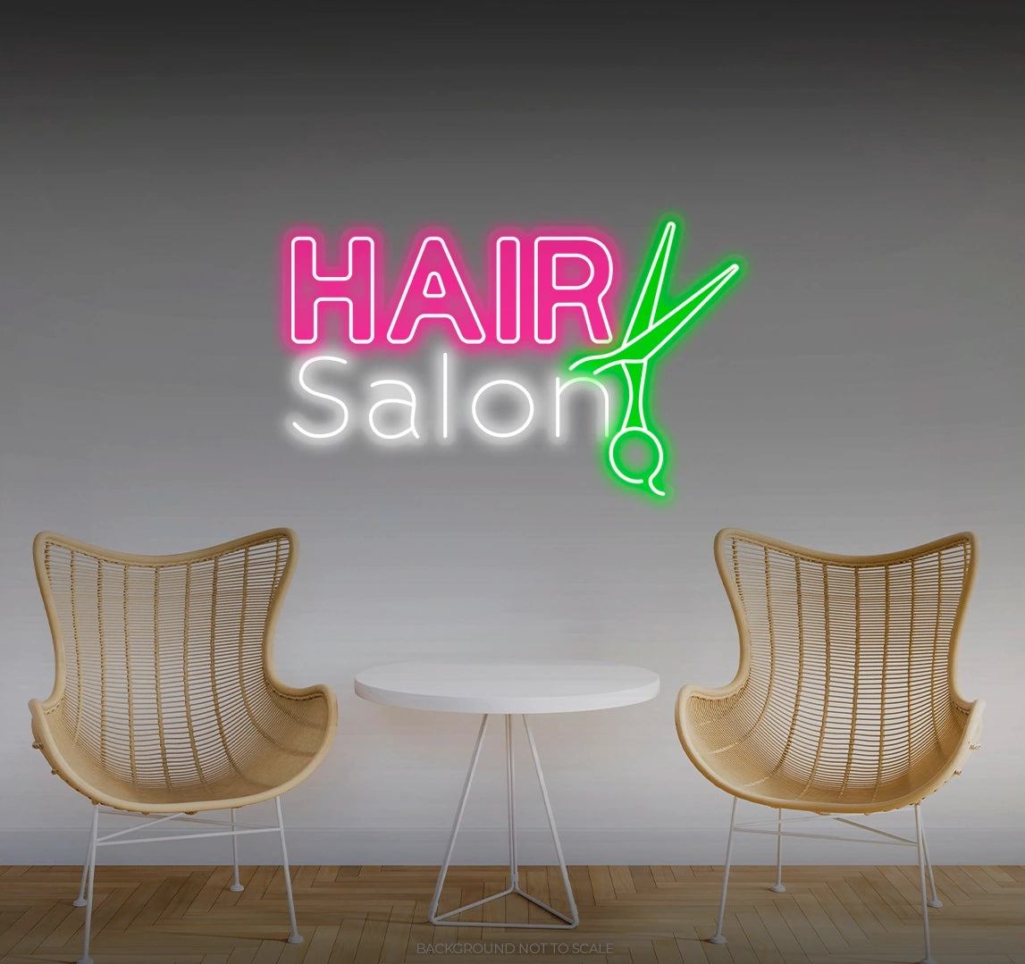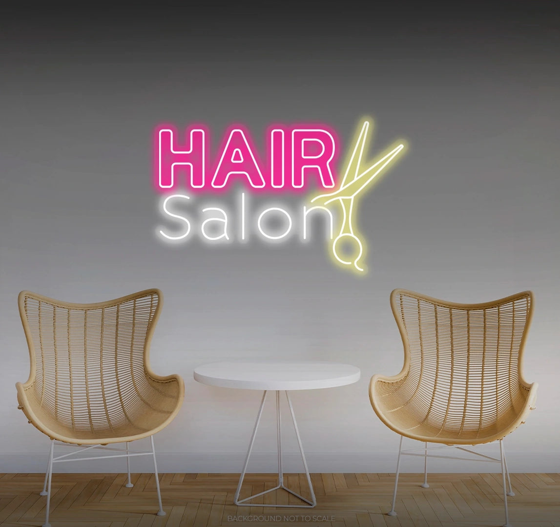 Customizable Stylish Hues: Personalize your neon sign with an array of chic colors and sizes. Tailor it to complement your salon's aesthetic or create a combination that resonates with the stylish and elegant ambiance of "Hair Salon Scissors."
