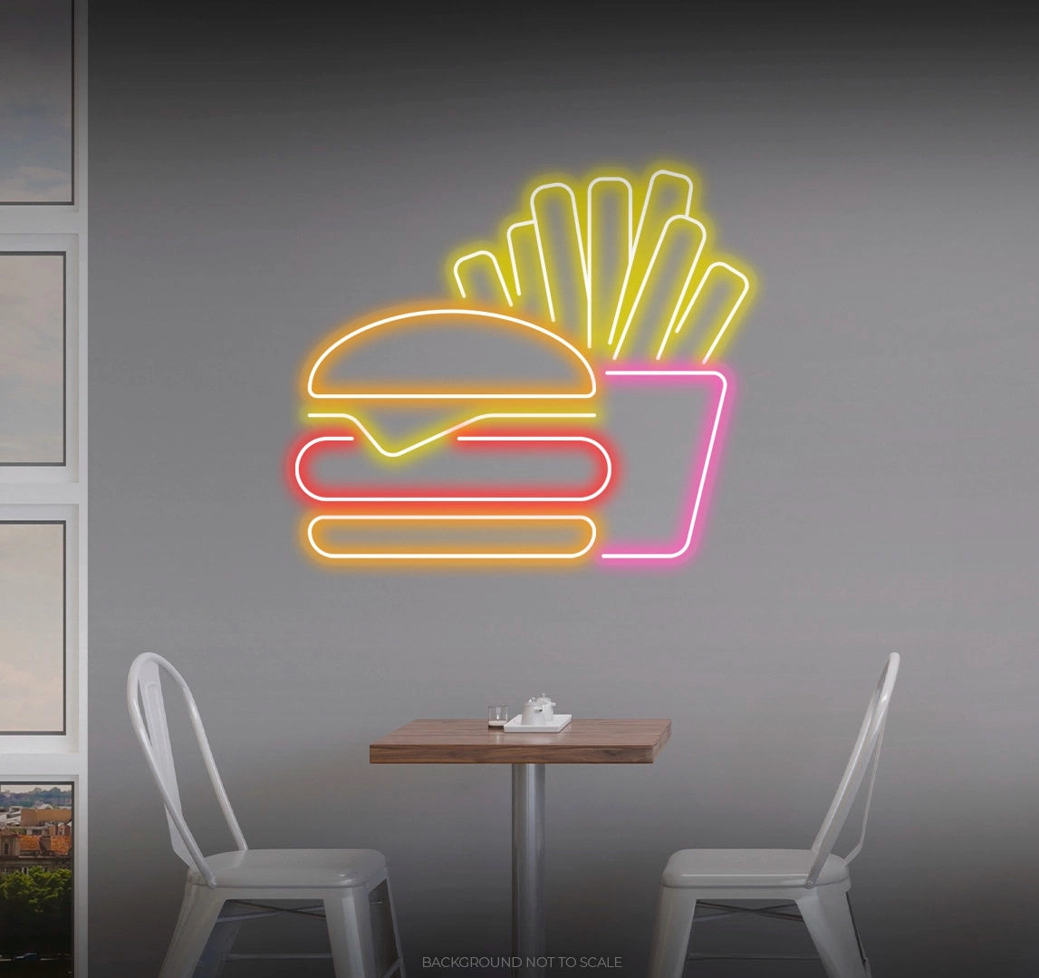 Crafted for Culinary Enthusiasts: Forged with meticulous precision, our "Hamburger & French Fries" LED Neon symbolizes the delicious ambiance of a classic comfort meal. It stands as a beacon of culinary joy, providing not just illumination but a dynamic reminder of the mouthwatering beauty of this iconic food combo.