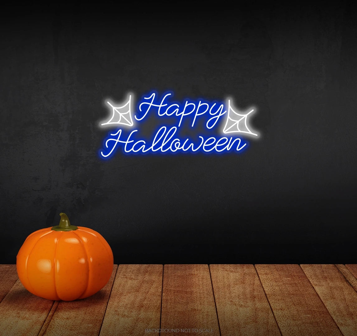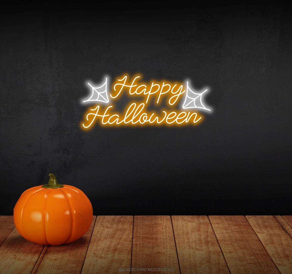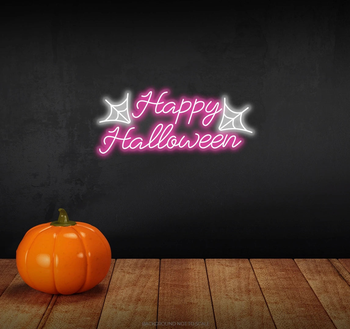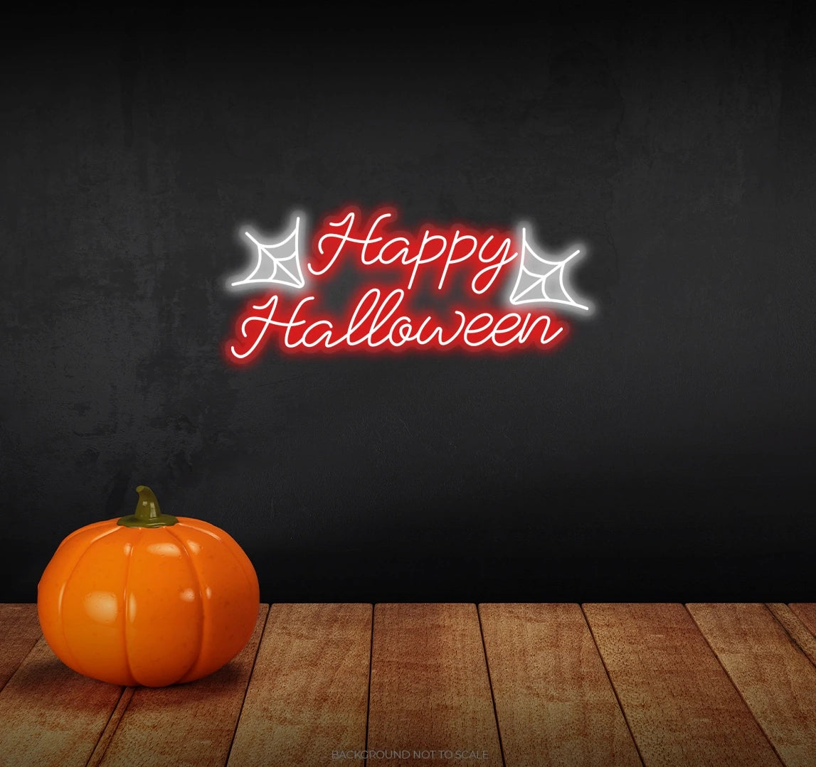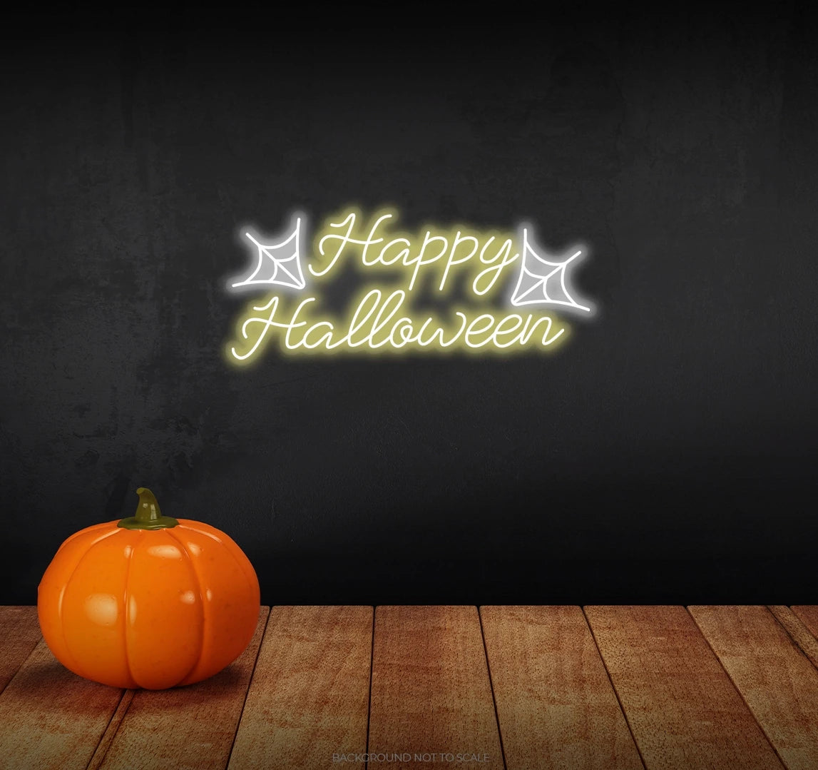 Happy halloween with spider net ledneon