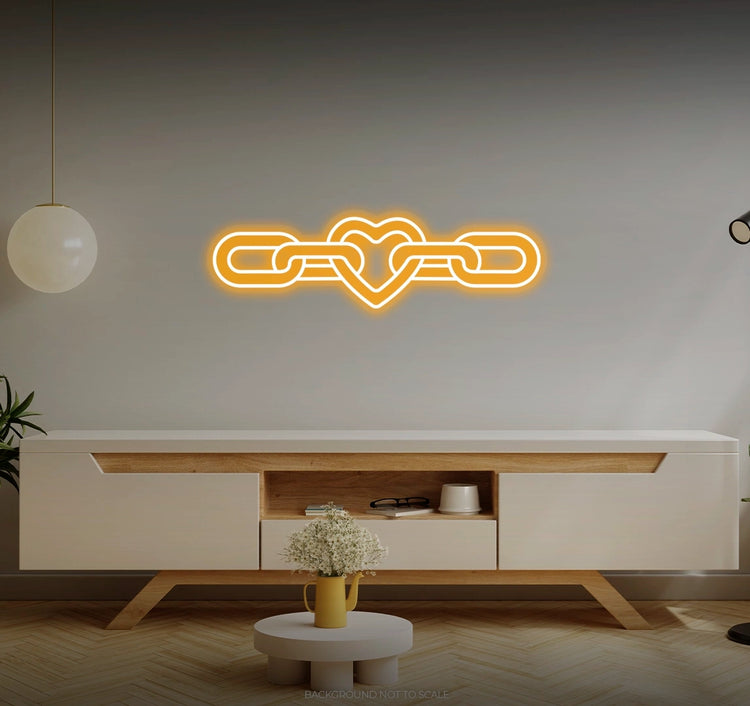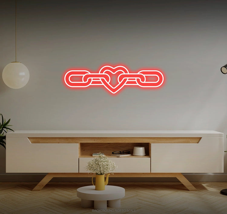 Timeless Love Expression: Infuse your space with the perpetual allure of "Heart in Chain" LED Neon. It's not just a decorative piece; it's a tribute to the timeless joy and beauty that come with expressing the depth of love, beautifully illuminated by the captivating glow of the LED Neon.